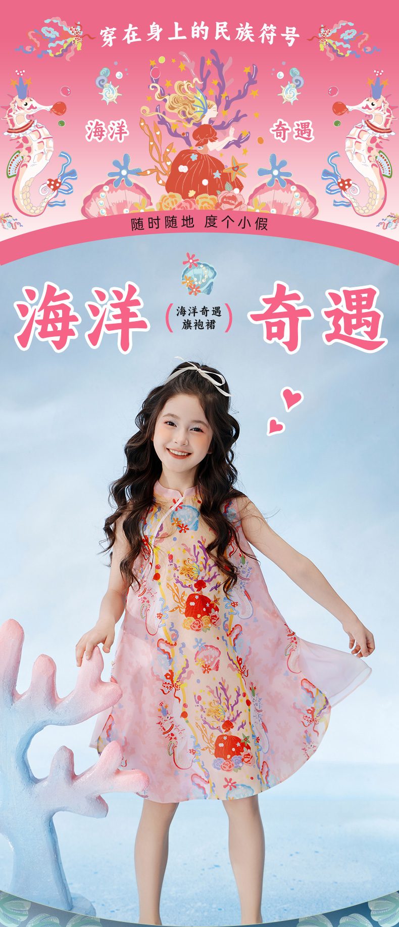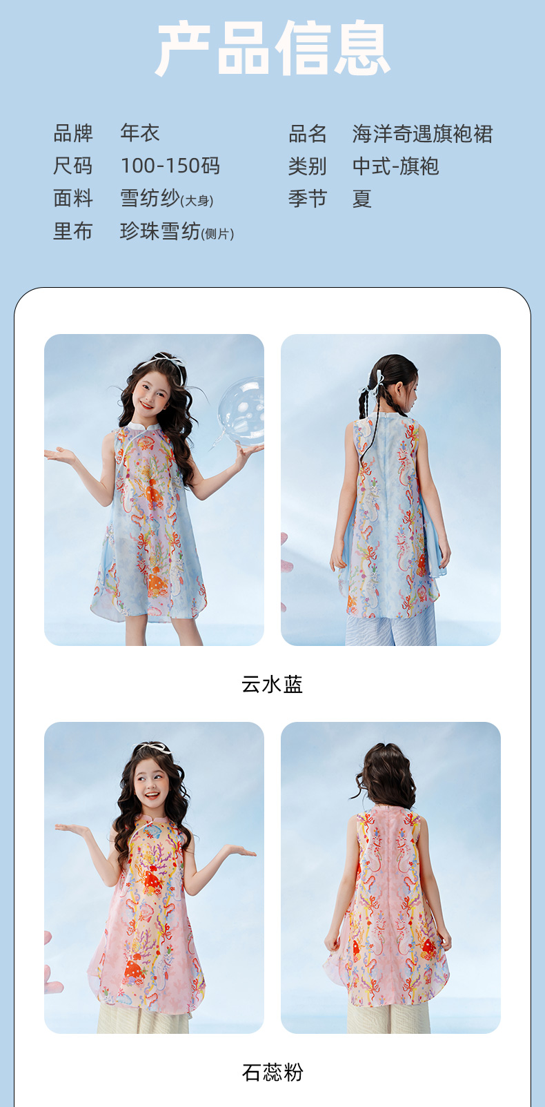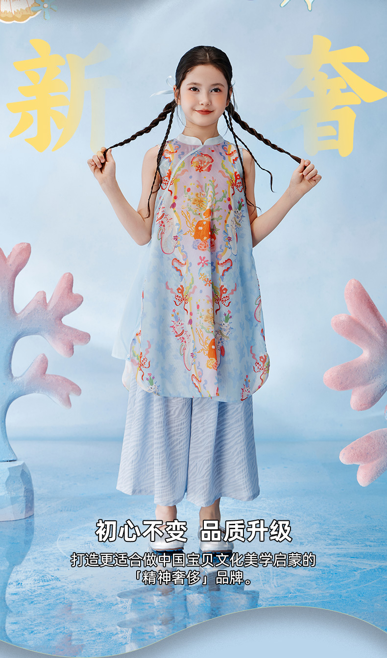 【云优选】年衣童装女童2025新款夏季薄款儿童中国风海洋奇遇旗袍裙