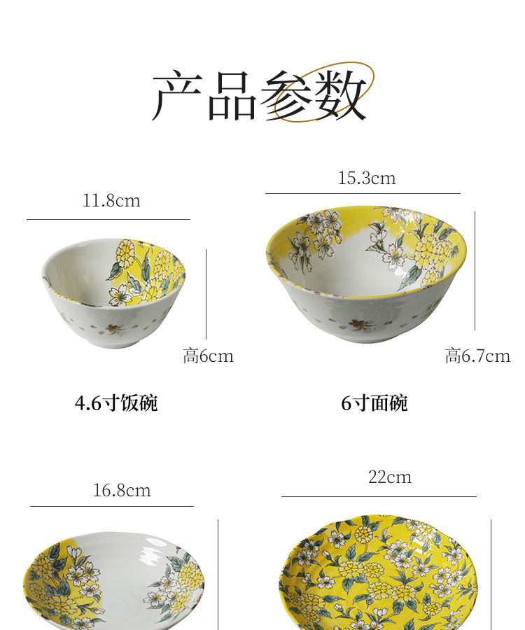 日本制造陶瓷餐具(黄彩山吹)