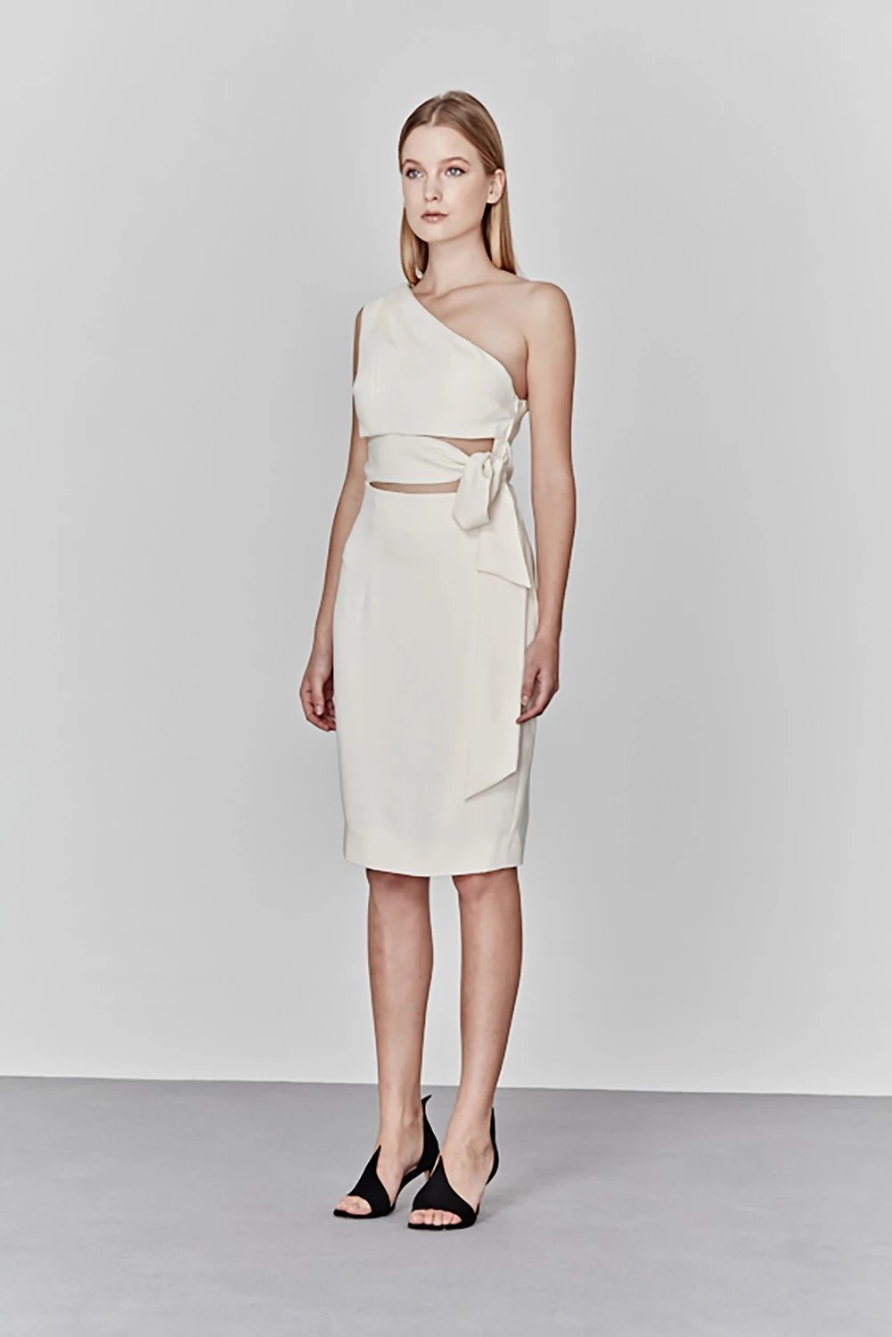 Atelier Miss Lu/Arlene-白色斜肩露腰小礼服