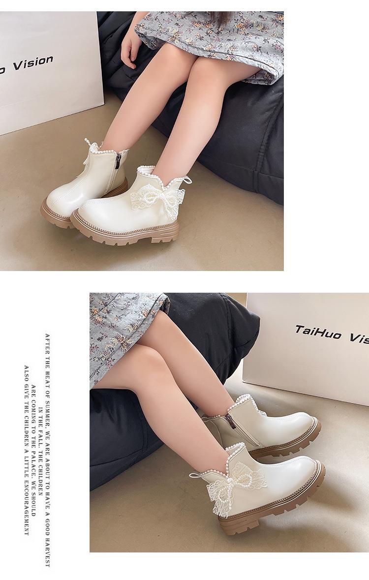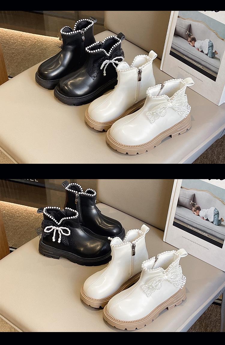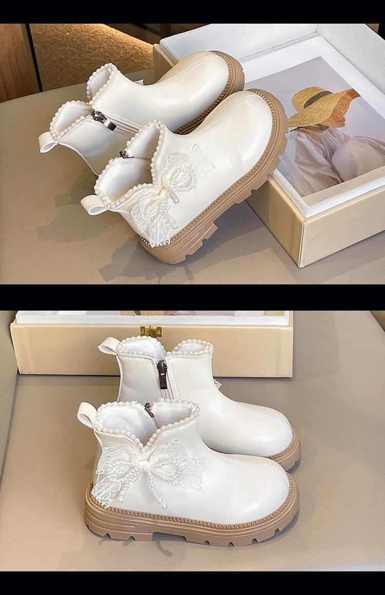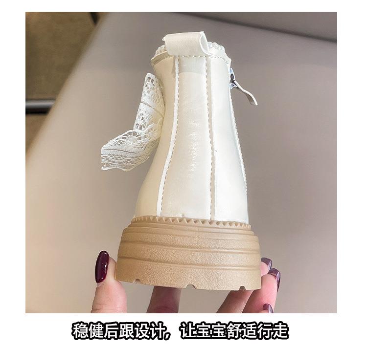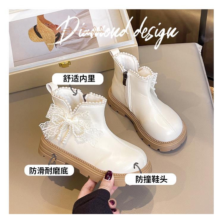 九峰鸟女童马丁靴儿童白色短靴洋气新款秋冬季女宝靴子公主风蝴蝶结26-37