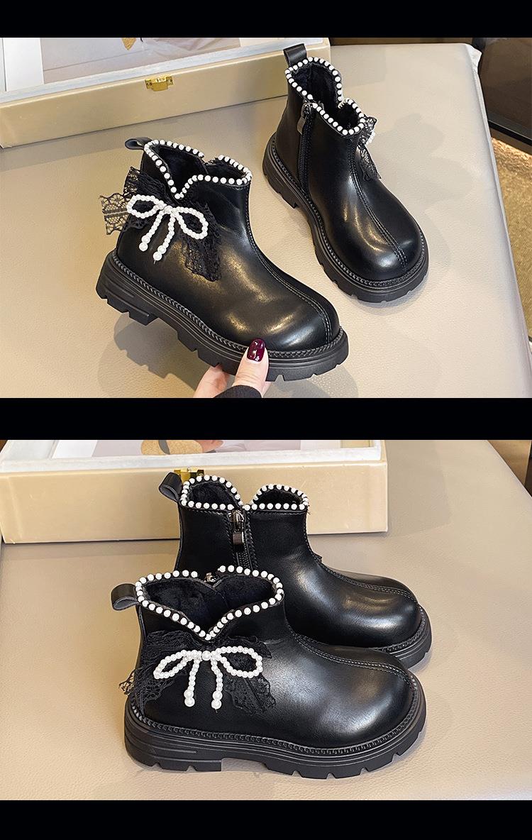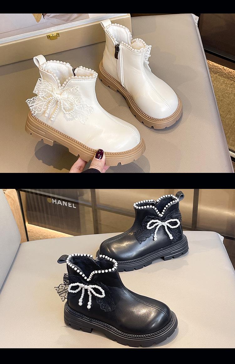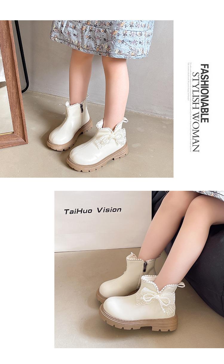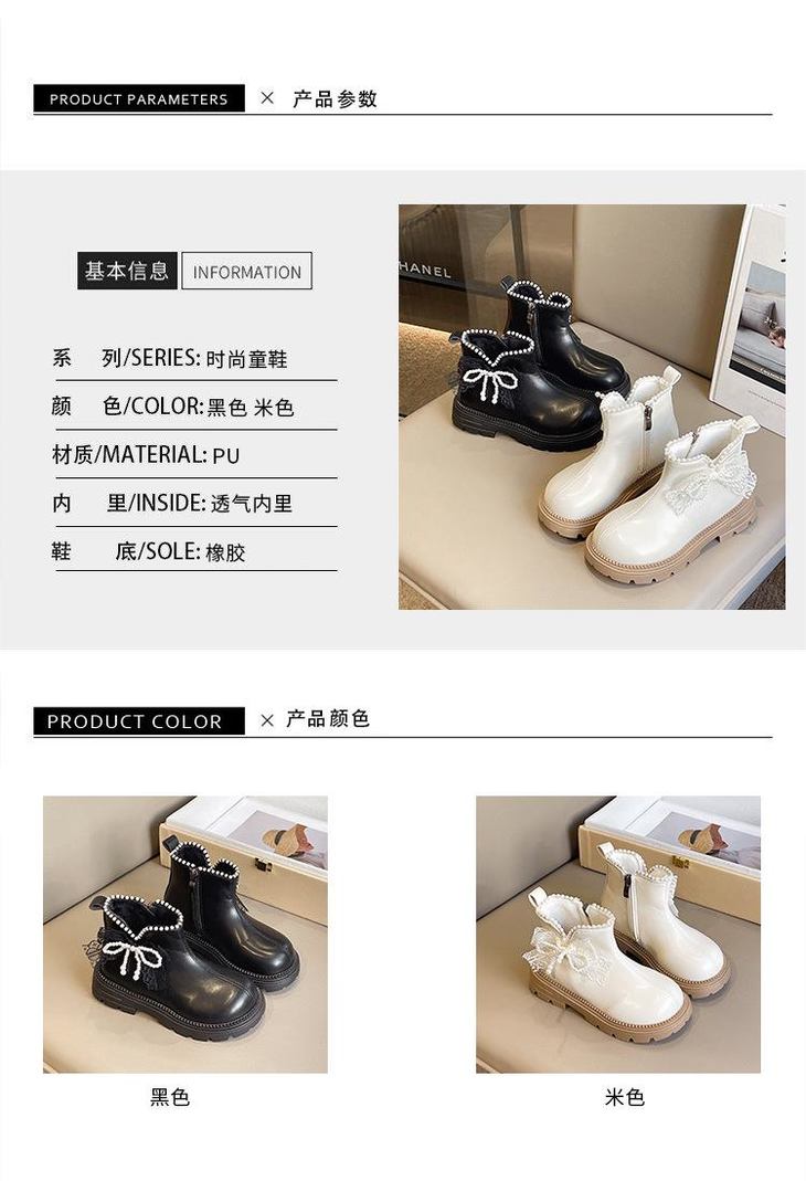 九峰鸟女童马丁靴儿童白色短靴洋气新款秋冬季女宝靴子公主风蝴蝶结26-37