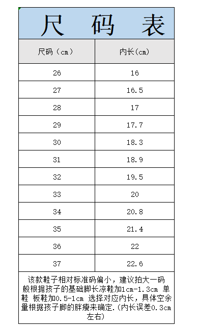 | 尺码: | 26-37详见尺码表 | |