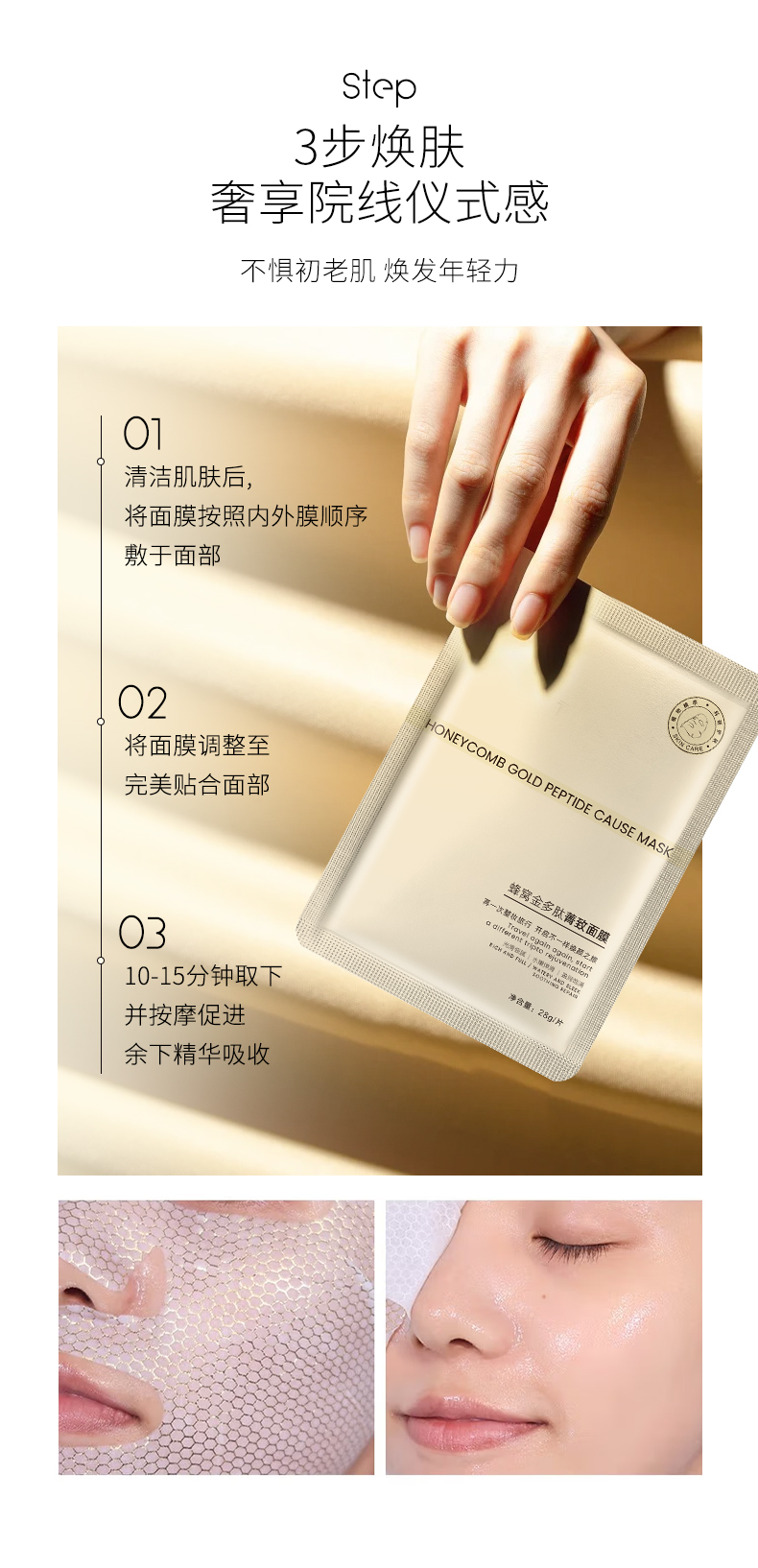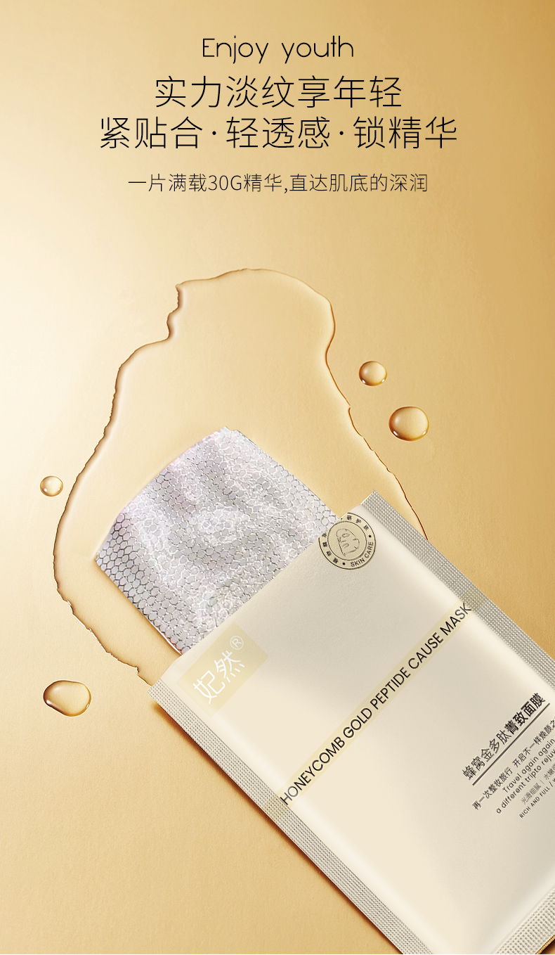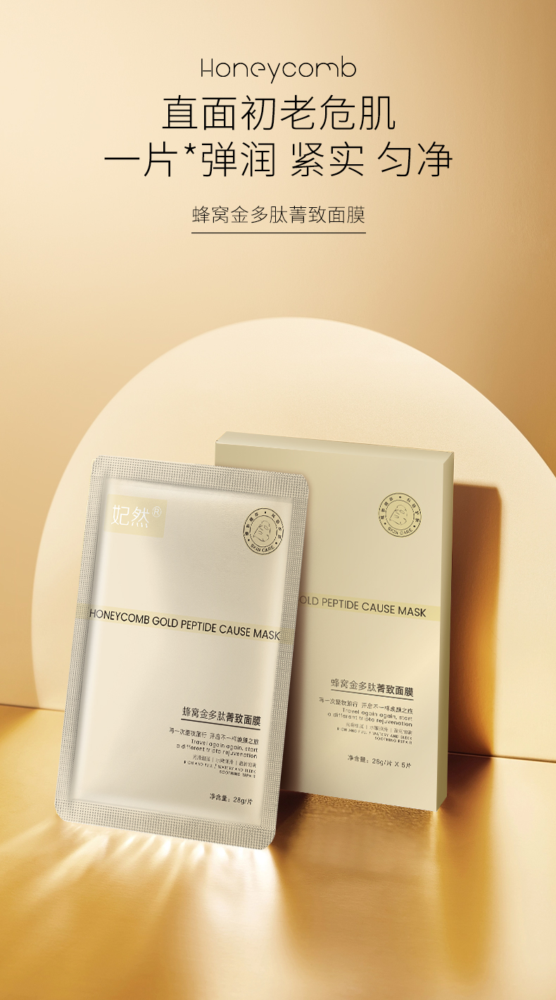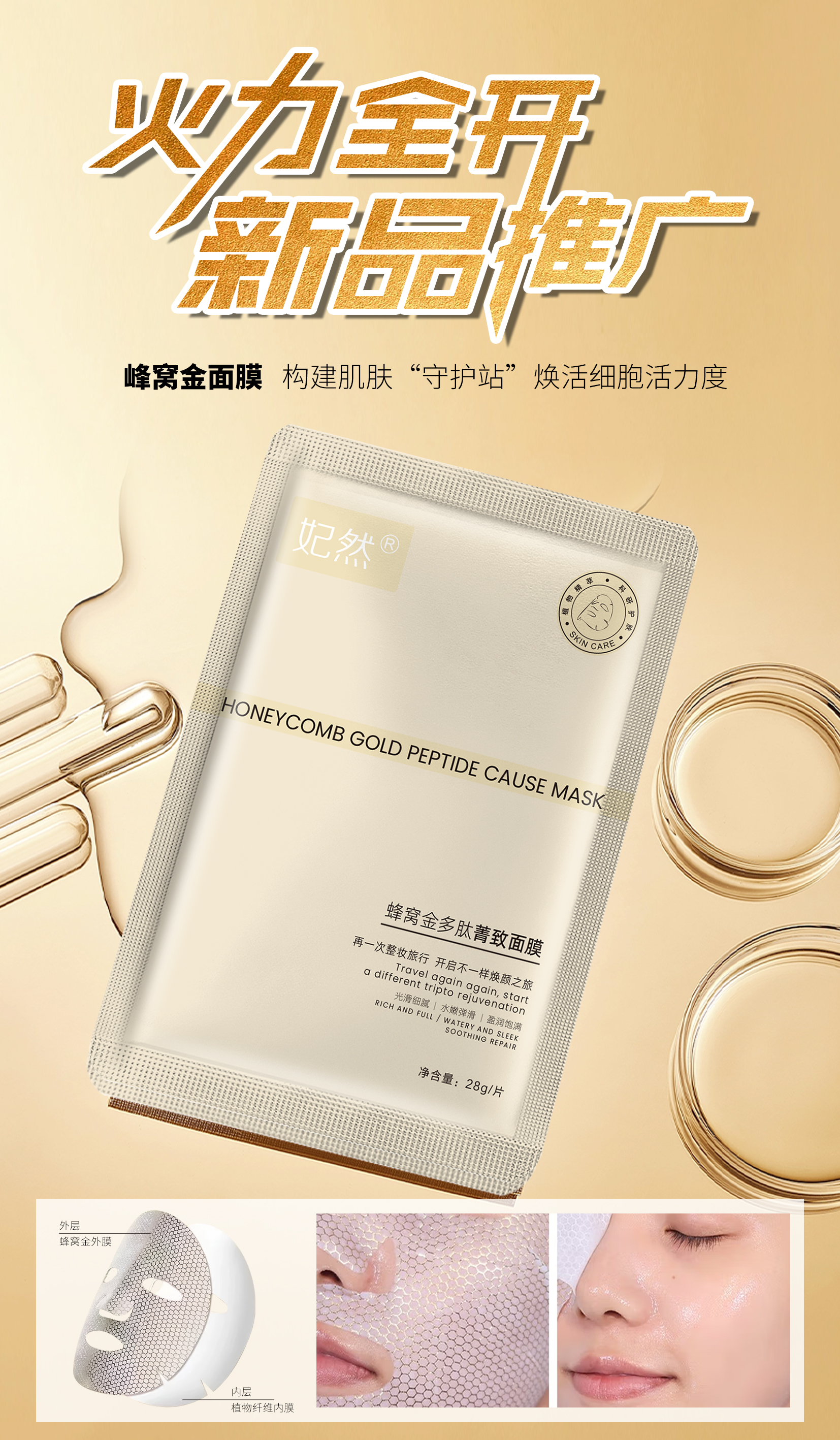 【厂家直供】妃然金刚侠蜂窝黄金多肽面膜_胶原肌肽补水保湿提拉紧致抗初老
