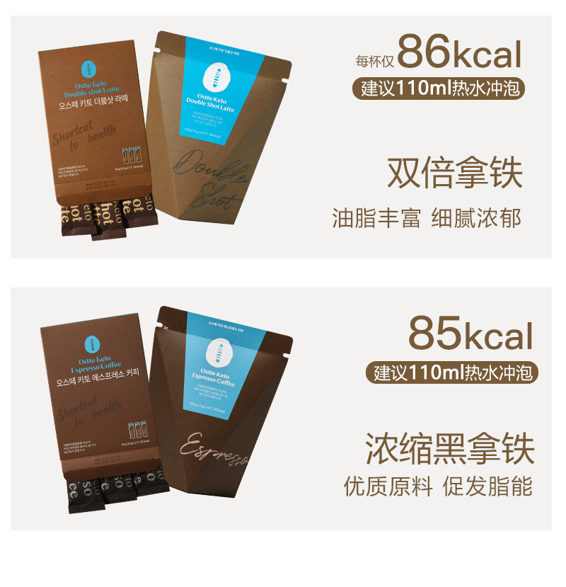 韩国生酮速溶咖啡冻干粉 A-2126 (效期:黑拿铁27-4/ 双倍拿铁27-3 炼乳拿铁27-3)
