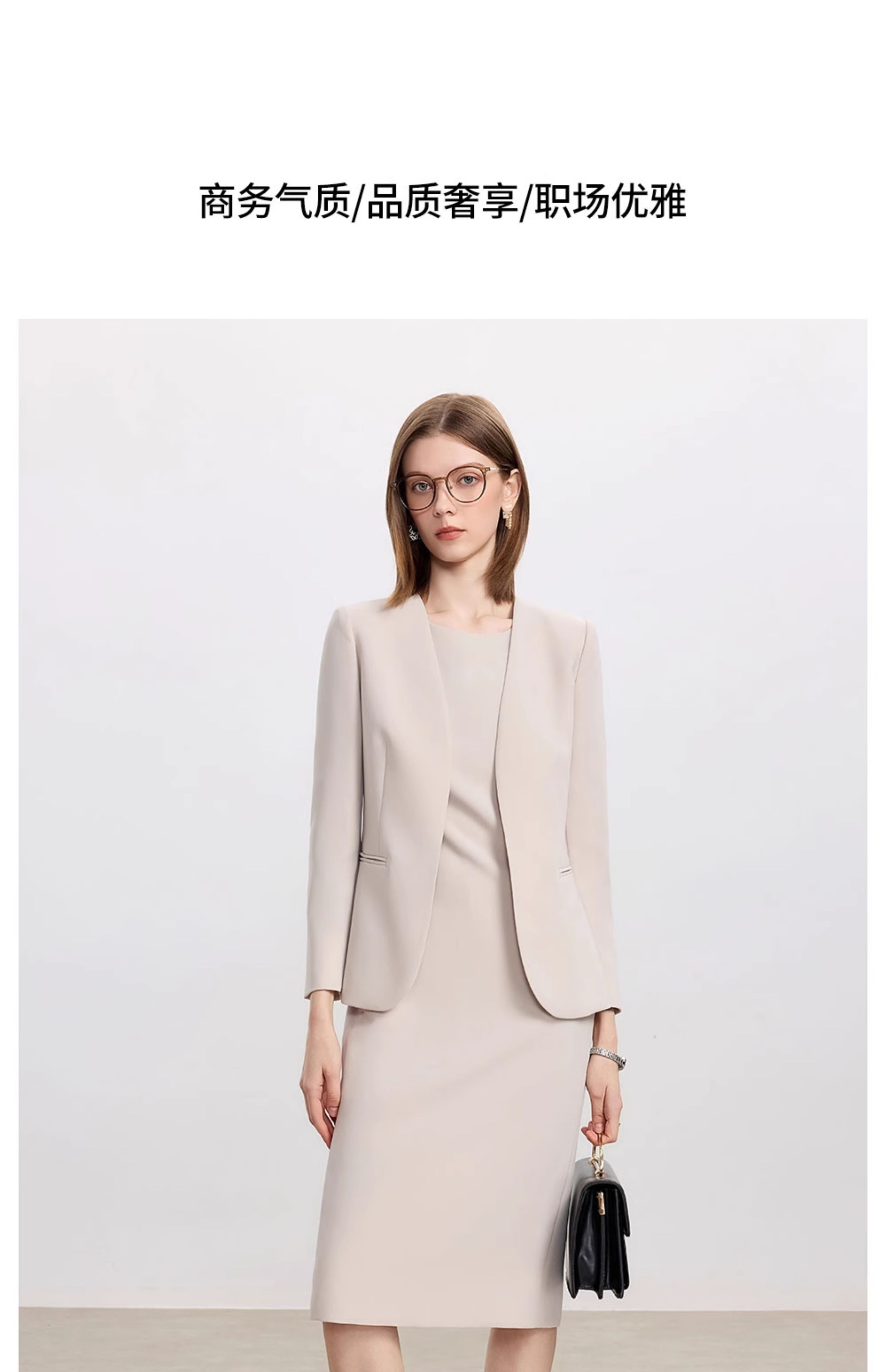 IWY/气质高级感西服外套女米杏色通勤上班西装连衣裙两件套裙C2344+Q1439