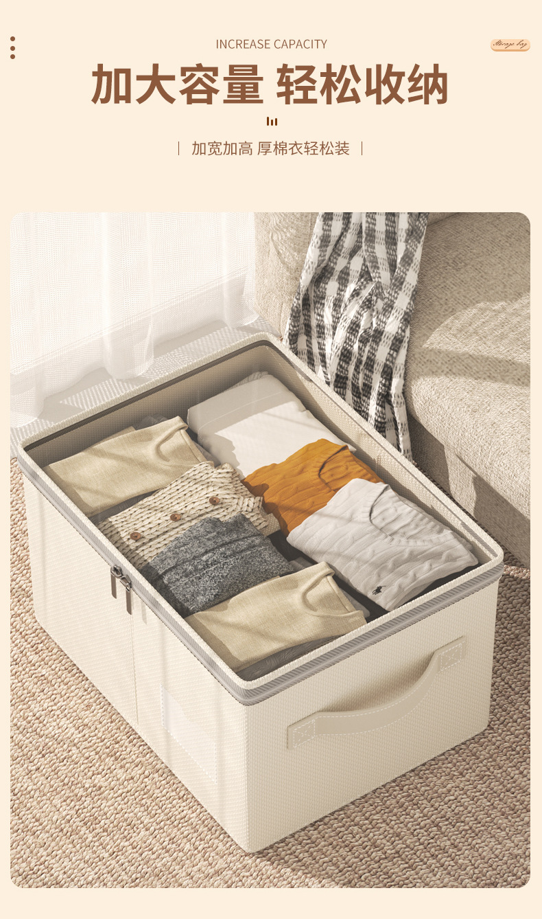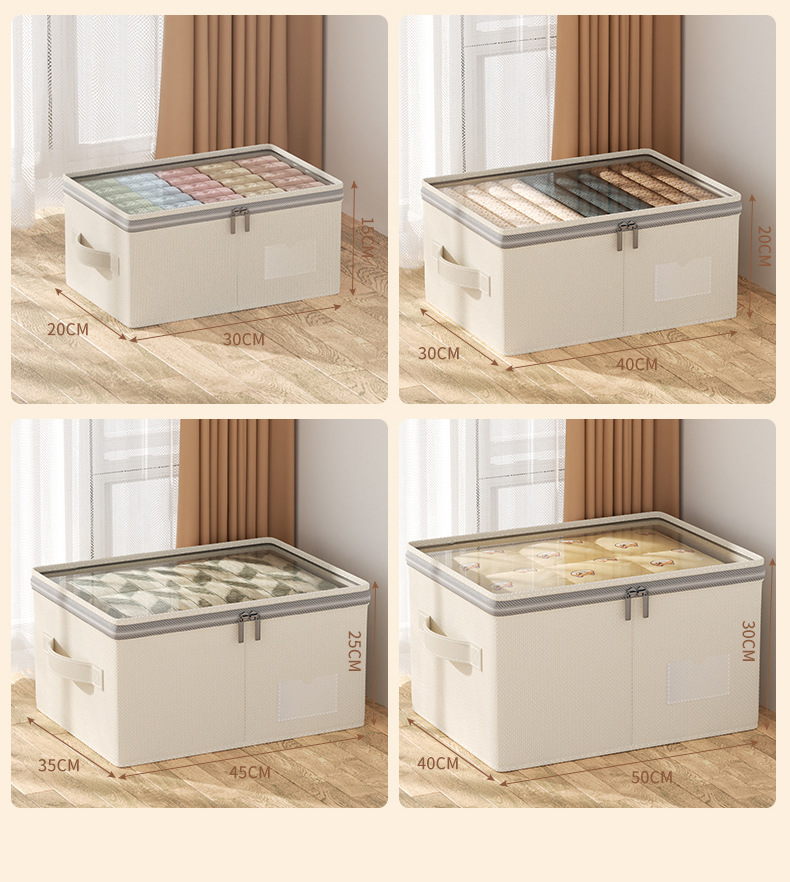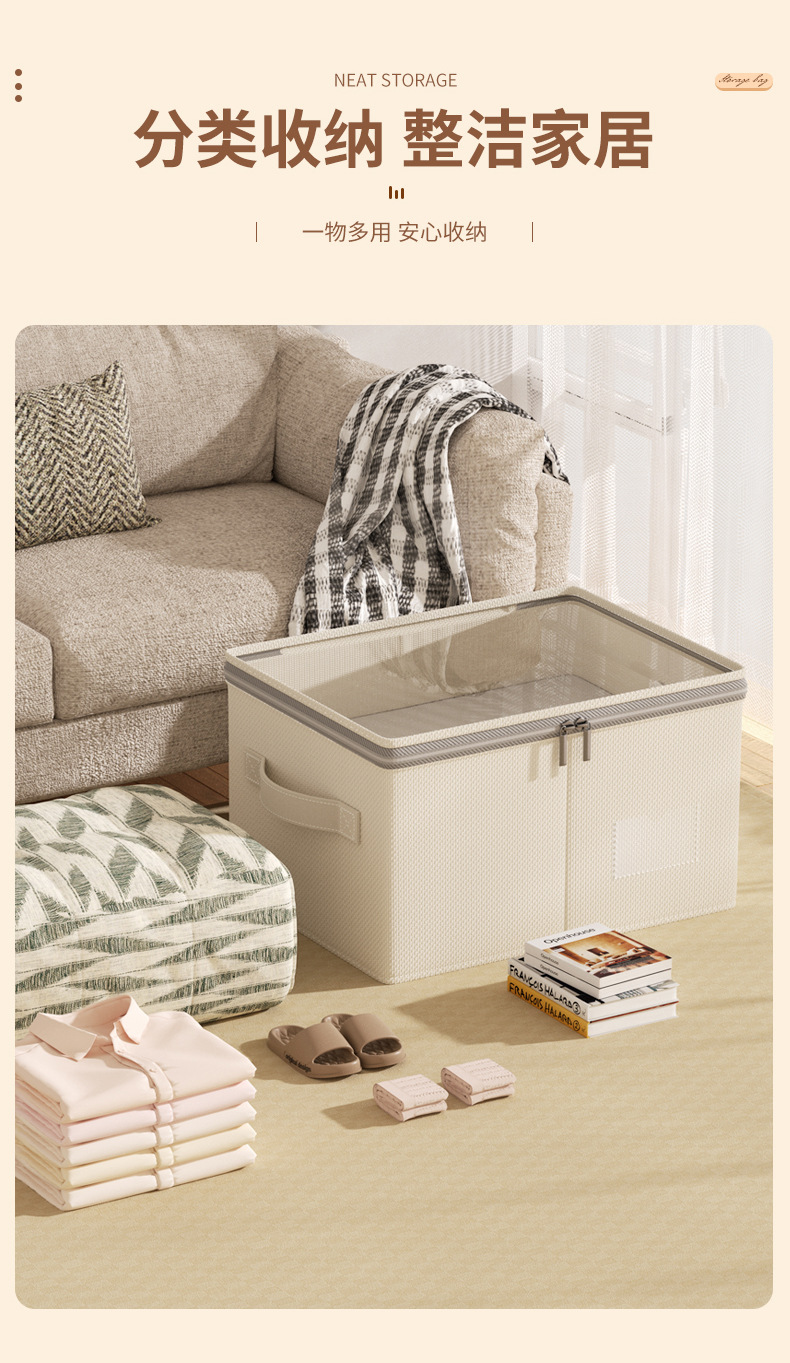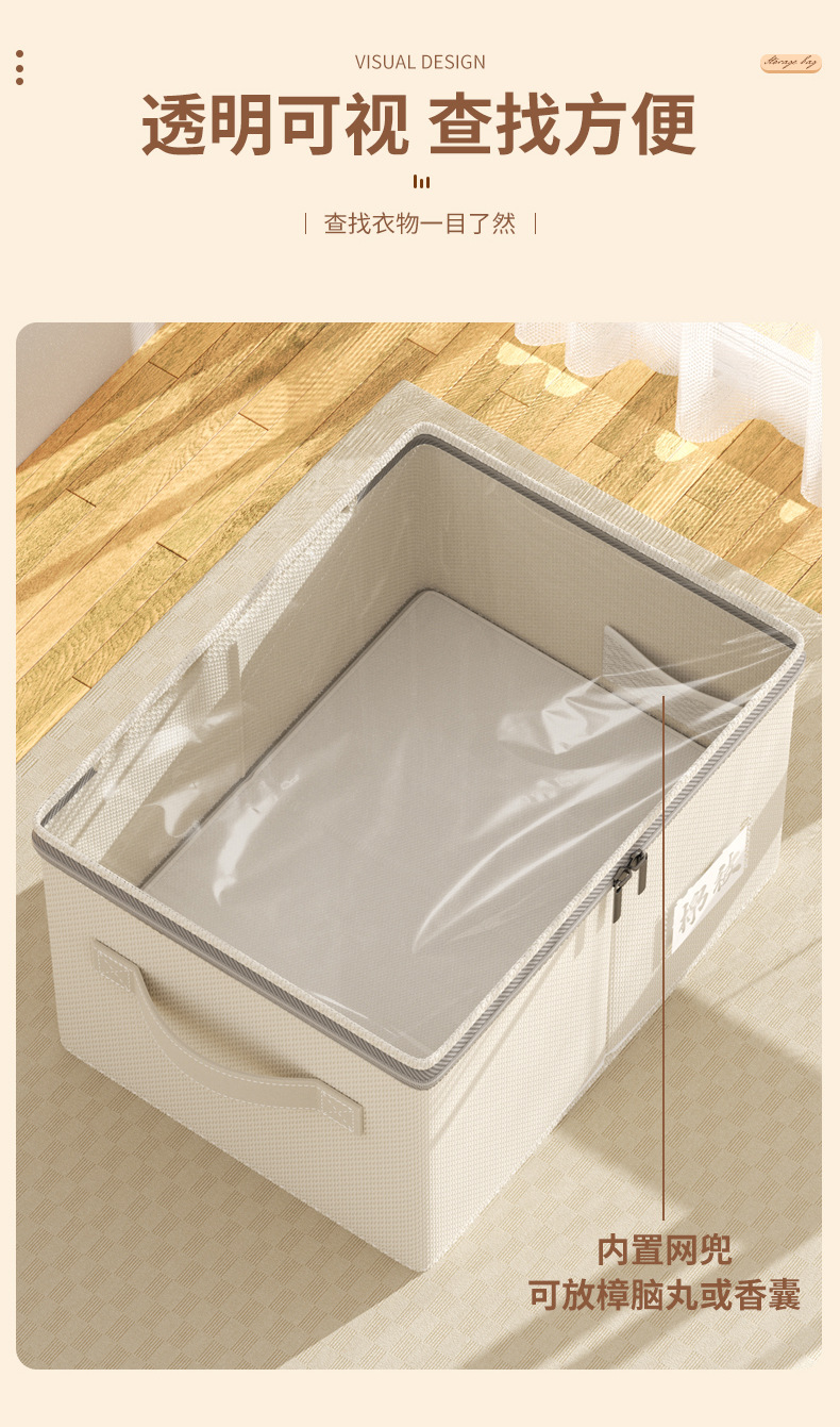 居家收纳好帮手【透明可视!查找方便】折叠收纳,不占空间,新款可视天山棉麻收纳箱加厚可水洗大容量衣物整理箱家用卧室储物。rb
