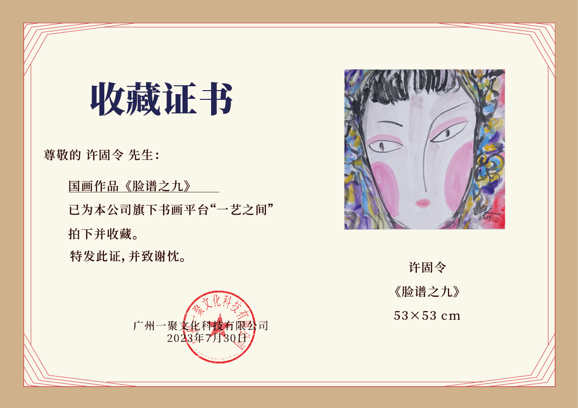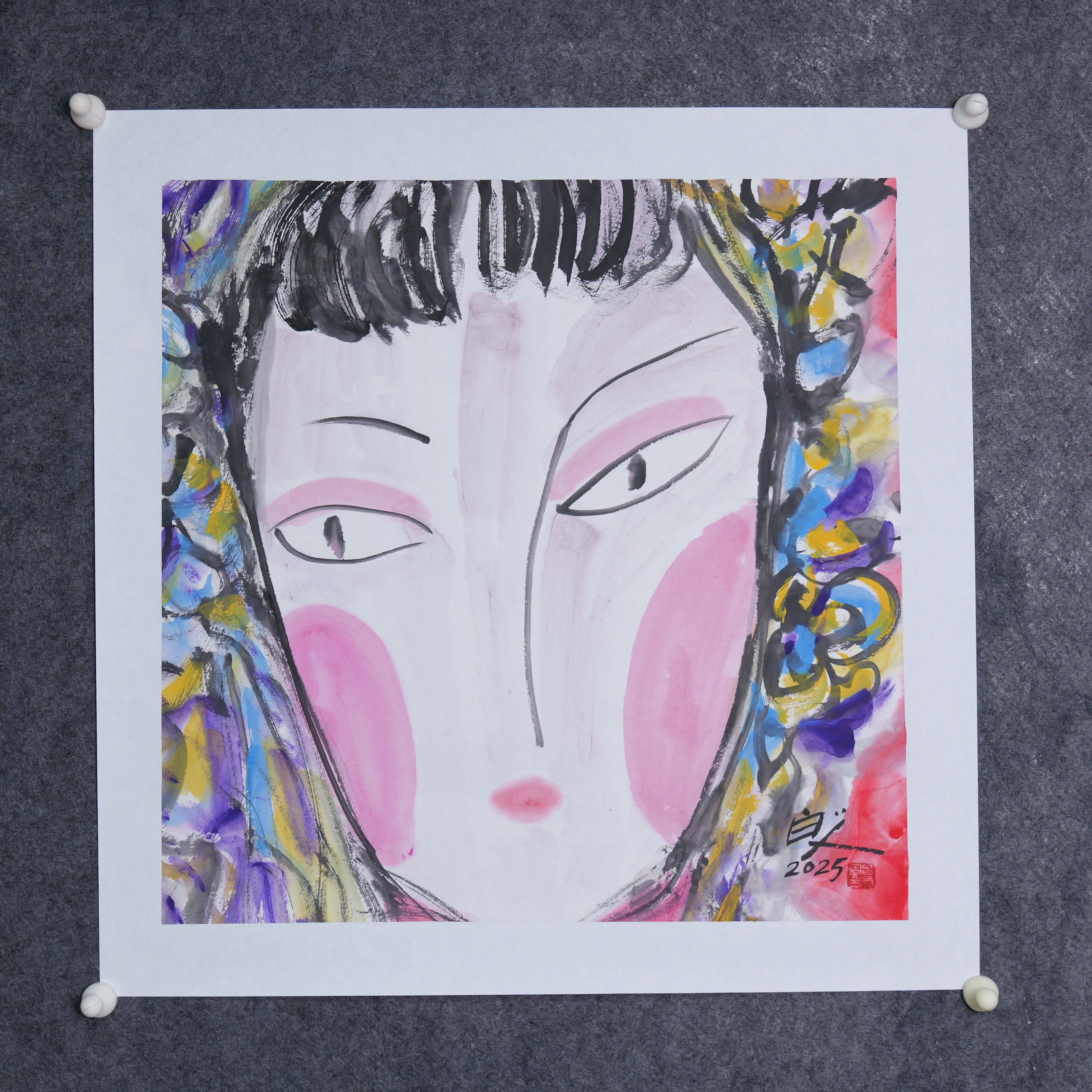 许固令《脸谱之九》国画原作53CM*53CM 手绘宣纸脸谱系列斗方作品【GH0488】