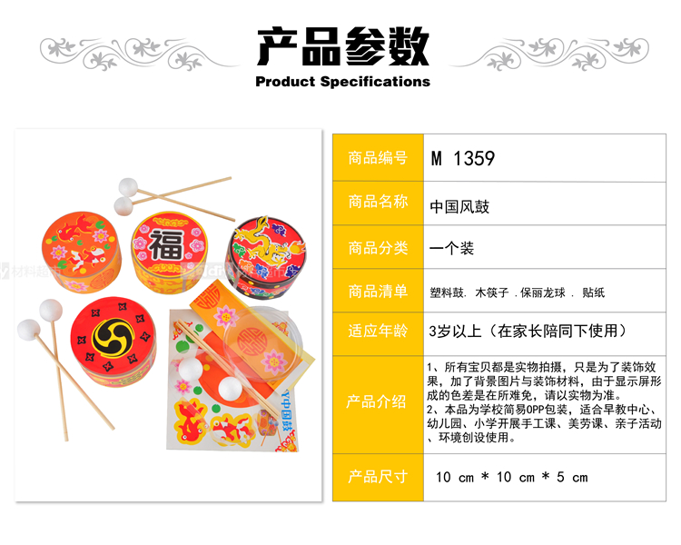 美可diy新年手工diy中国鼓幼儿园儿童手工自制塑料粘贴大鼓材料包