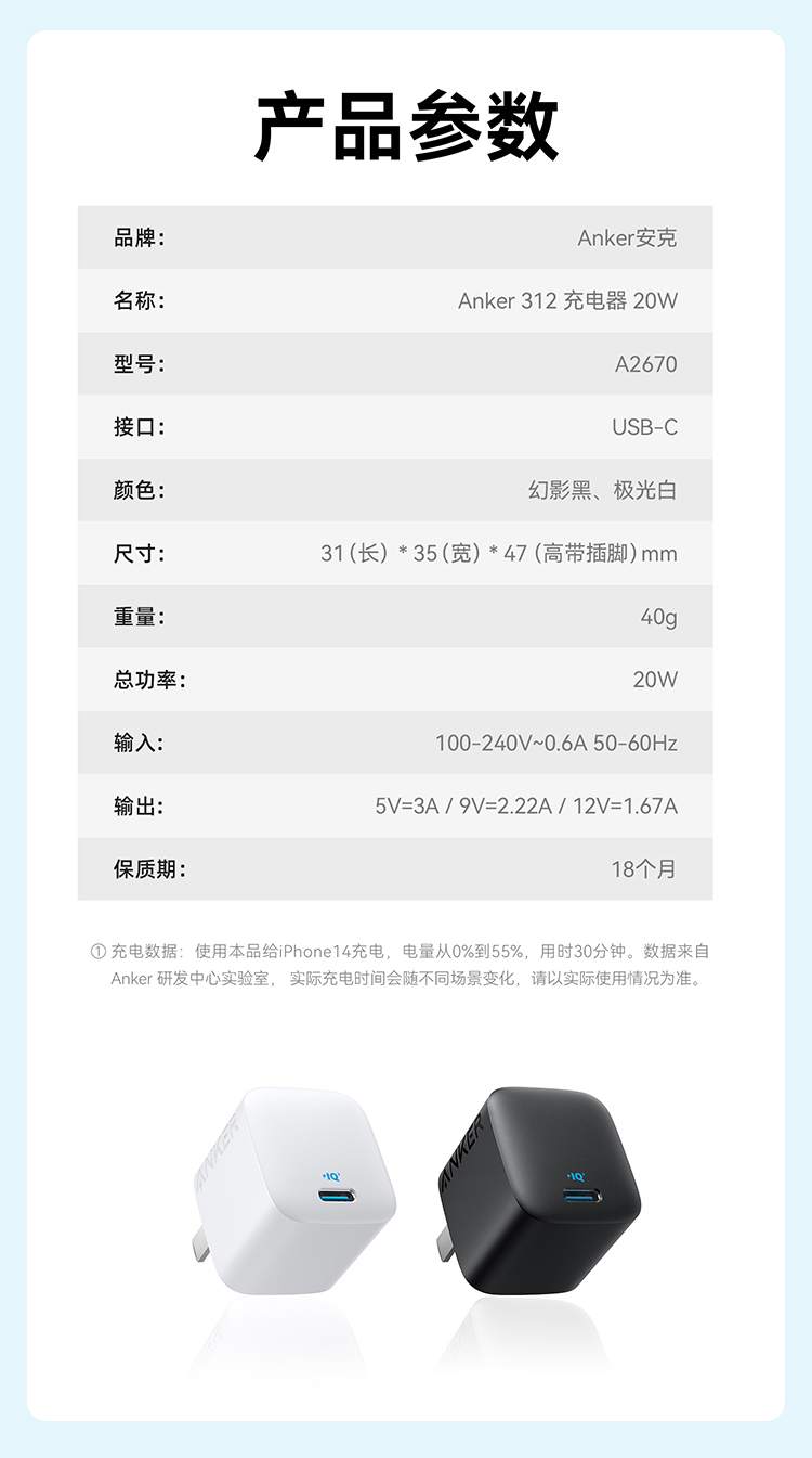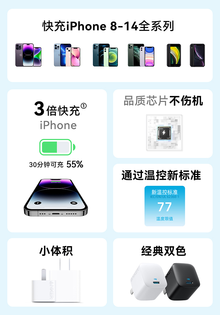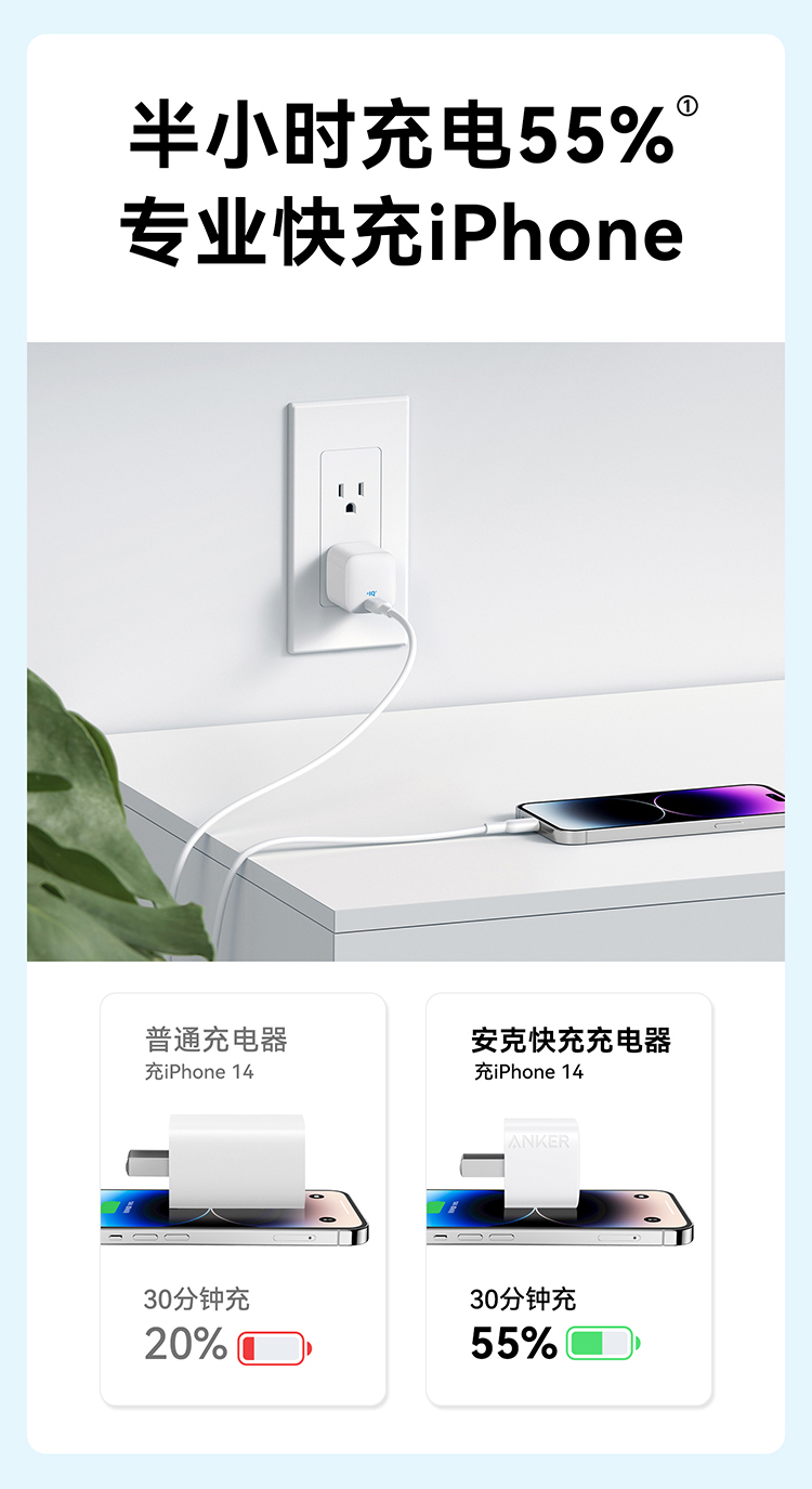 【热销】Anker安克 20W超小体积PD快充Type-C苹果线快充套装 A2670