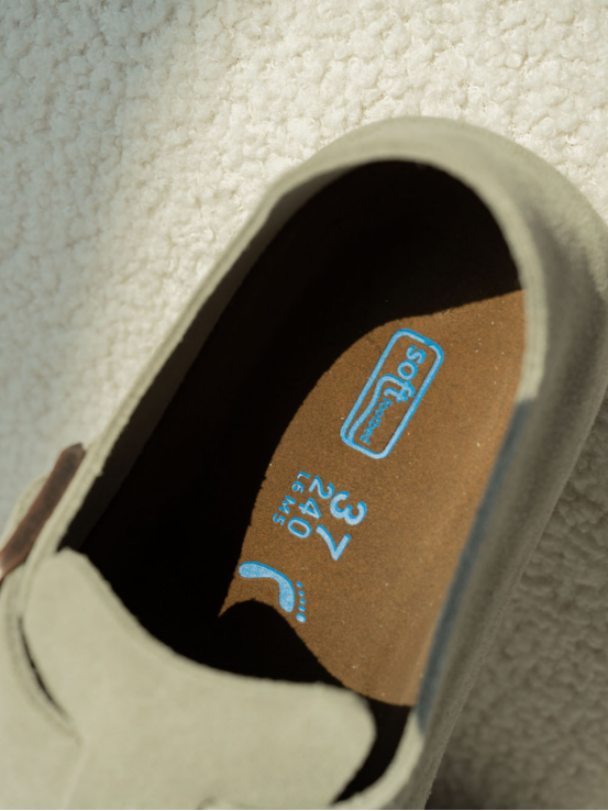 说重点:里外全是真皮❗❗ 面部原料采用高档牛皮原皮 经过工程师严格筛选 只用能达到要求品质最好的牛皮原料 经过167道环保工艺加工而成 这样做好的牛皮具有高丝光感 厚度高以及柔中有挺感,挺中有柔感 更适合制作博肯鞋的特性
