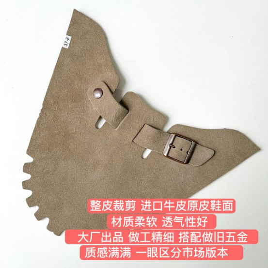 🔻工厂实拍: 所用到的原材料采用进口高档牛皮原皮 每张厚度都达2.5-2.8mm 每张皮质都是经过工程师严格筛选 经过167道环保工艺加工而成 所以做出来的勃肯鞋久穿不易塌陷,上脚舒适高