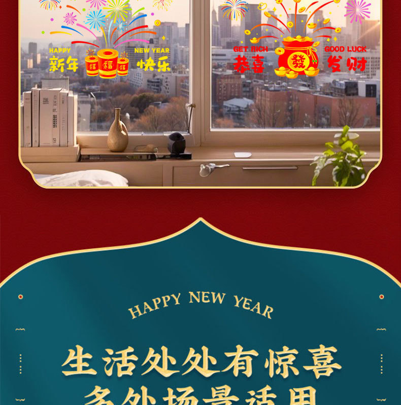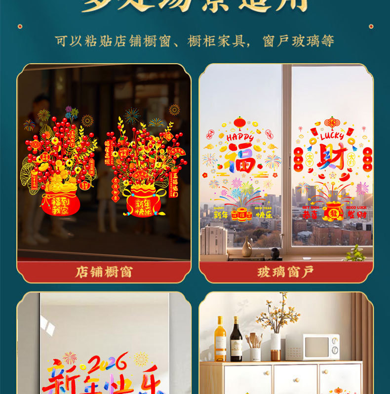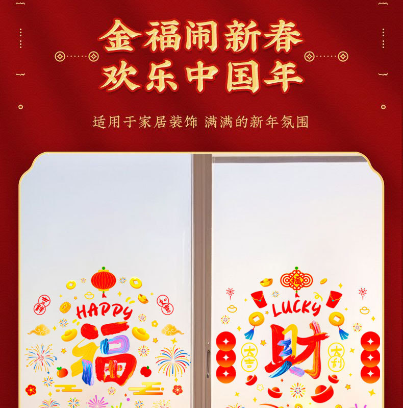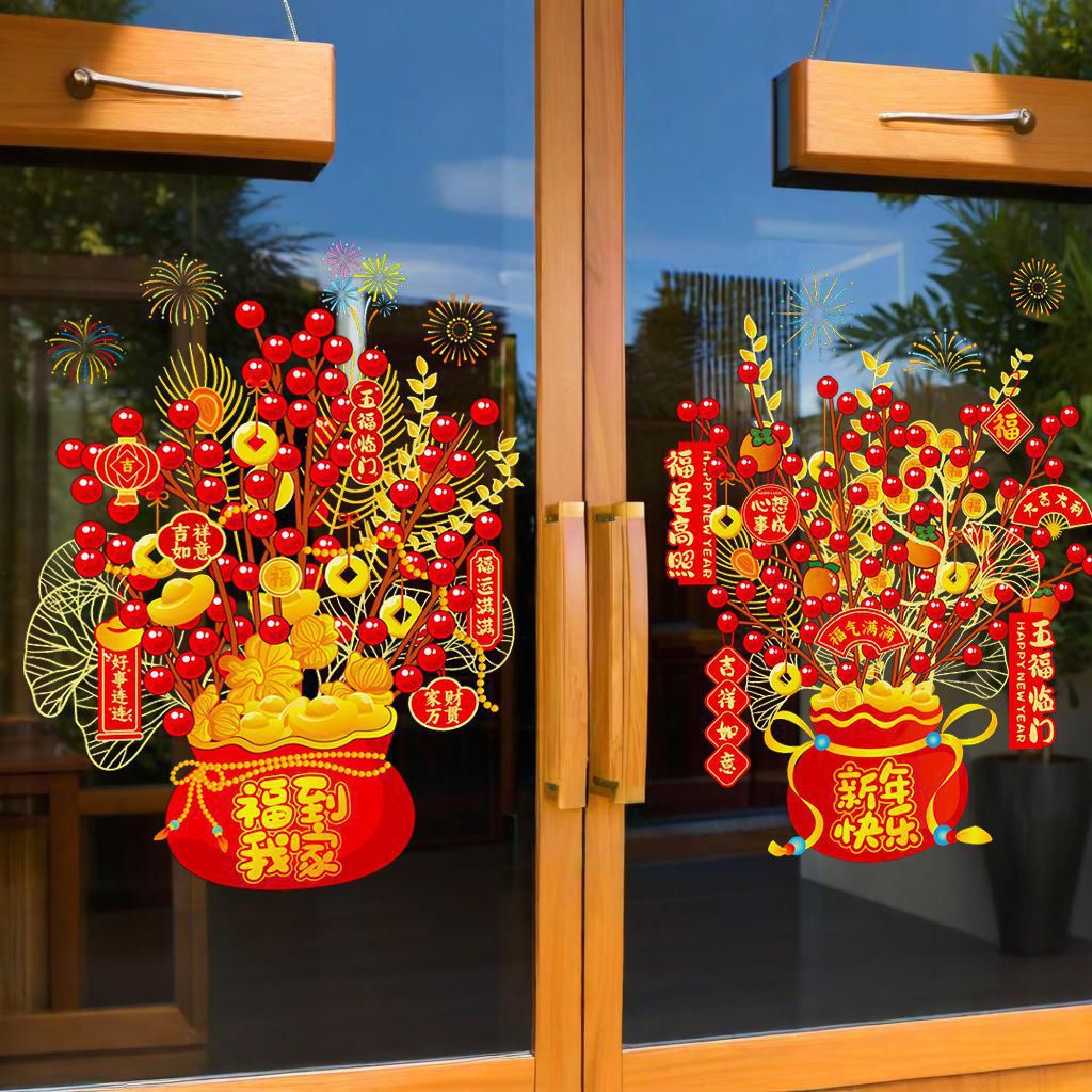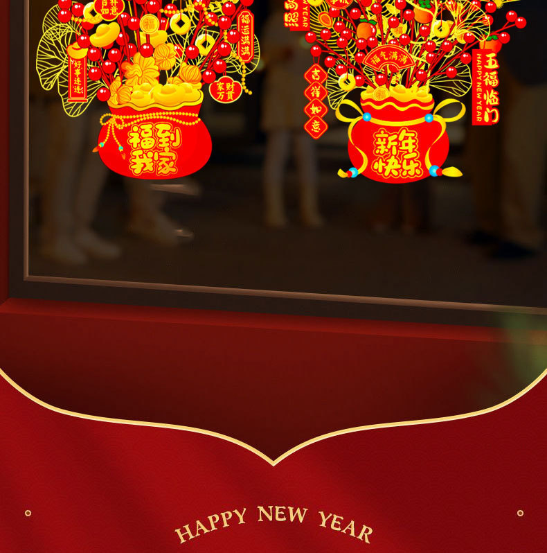【辞旧迎新❗新年发财树窗花 】30秒轻松贴,不繁琐不俗气,静电贴春节过年阳台厨房玻璃窗推拉门装饰窗贴贴纸。rf
