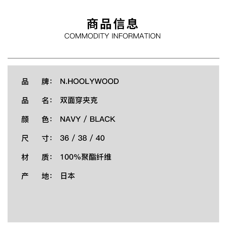 N.HOOLYWOOD REVERSIBLE JACKET 男装军事系列双面穿夹克