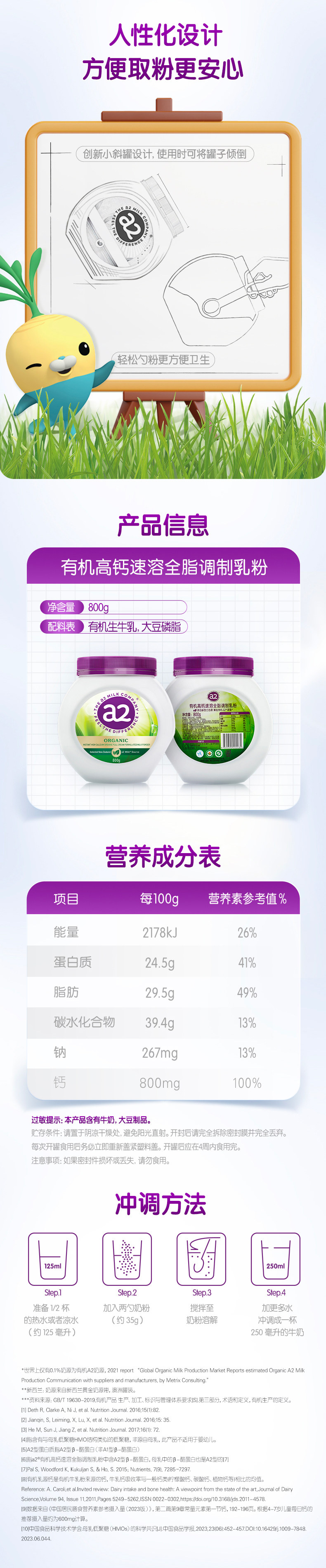 春季长高助力~【原价290+ 临期清仓129元一罐!】a2有机高钙速溶全脂调制乳粉800g 抓住发育期 成长添动力 A2型蛋白 更细消化吸收 奶粉 妈妈再也不用担心我长不高啦