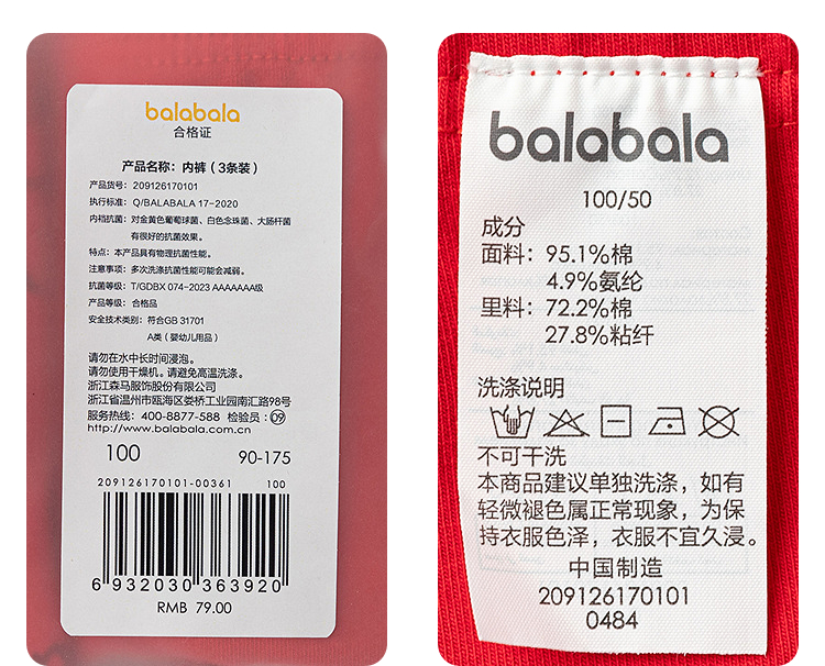 【balaOne】巴拉巴拉儿童内裤棉男童不夹pp抗菌裆四角短裤三条装