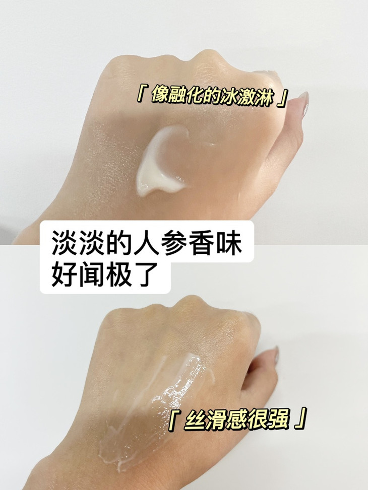 一些我自己用下来的小反馈也分享给大家 ✔️淡淡的草本人参香,味道非常的高级 ✔️这款人参霜是不挑肤质的哦 ✔️干皮油皮混合皮大胆放心用! ✔️肤感真的绝绝子 ✔️瓶身也非常的高端,妥妥贵妇霜 !这不护肤的仪式感又加了一层