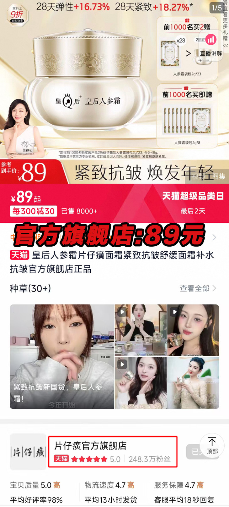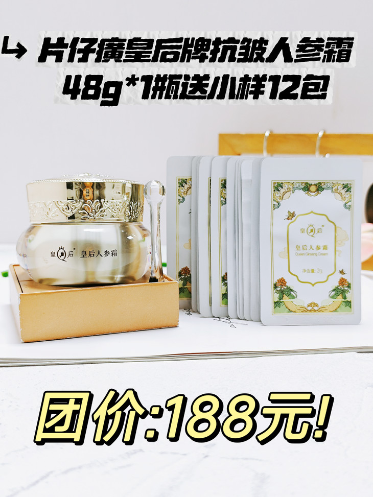 姐妹们,这波片仔癀人参霜双福利千万别错过🎉 买正装人参霜即送人参霜小样! 买1瓶15g的人参霜即送小样2g*2包共4g‼️ 买2瓶15g的人参霜即送小样2g*4包共8g‼️ 买1瓶48g的人参霜即送小样2g*12包共24g‼️ 赠品数量有限,且是实实在在的同款人参霜! 不仅如此,我们还在价格上做了巨让价优惠,天猫旗舰店在售💰89元/瓶,我们单瓶直降💰30元! 也不用担心正品问题,有防伪查验,一瓶一码,假一罚十😎
