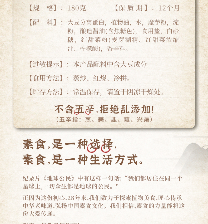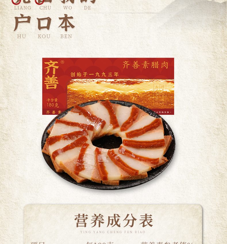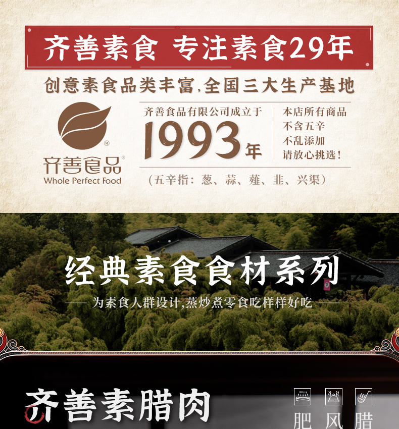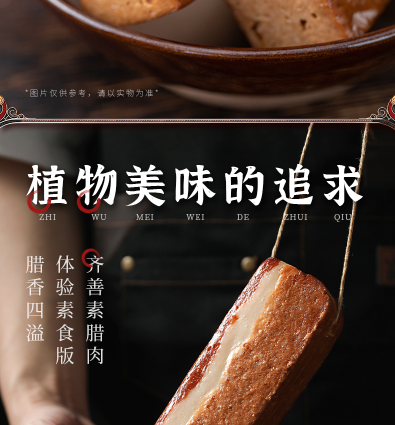 【齐善素食 生财素腊肉】佛家纯素斋菜素肉烟熏广式腊肠五花腊肉