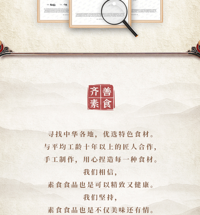 - 素食庄园帮助大山中家乡乡亲们滞后的产品解决销售问题,提供来至深山中原汁原味的天然食品,无任何添加剂、口感极佳,真正放心良心产品。