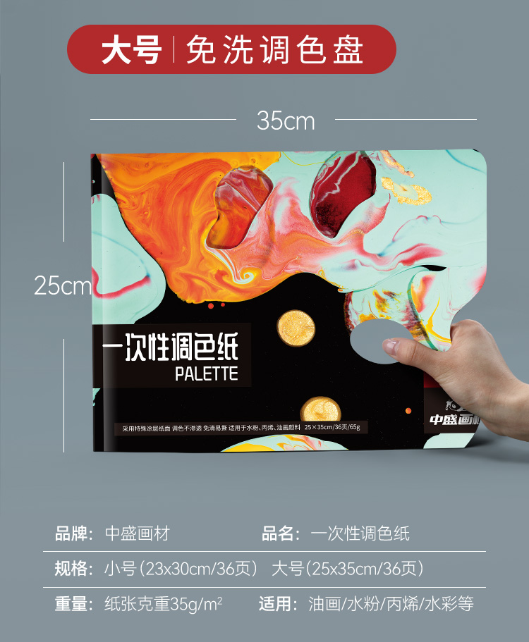 中盛画材 纸质可揭式一次性调色板/30张免清洗/油画颜料调色盘