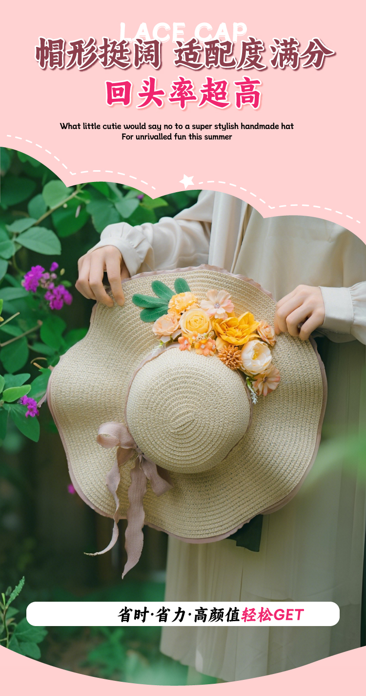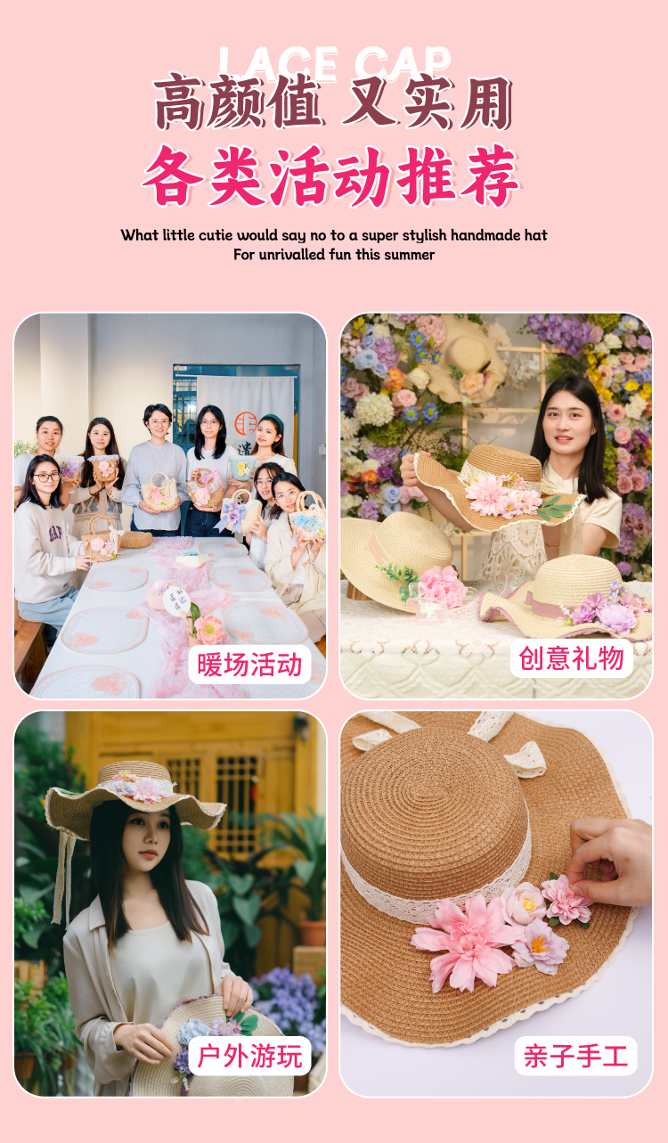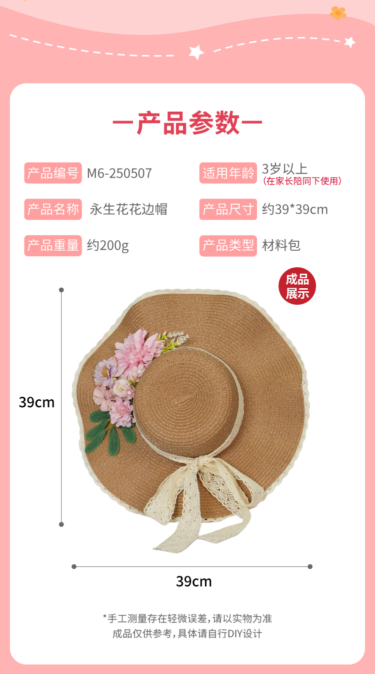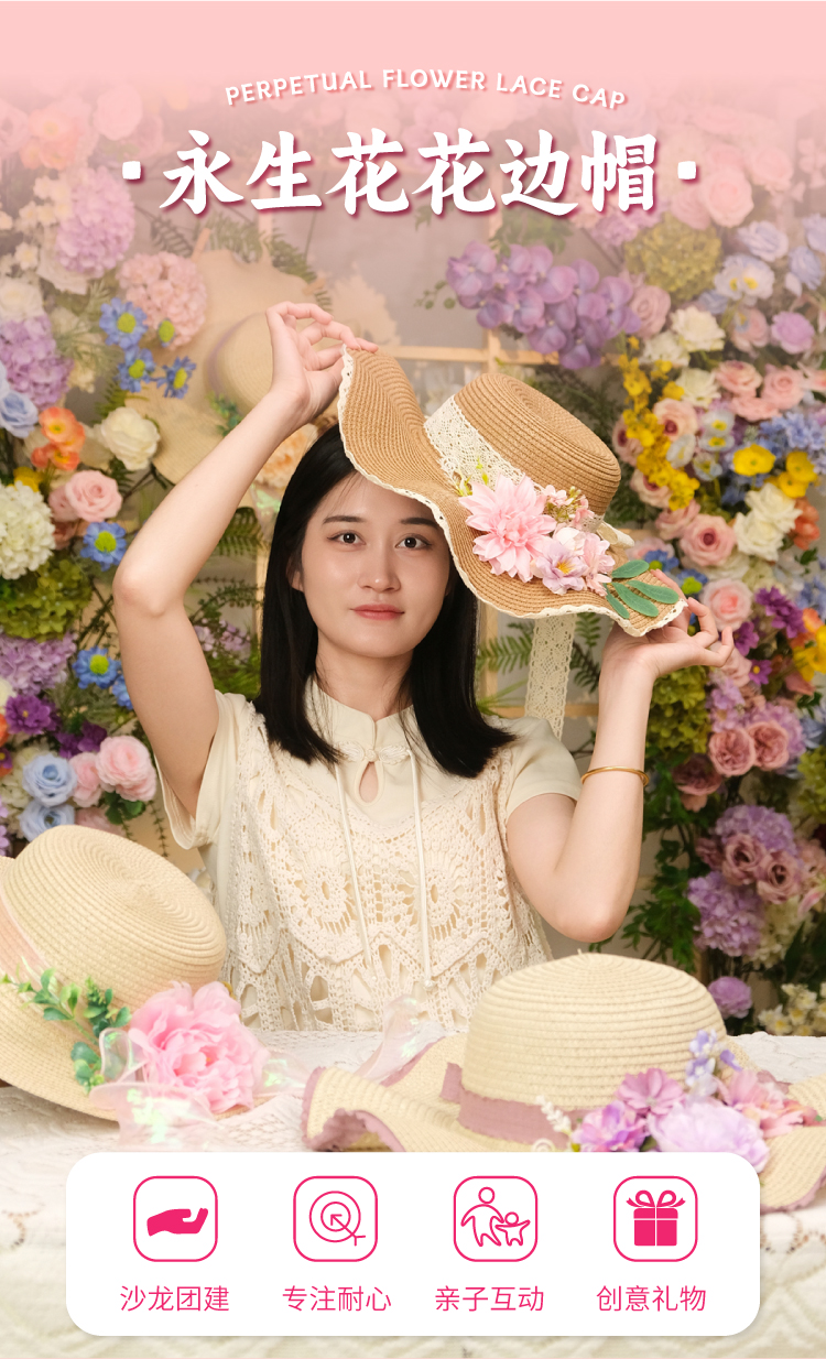 母亲节礼物永生花花边帽子手工diy材料包干花朵草帽儿童团建活动