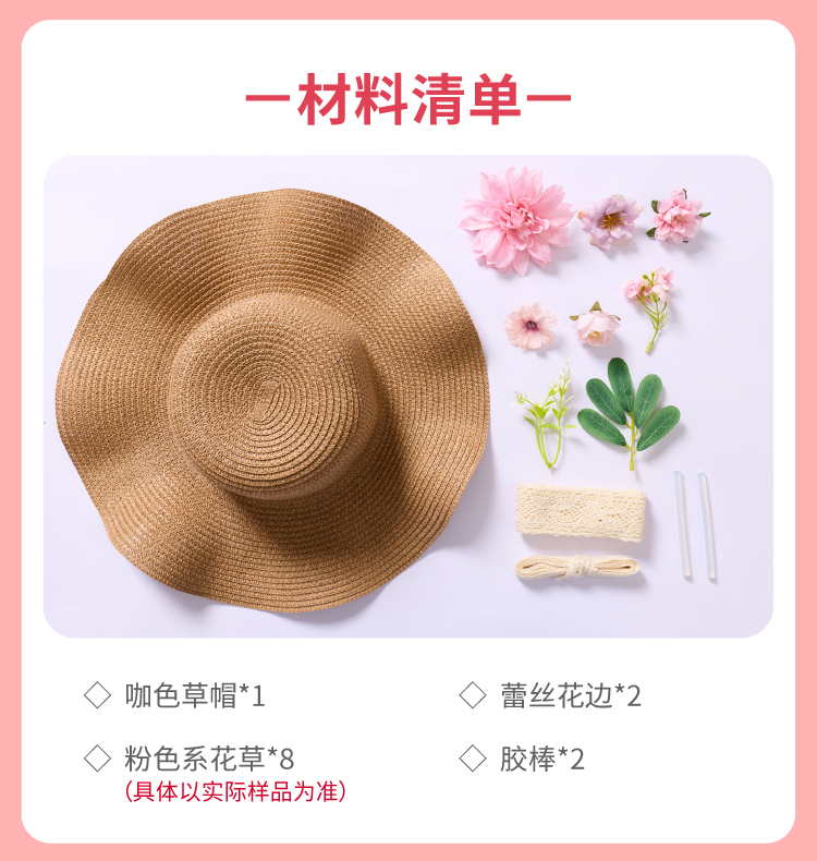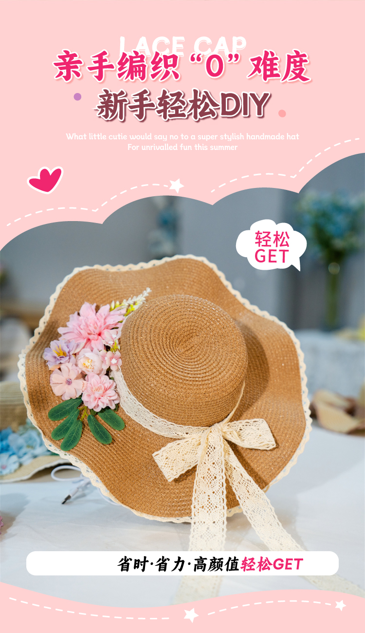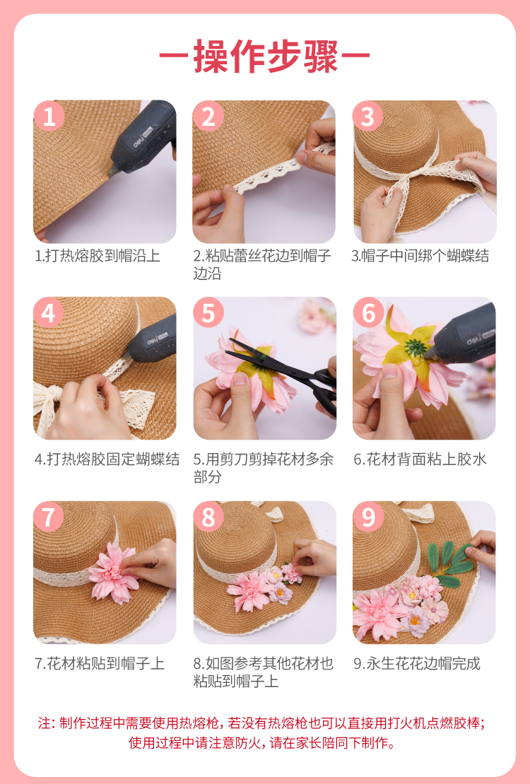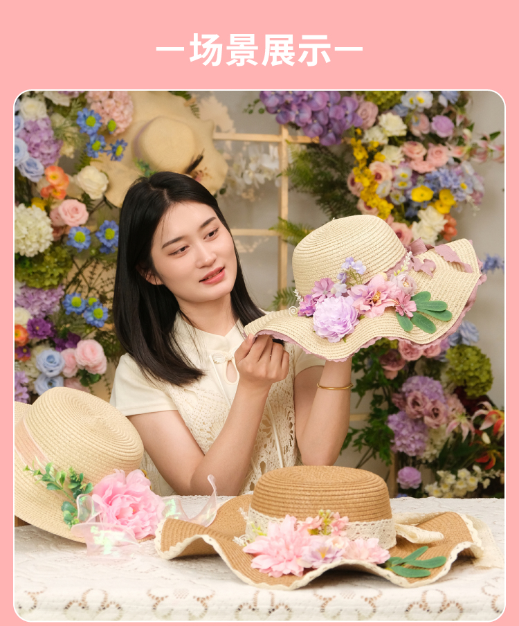 母亲节礼物永生花花边帽子手工diy材料包干花朵草帽儿童团建活动