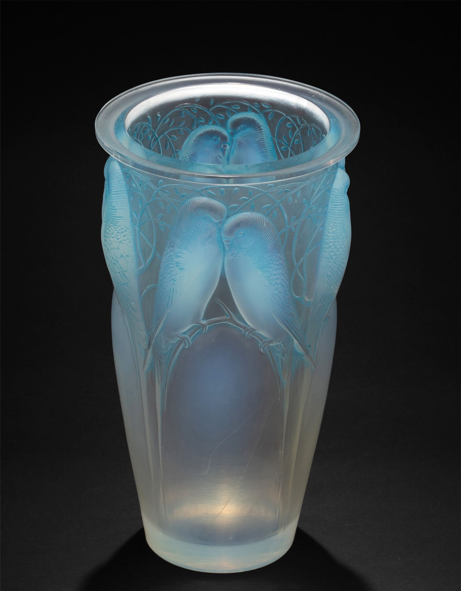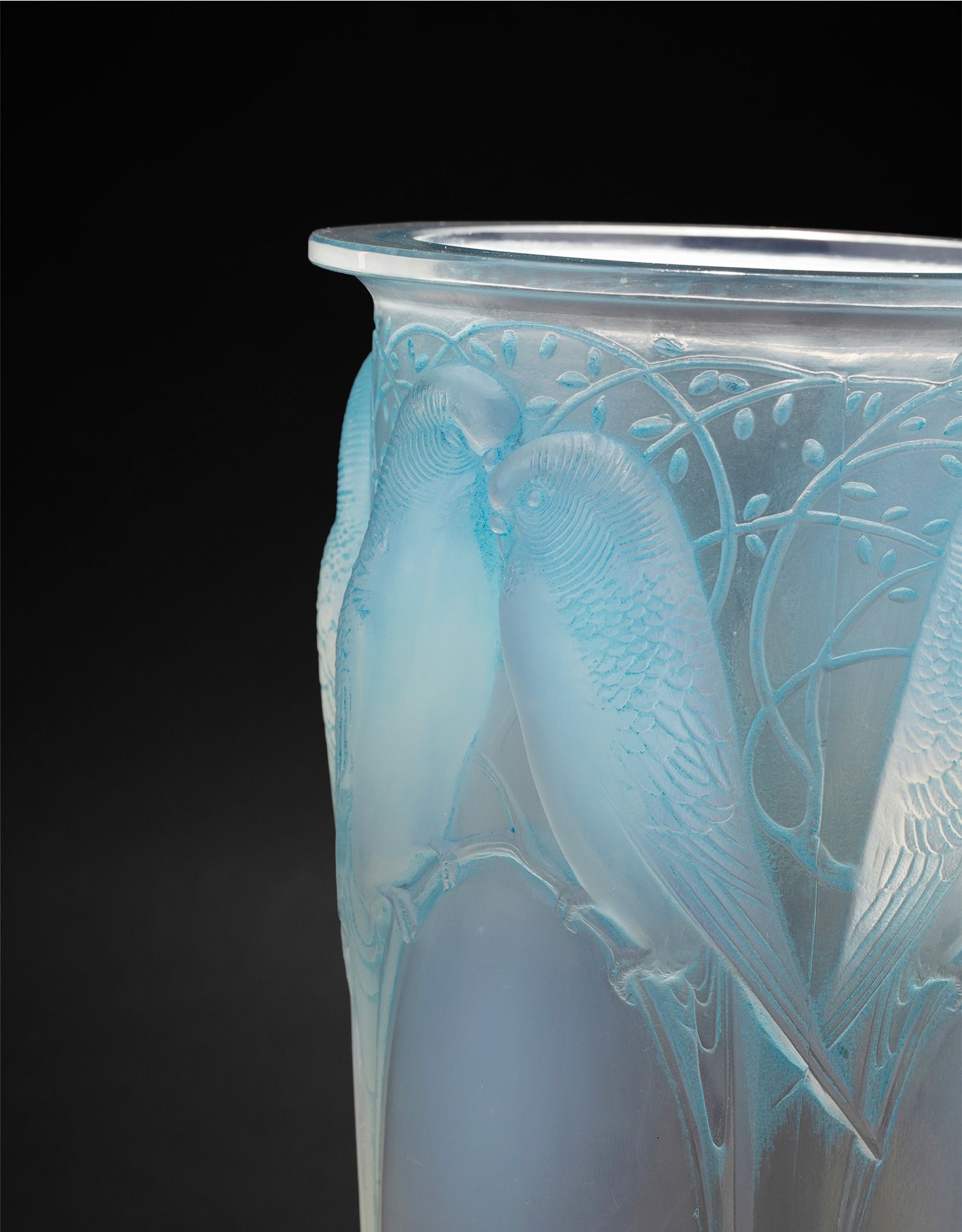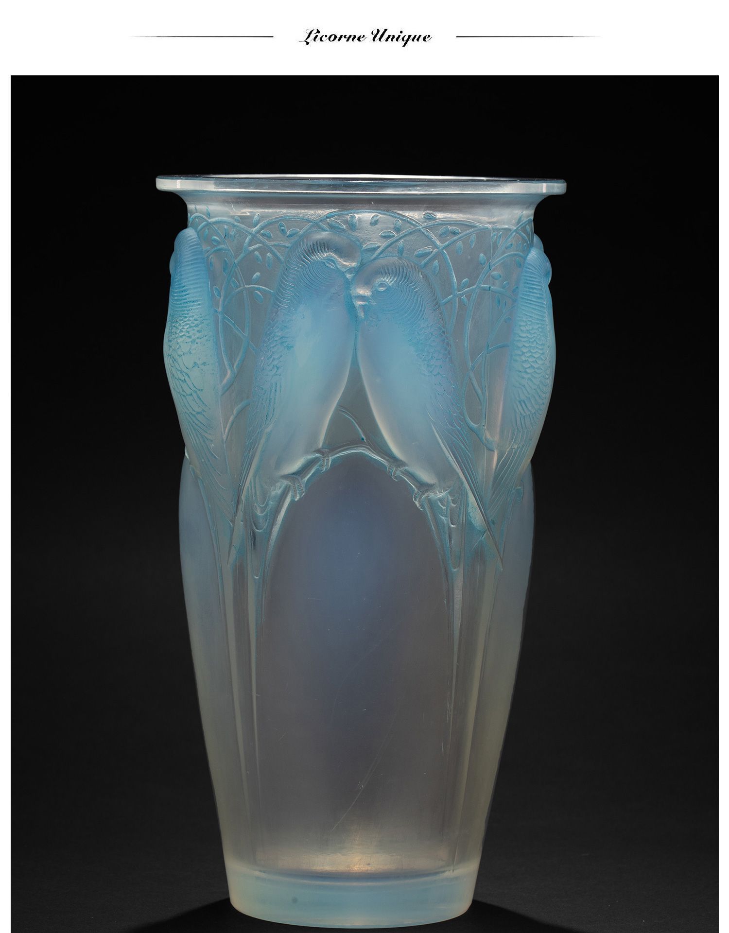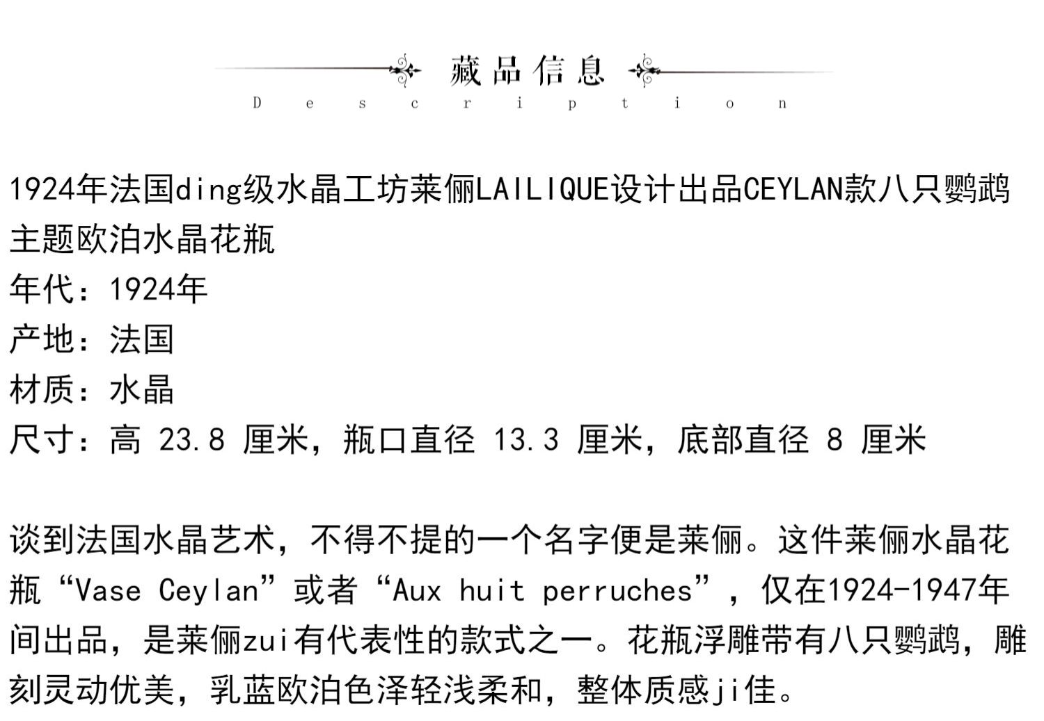 独角鹿西洋古董法国莱俪LAILIQUE设计CEYLAN款鹦鹉欧泊水晶花瓶