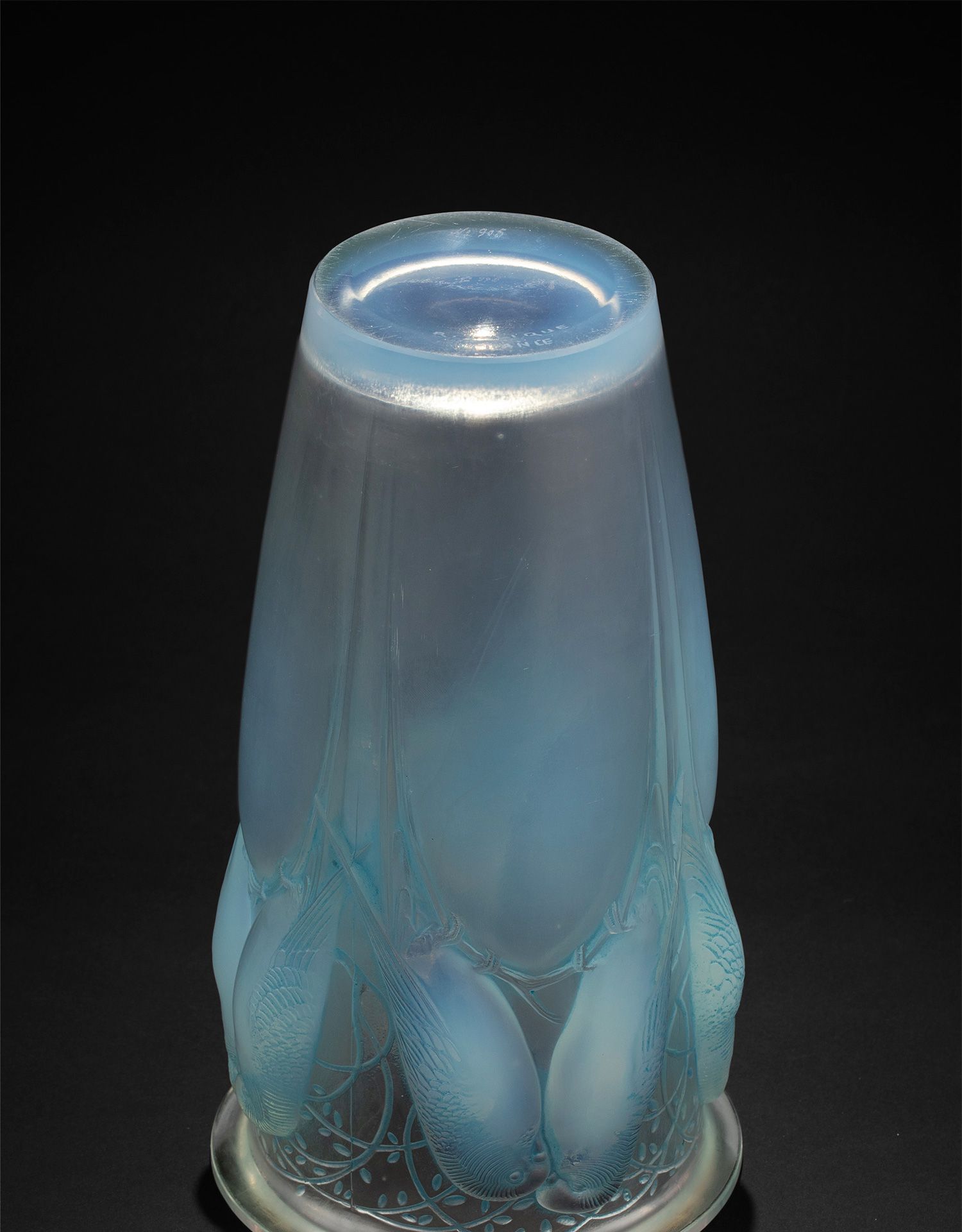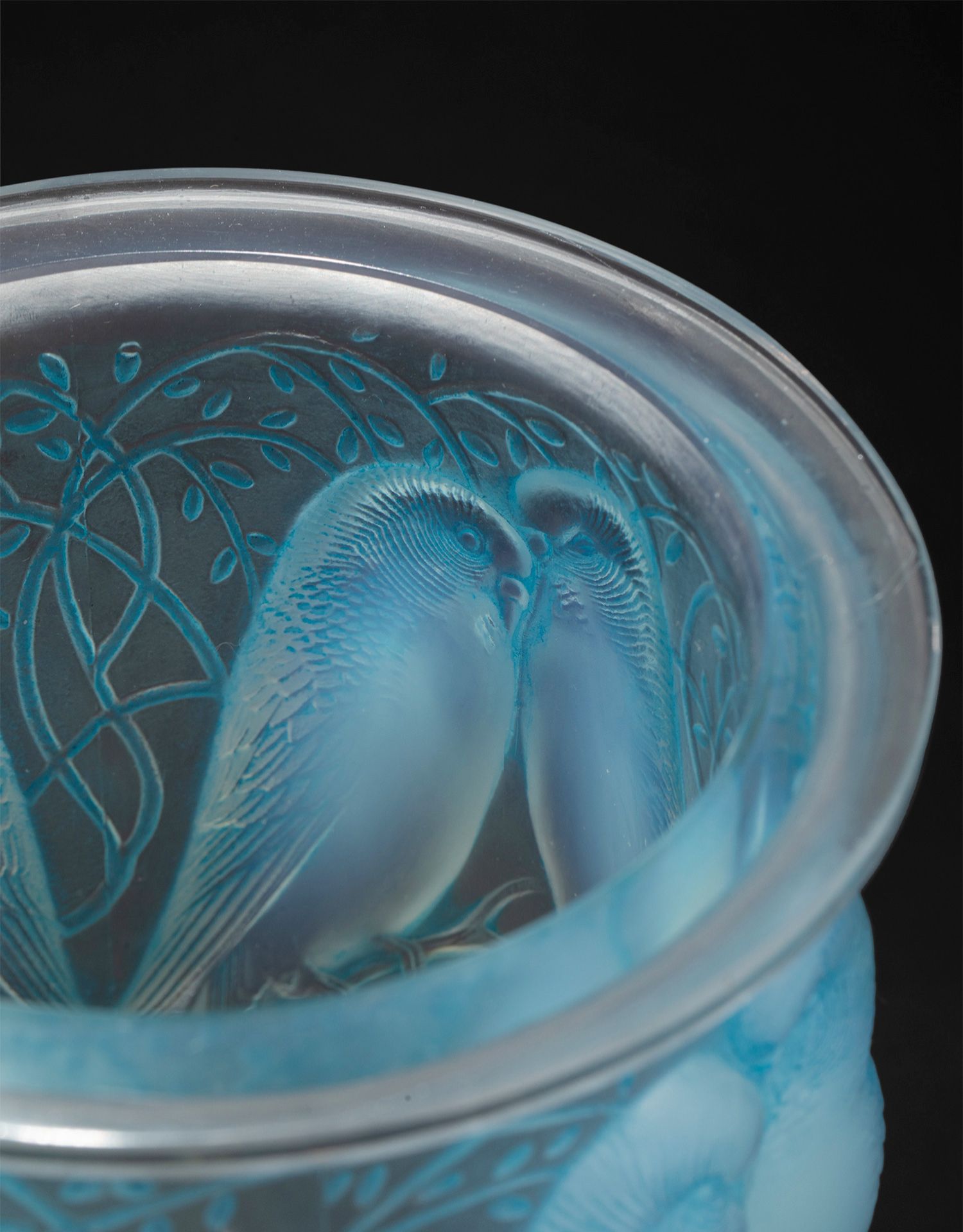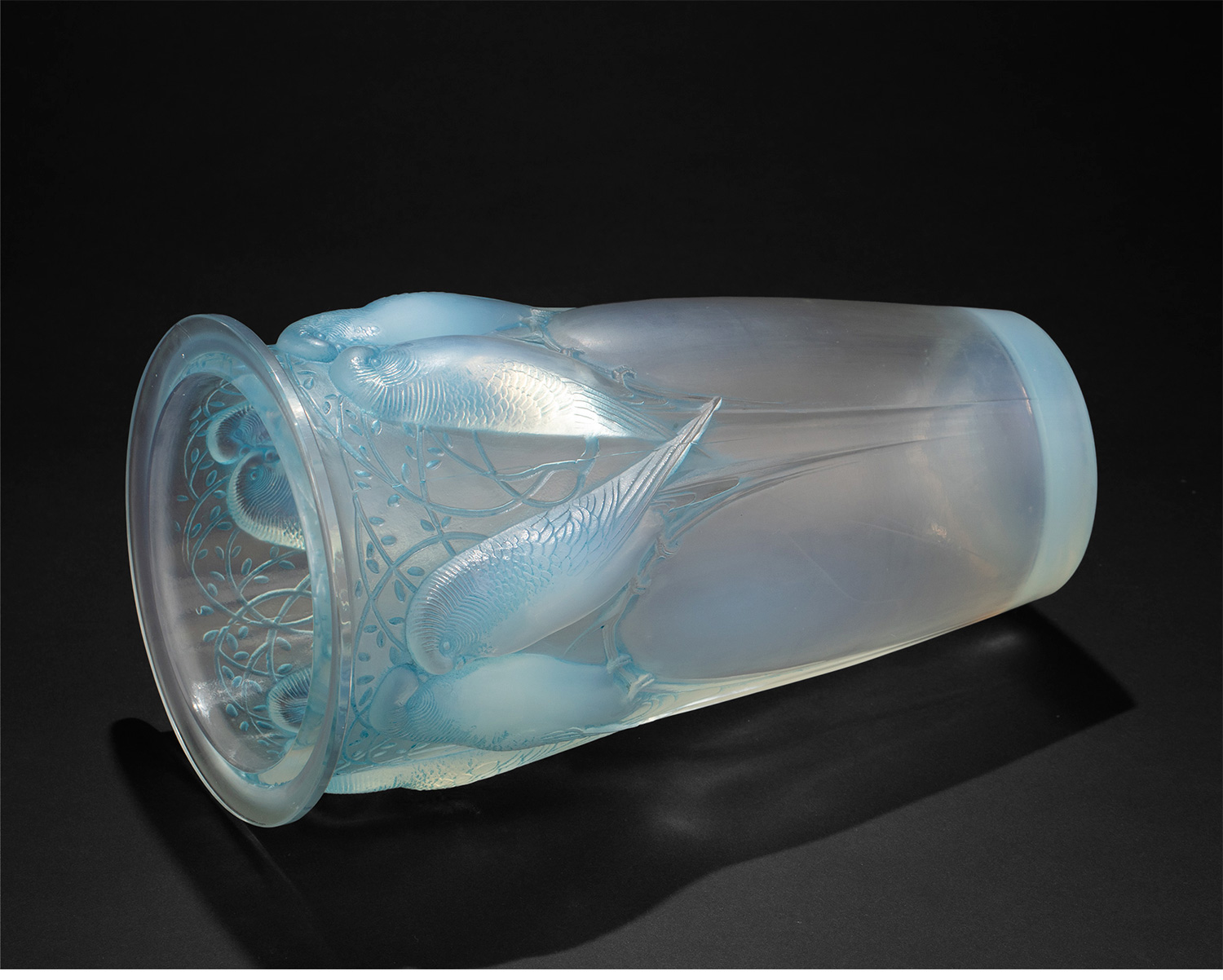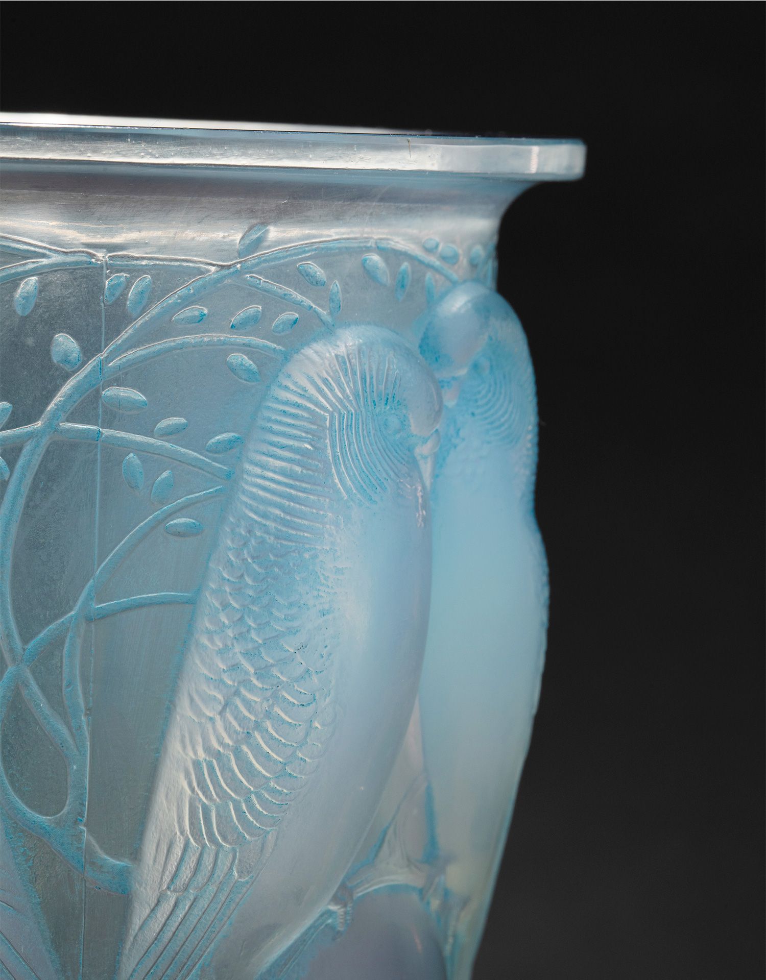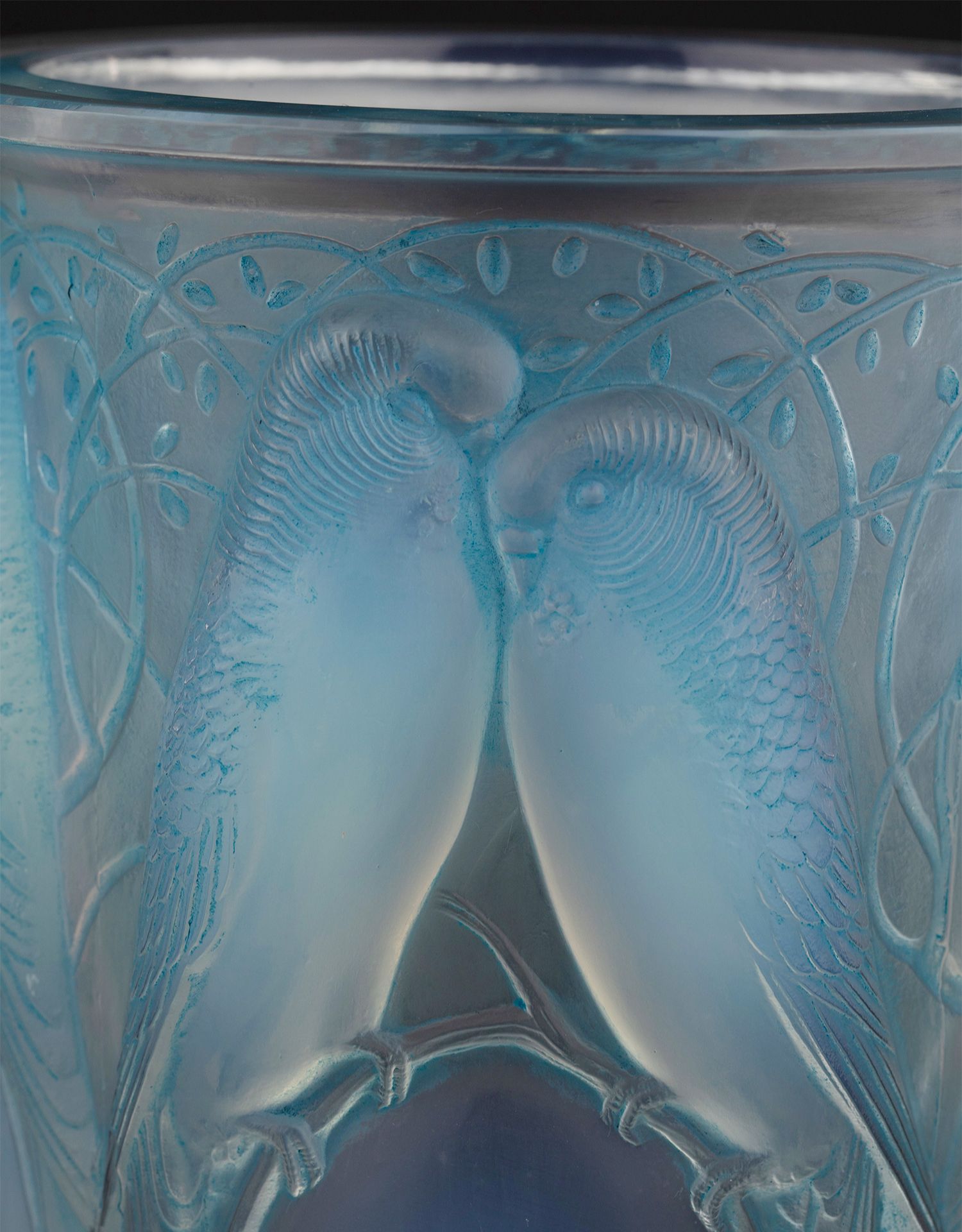 独角鹿西洋古董法国莱俪LAILIQUE设计CEYLAN款鹦鹉欧泊水晶花瓶