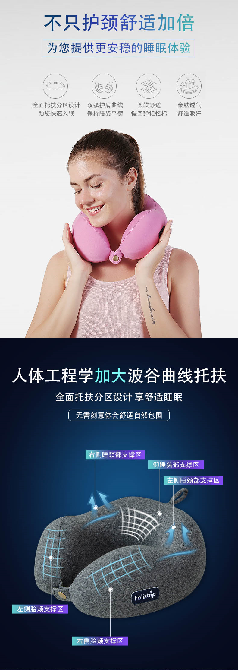 Feliztrip斐利斯 慢弹记忆棉U枕搭飞机高铁午睡神器防菌网纱可拆洗外套 TR-P216