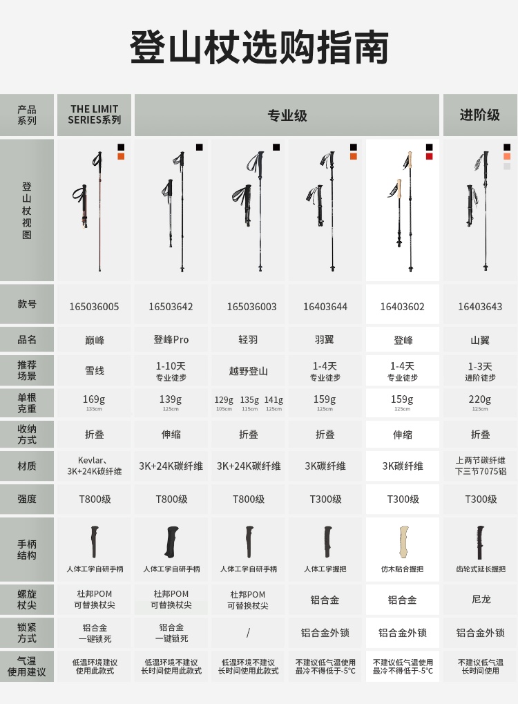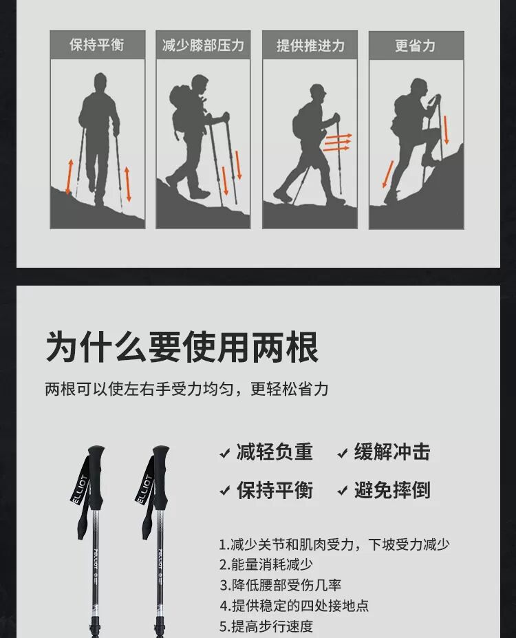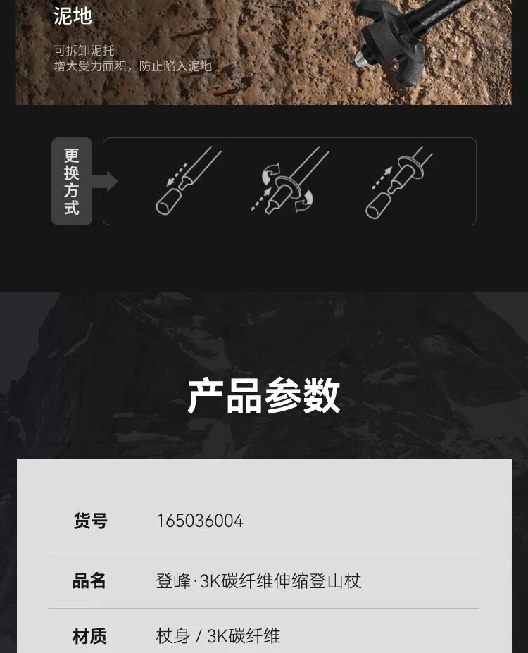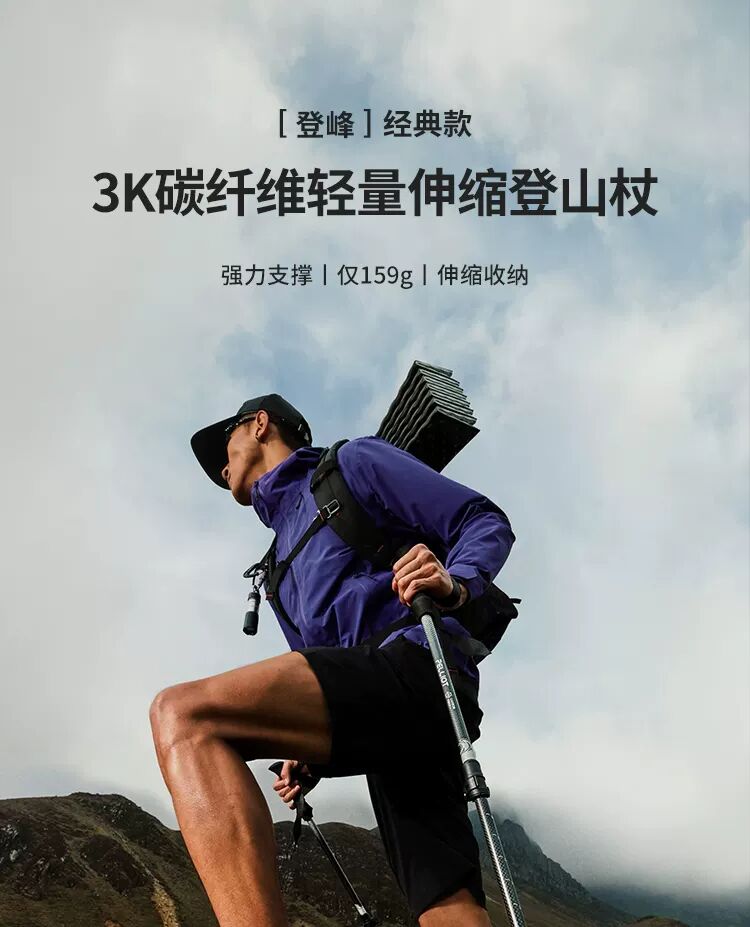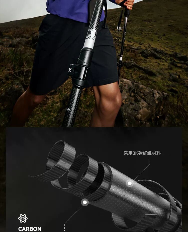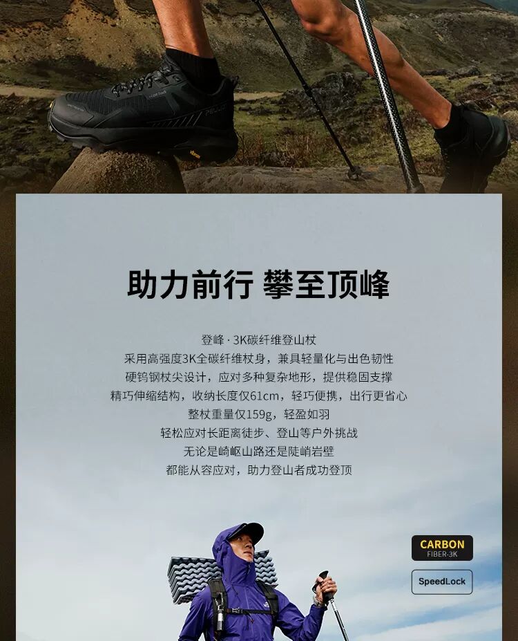 【登峰】伯希和户外登山杖男3k碳纤维专业伸缩防滑爬山徒步手杖女