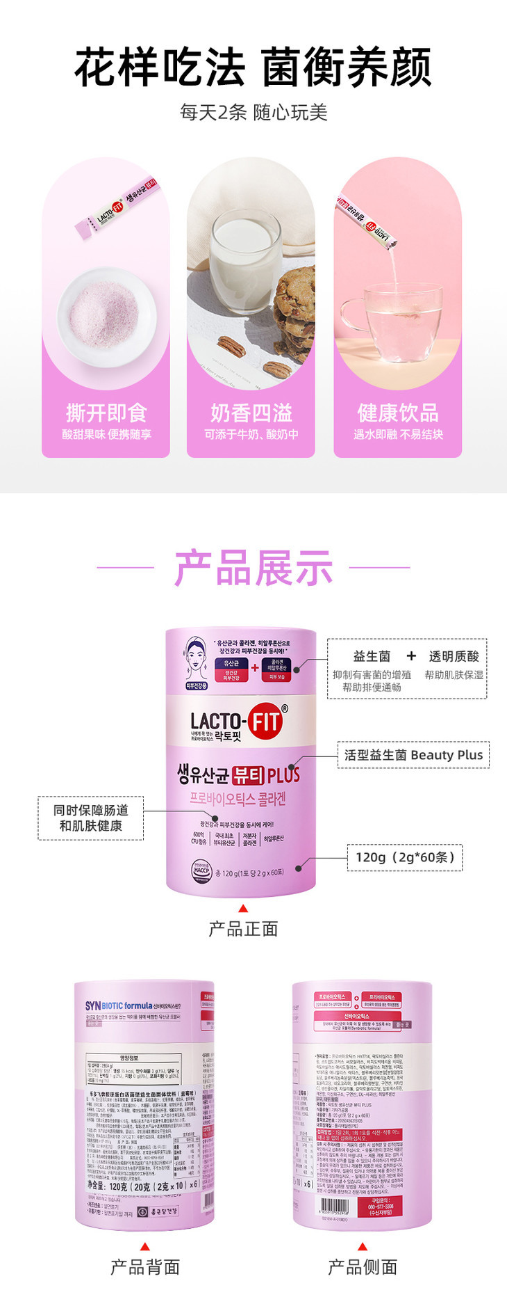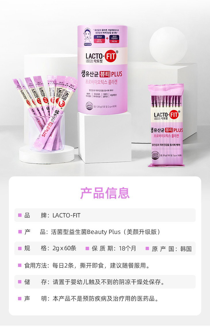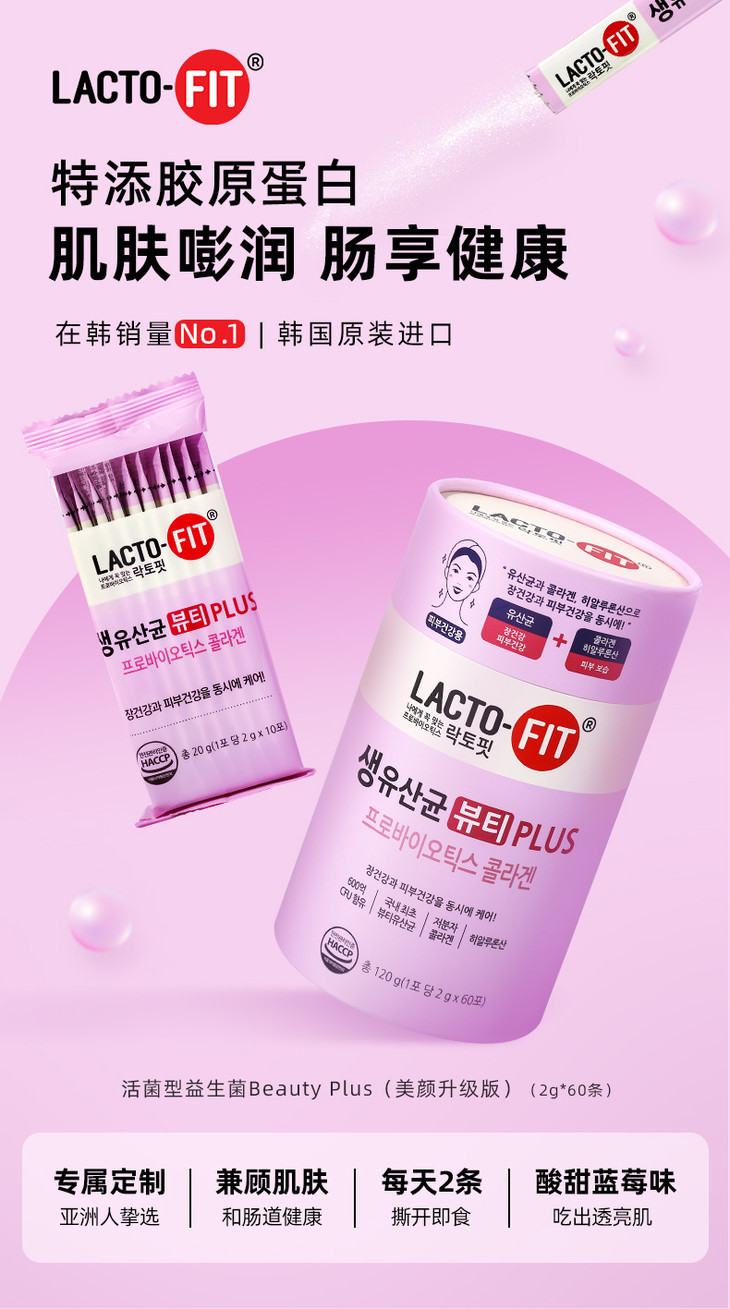 【接龙专用】钟根堂 乐多飞胶原蛋白玻尿酸益生菌美颜增强版2g*60条