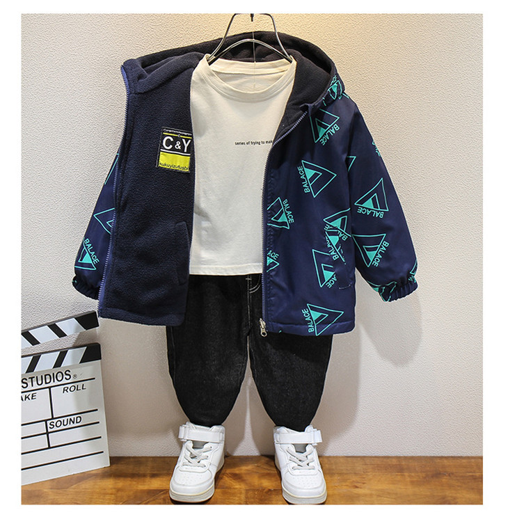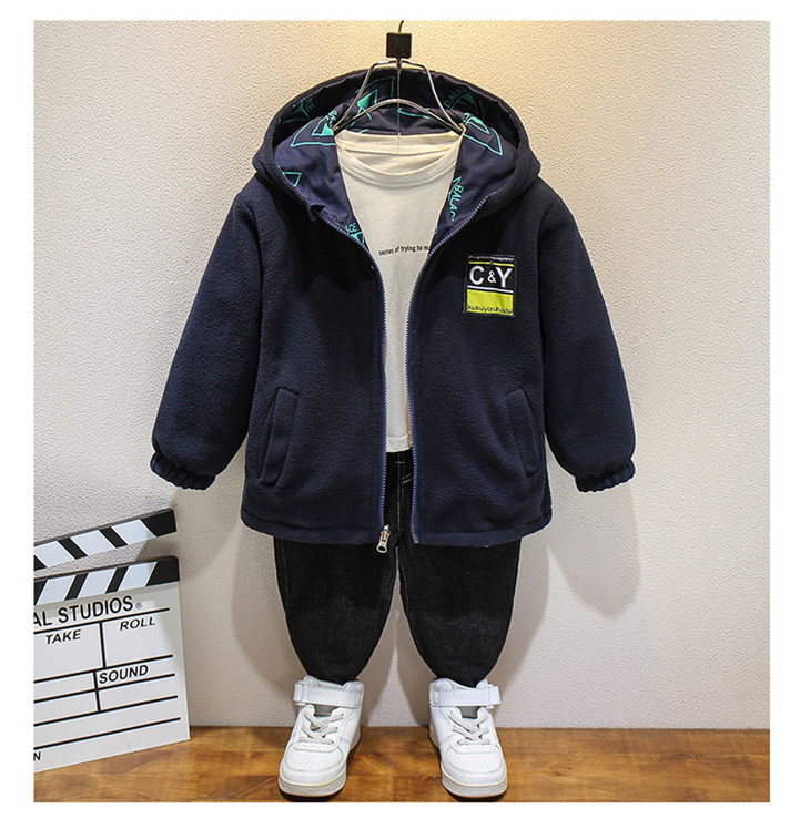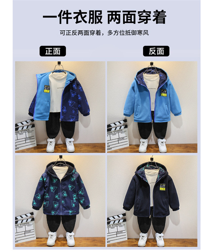 男童新款秋季双面穿外套加绒中大童上衣春秋风衣摇粒绒冲锋衣