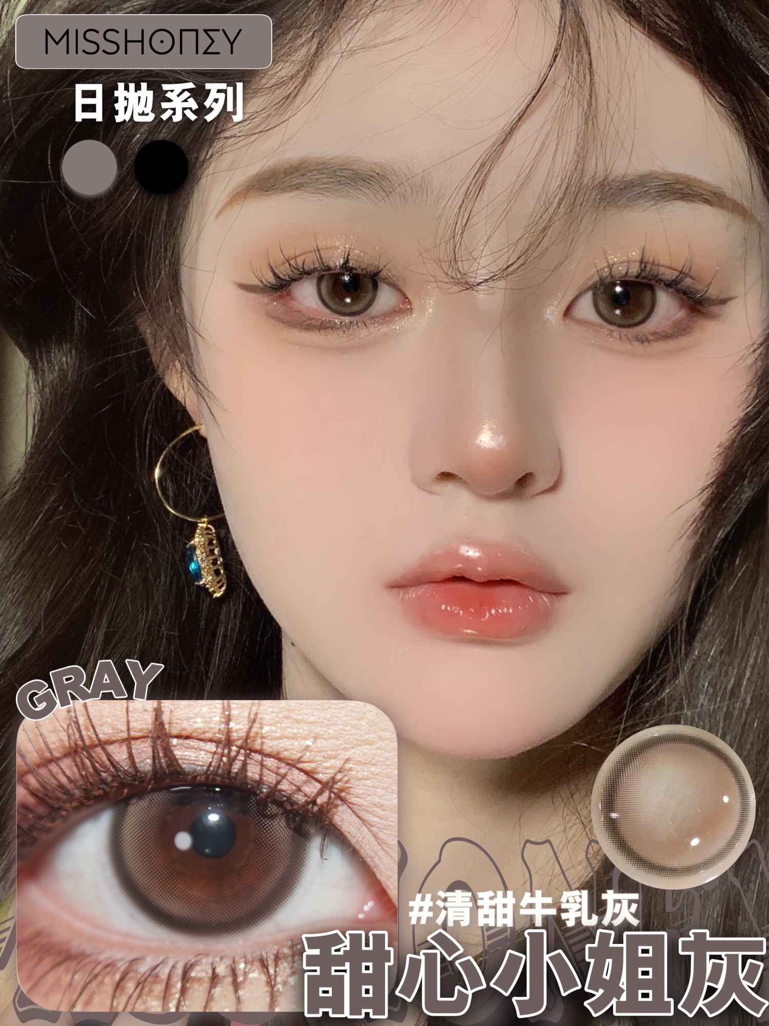 miss honey 日抛美瞳 甜心小姐灰 直径14.2mm着色13.4mm 0-800度无525/575