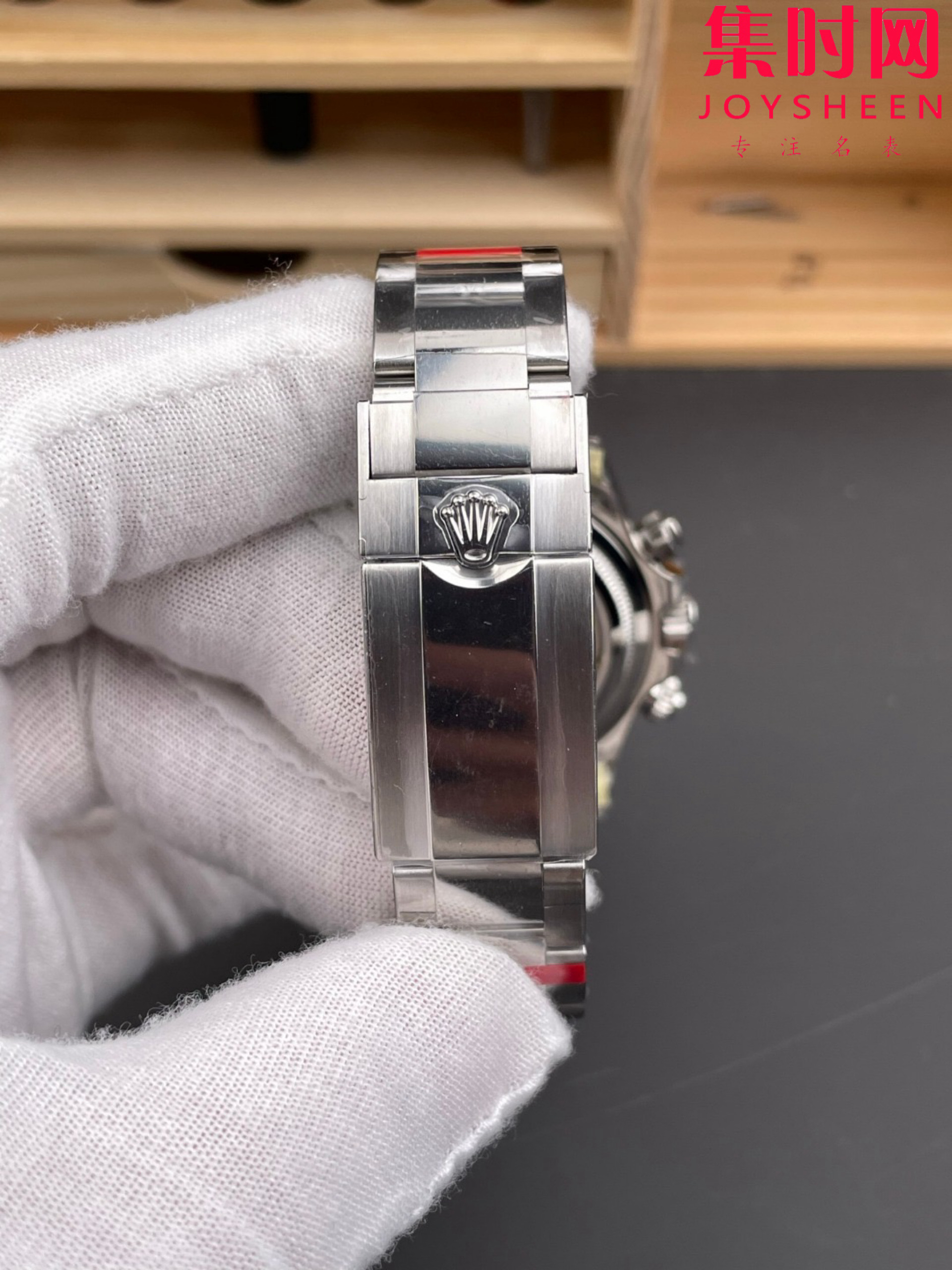 六点位增加皇冠标志,表壳与表带的工艺提升,表耳曲线优化,正品迪通拿的表壳设计以流畅线条著称(如蚝式表壳的狐形表耳)通过强化曲线效果,更接近原版的佩戴舒适度!