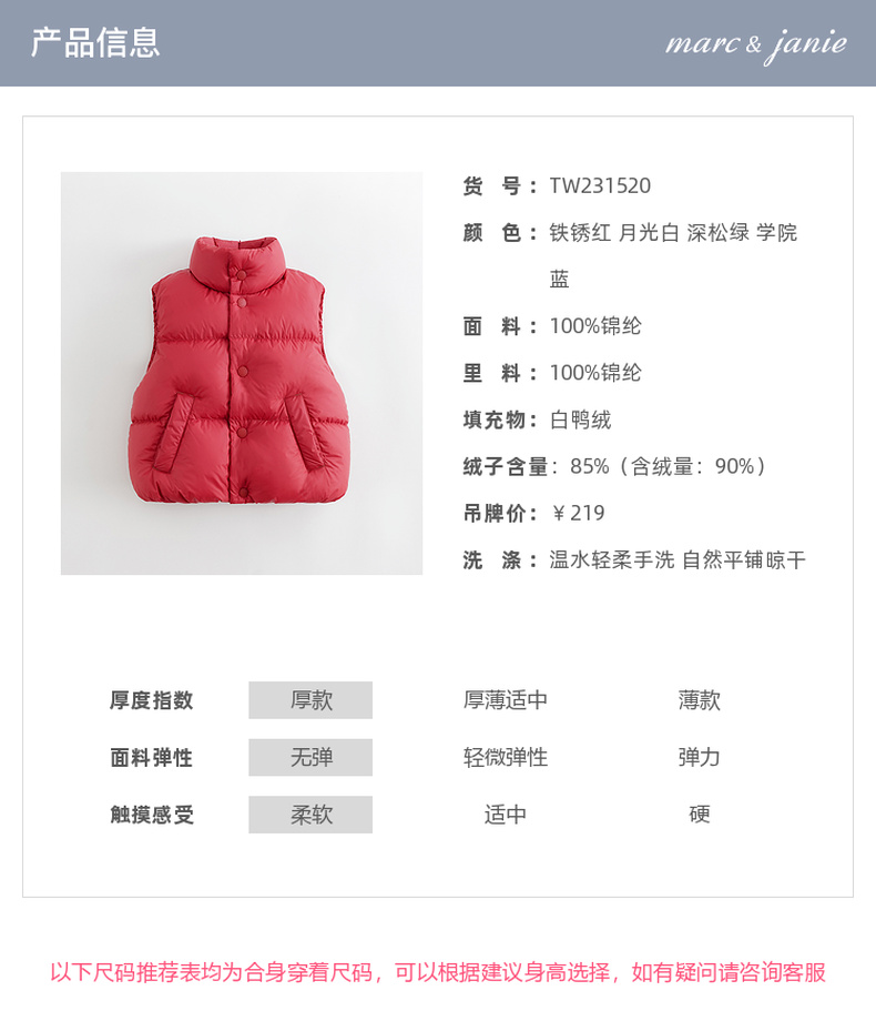 【三防】马克珍妮冬装新款男童美式校园加厚保暖羽绒服马甲231520