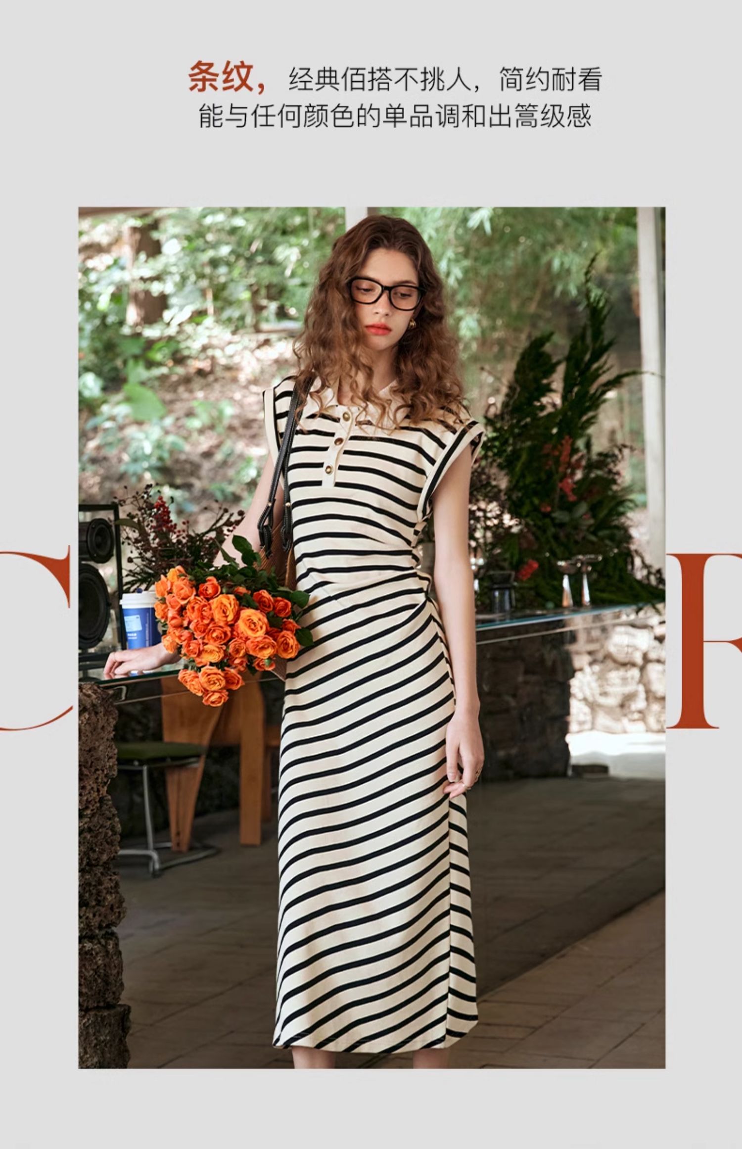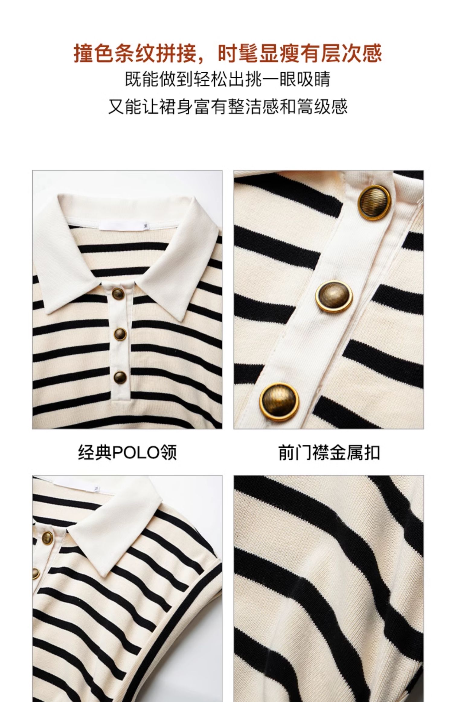 OLrain欧芮儿条纹连衣裙女春季2024年新款POLO领收腰针织无袖裙