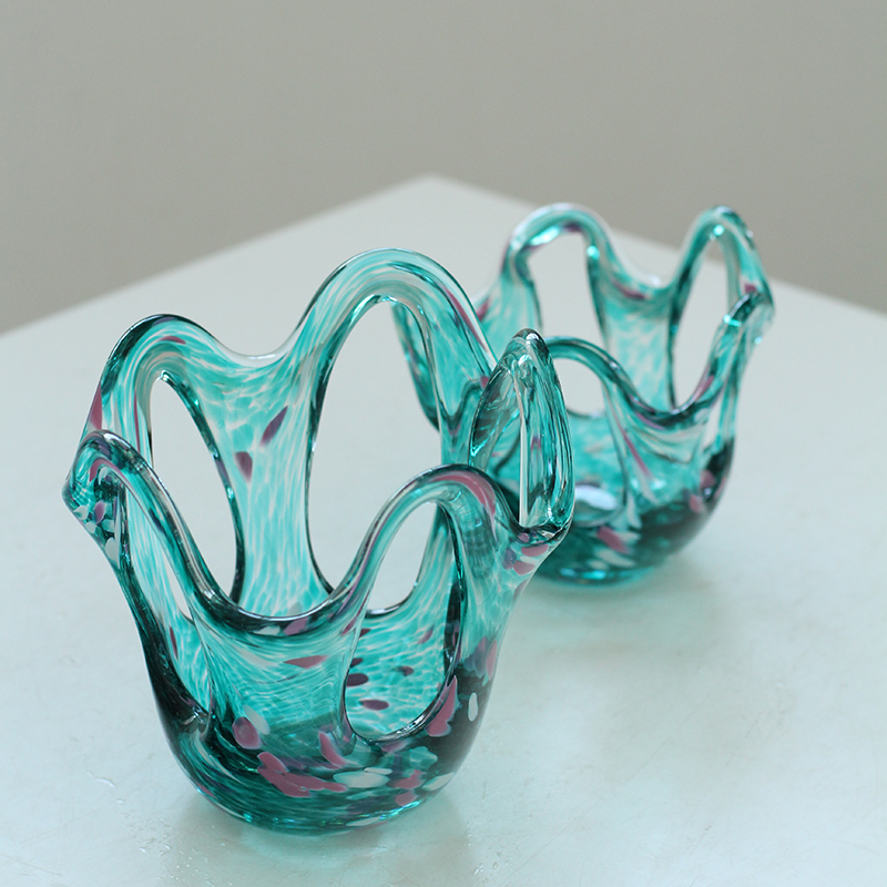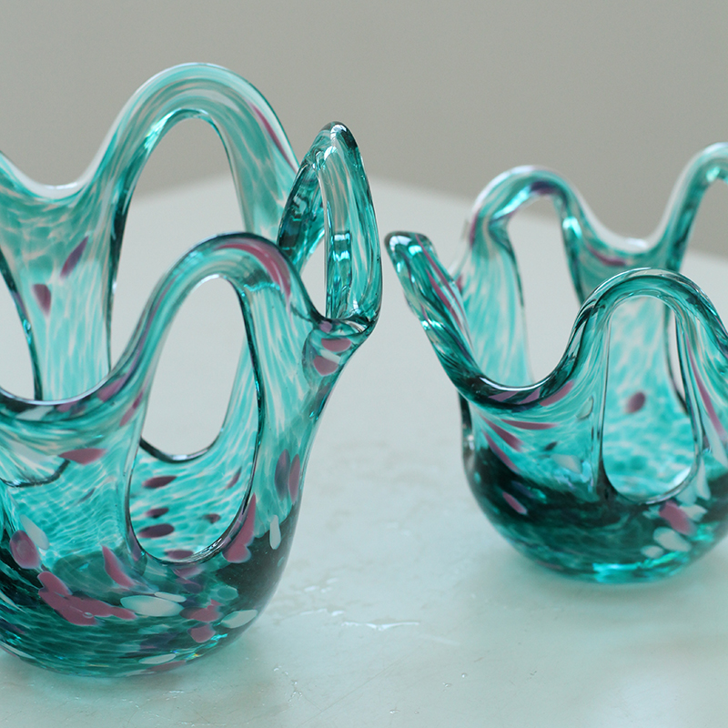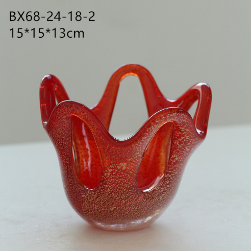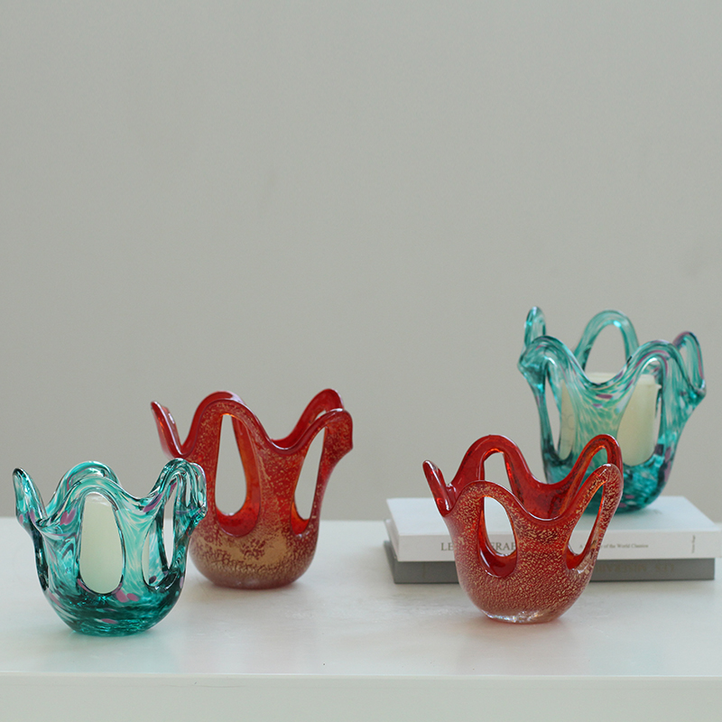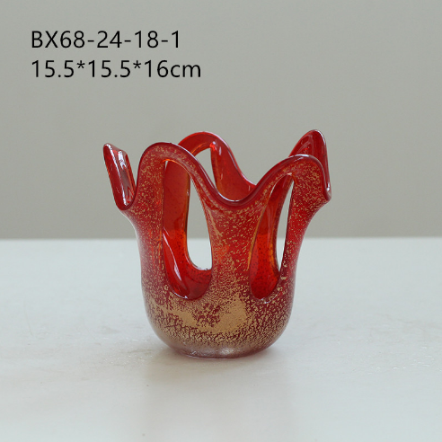 火焰红彩色创意手工镂空烛台家居装饰渐变孔雀绿艺术琉璃花瓶批发