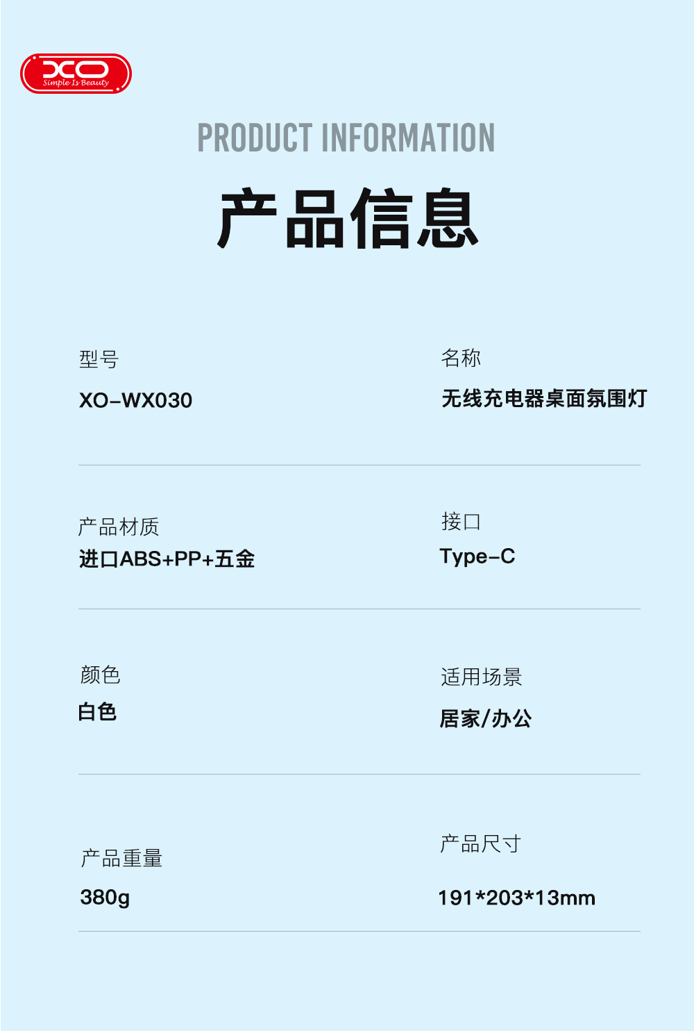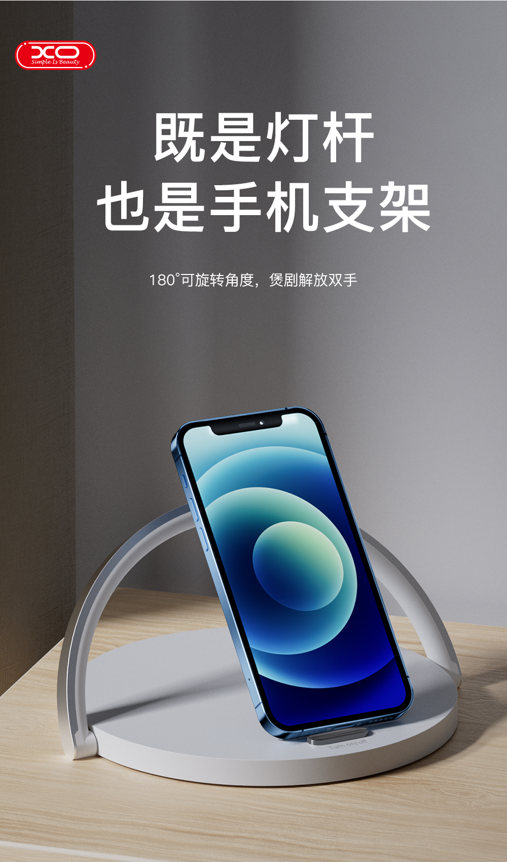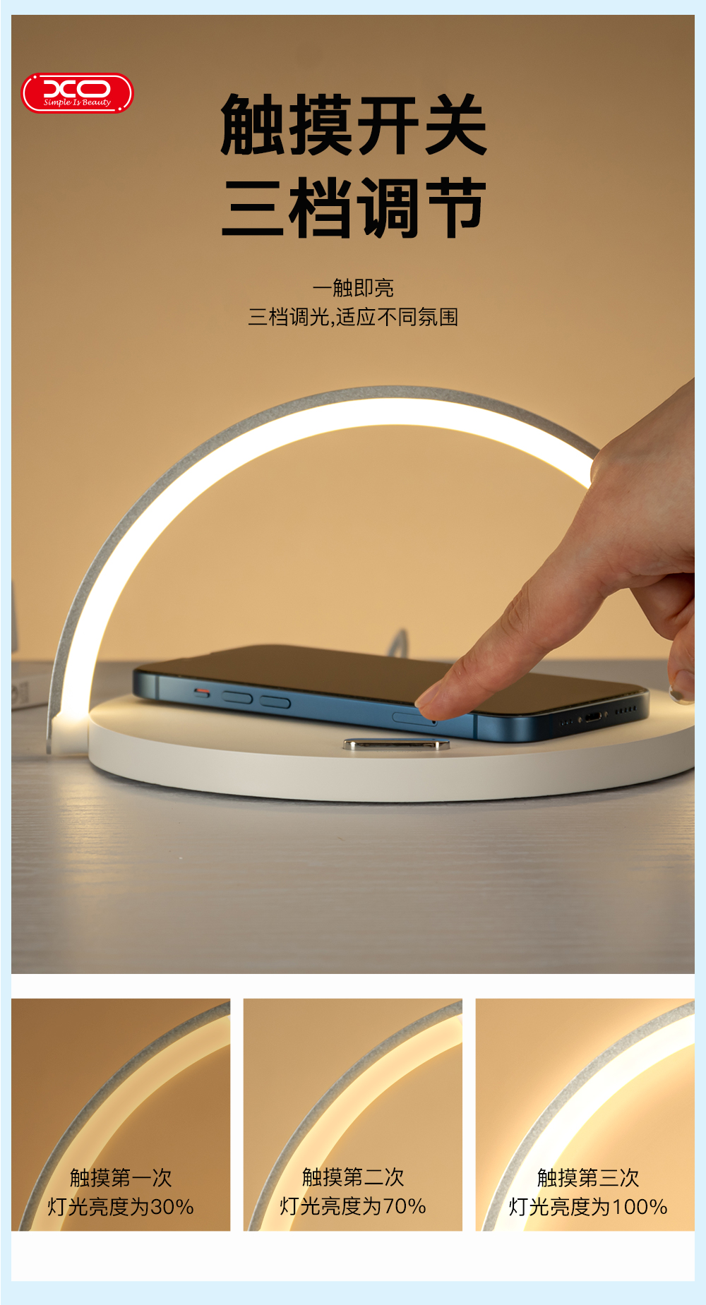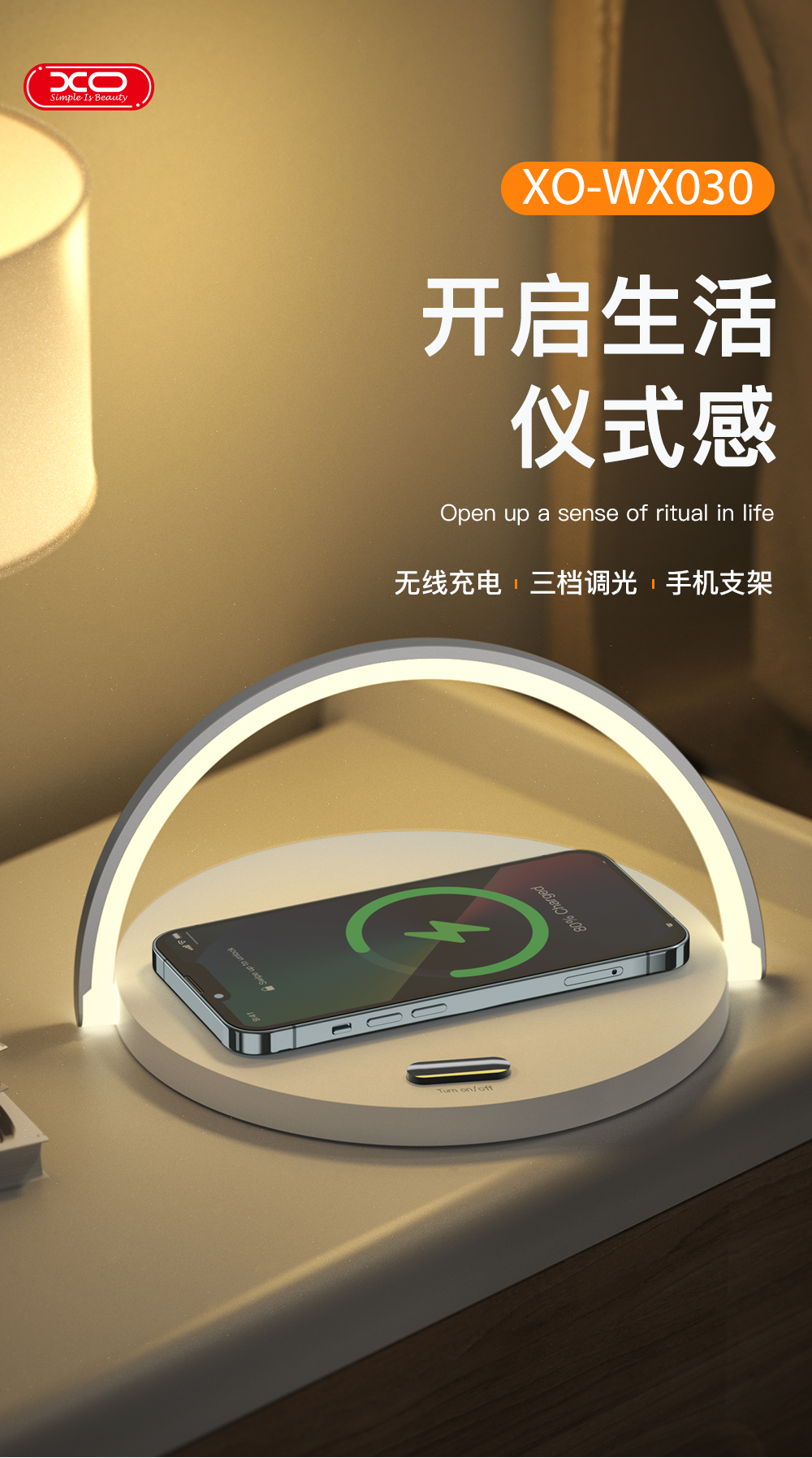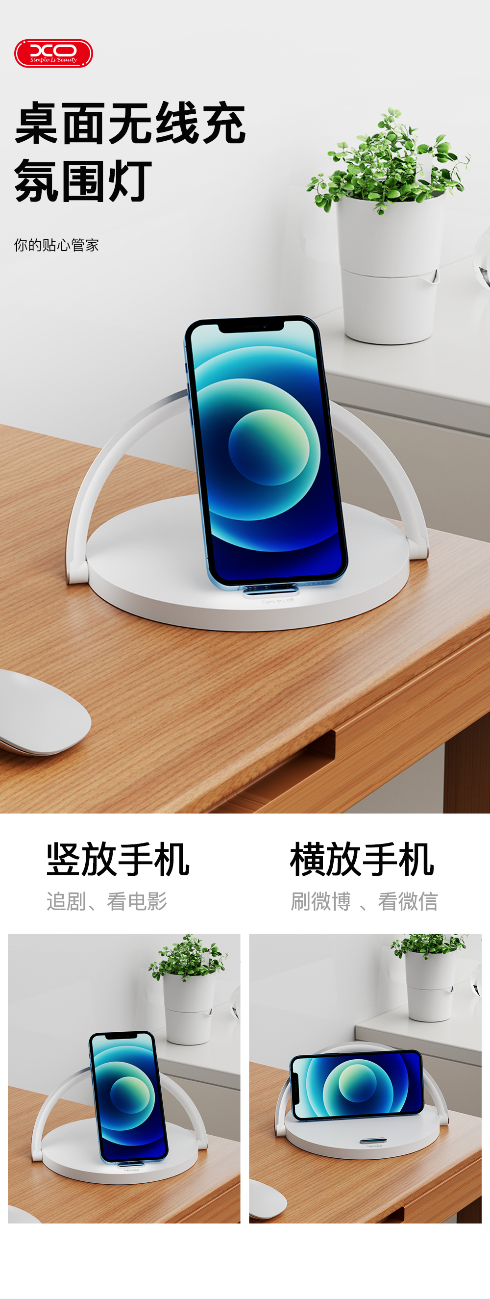 XO-WX030 15W无线充+小夜灯+手机支架 三合一