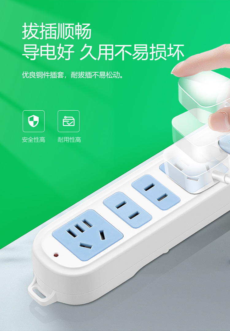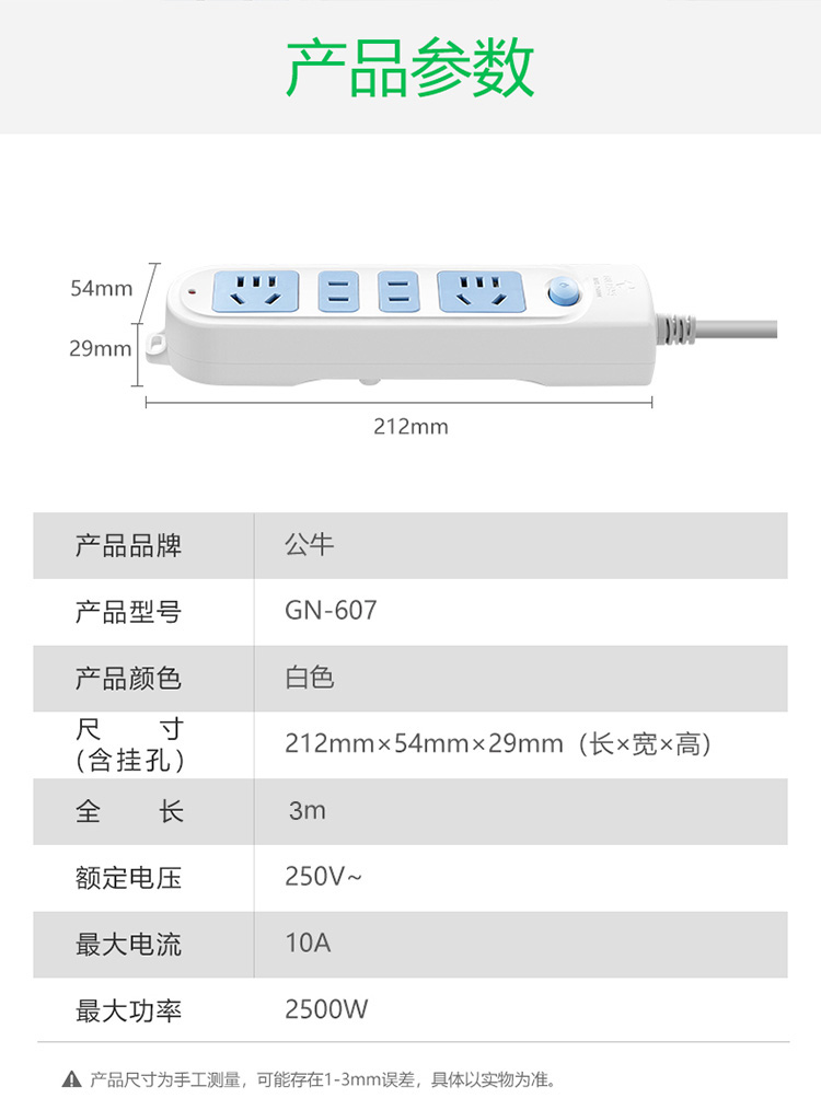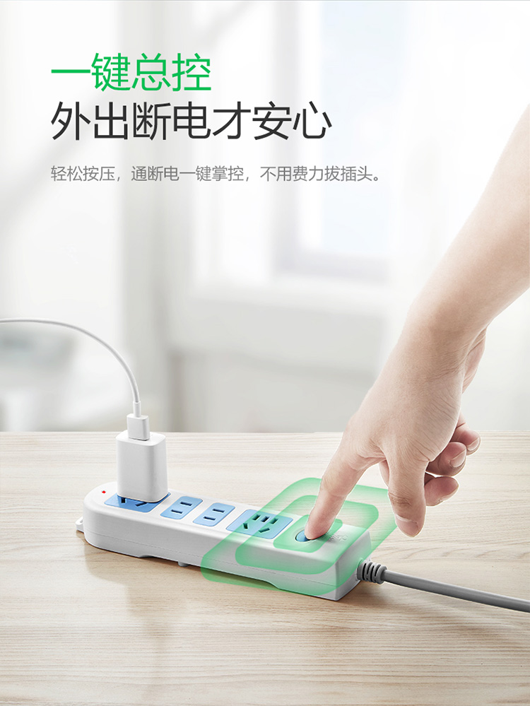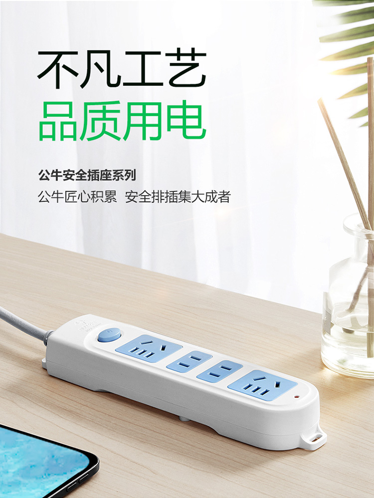 公牛(BULL) 新国标插座/插线板/插排/排插/接线板/拖线板 GN-607 4位总控全长3米