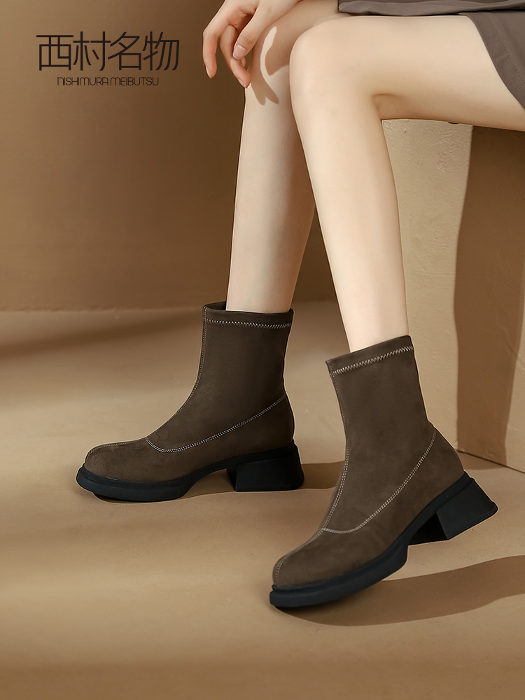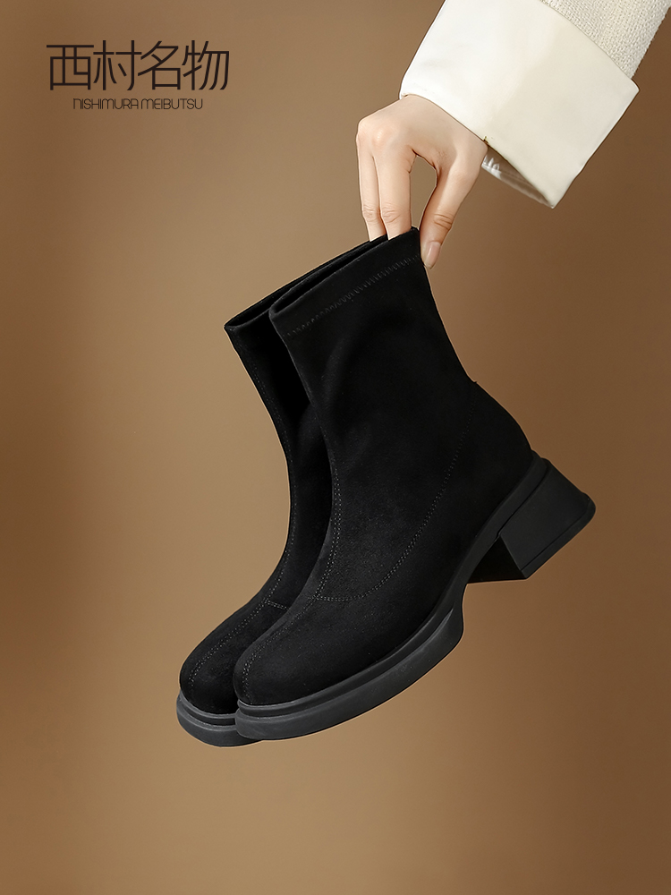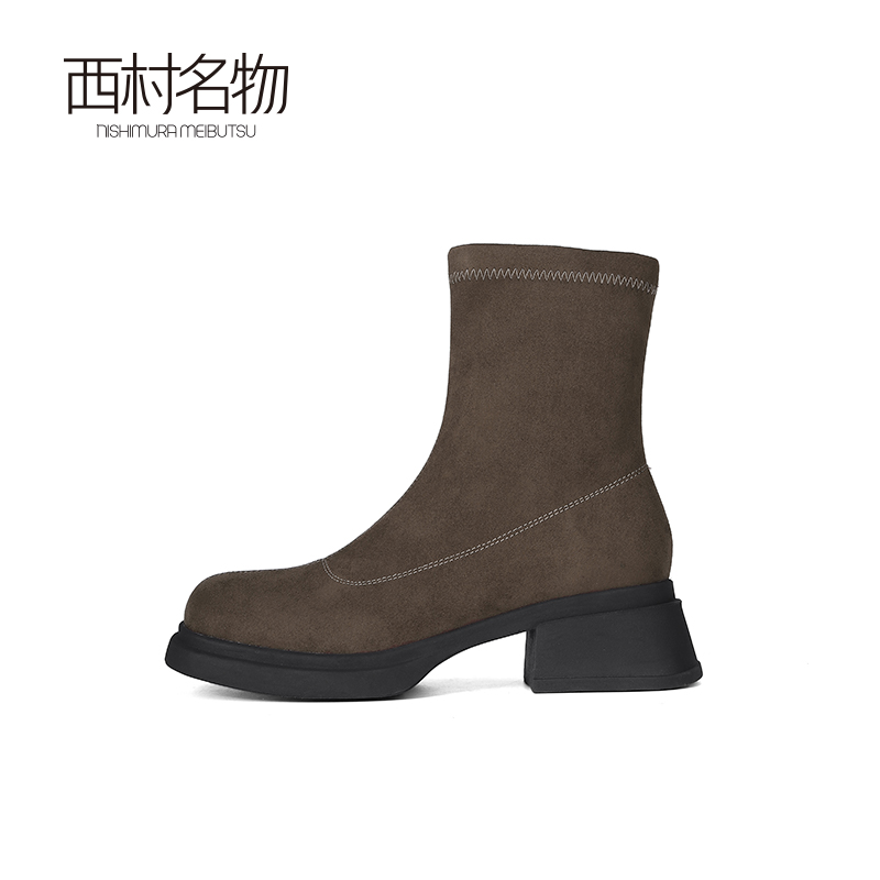 西村名物2023年冬季新款舒适厚底增高防滑切尔西靴T23DS45861