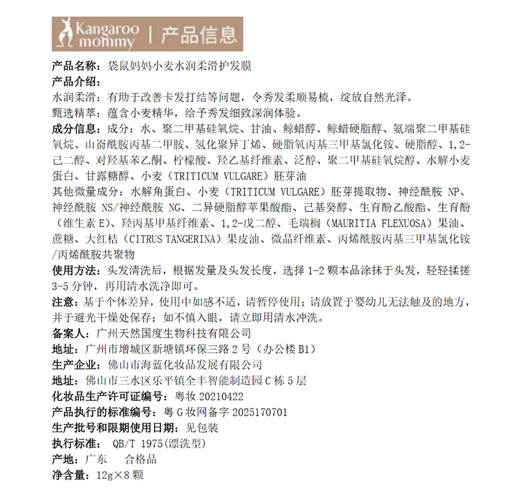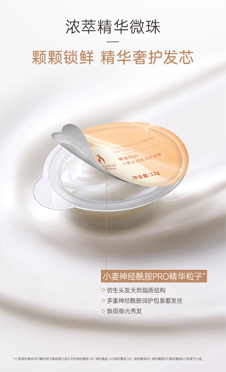 【小麦护发膜】准孕妇安心 护发新解法 3分钟柔顺韧 袋鼠妈妈小麦水润柔滑护发膜-12gx8颗