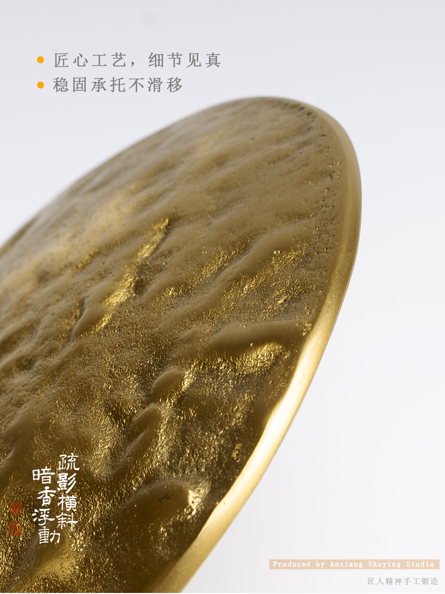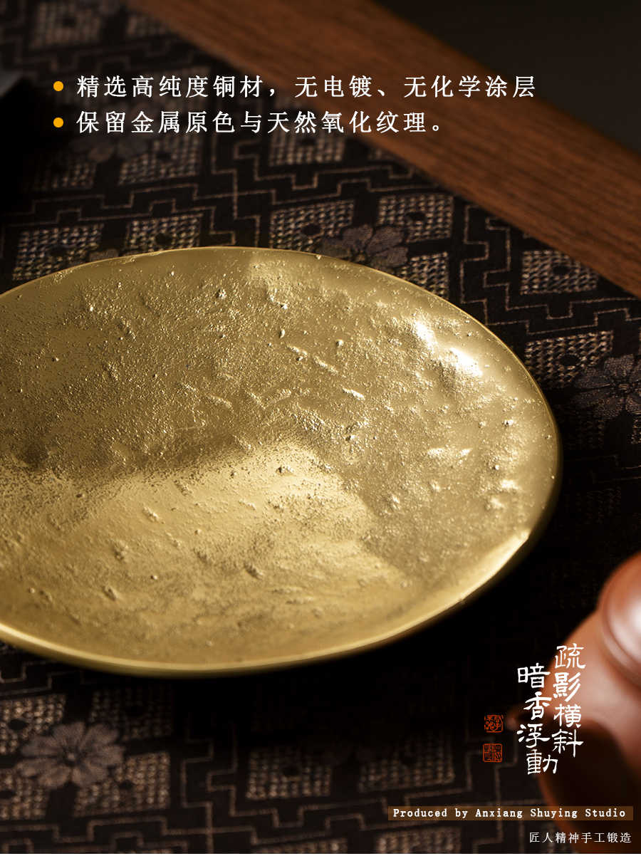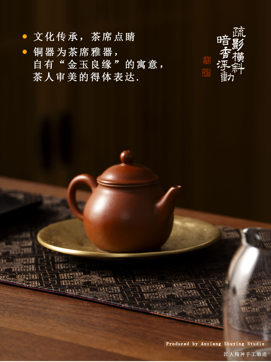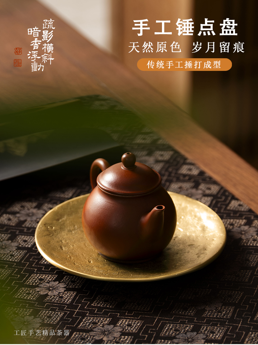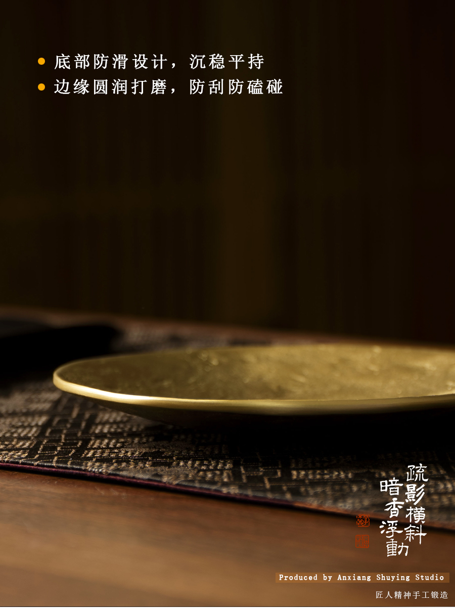 暗香疏影/手工锤点盘/手工锻打锤纹壶承干泡盘收纳盘黄铜创意