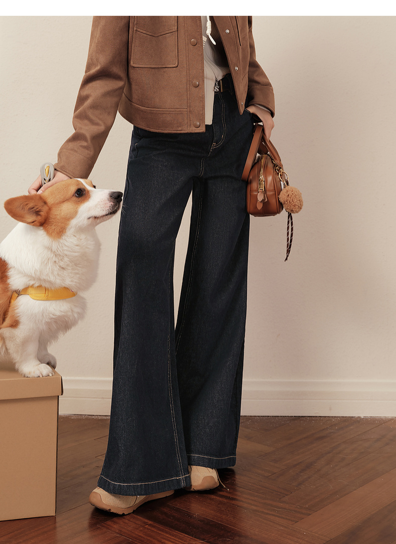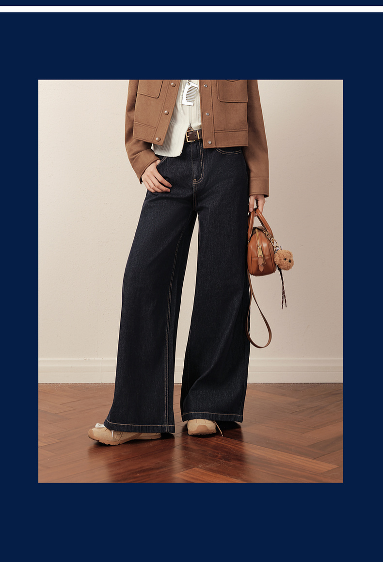 【商场同款】诗凡黎复古阔腿牛仔裤25秋新款丹宁弯刀裤3G9151701