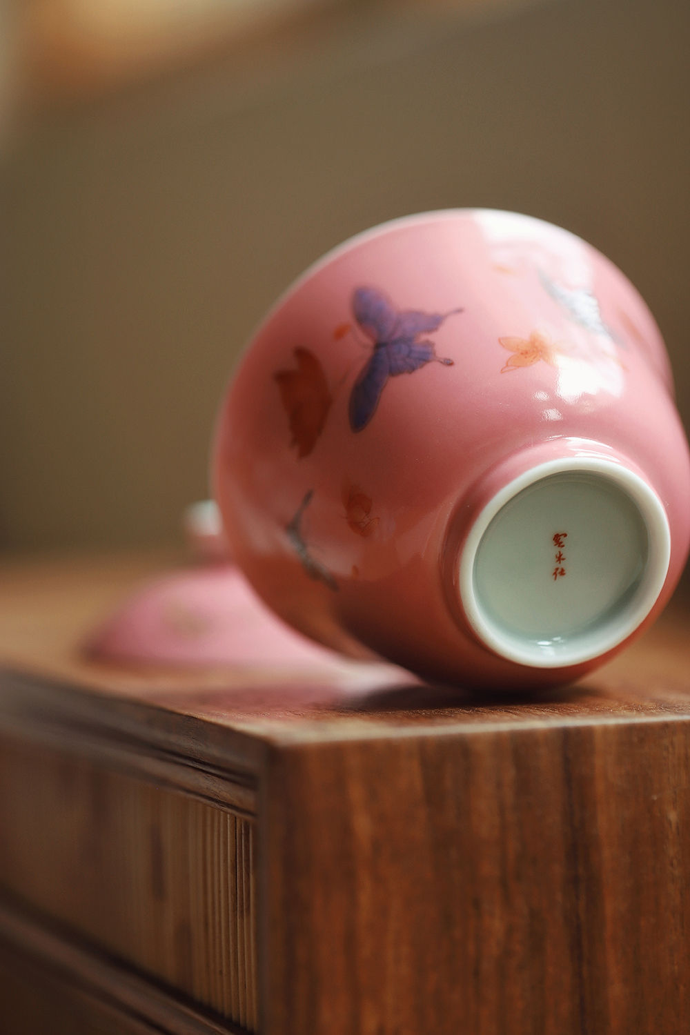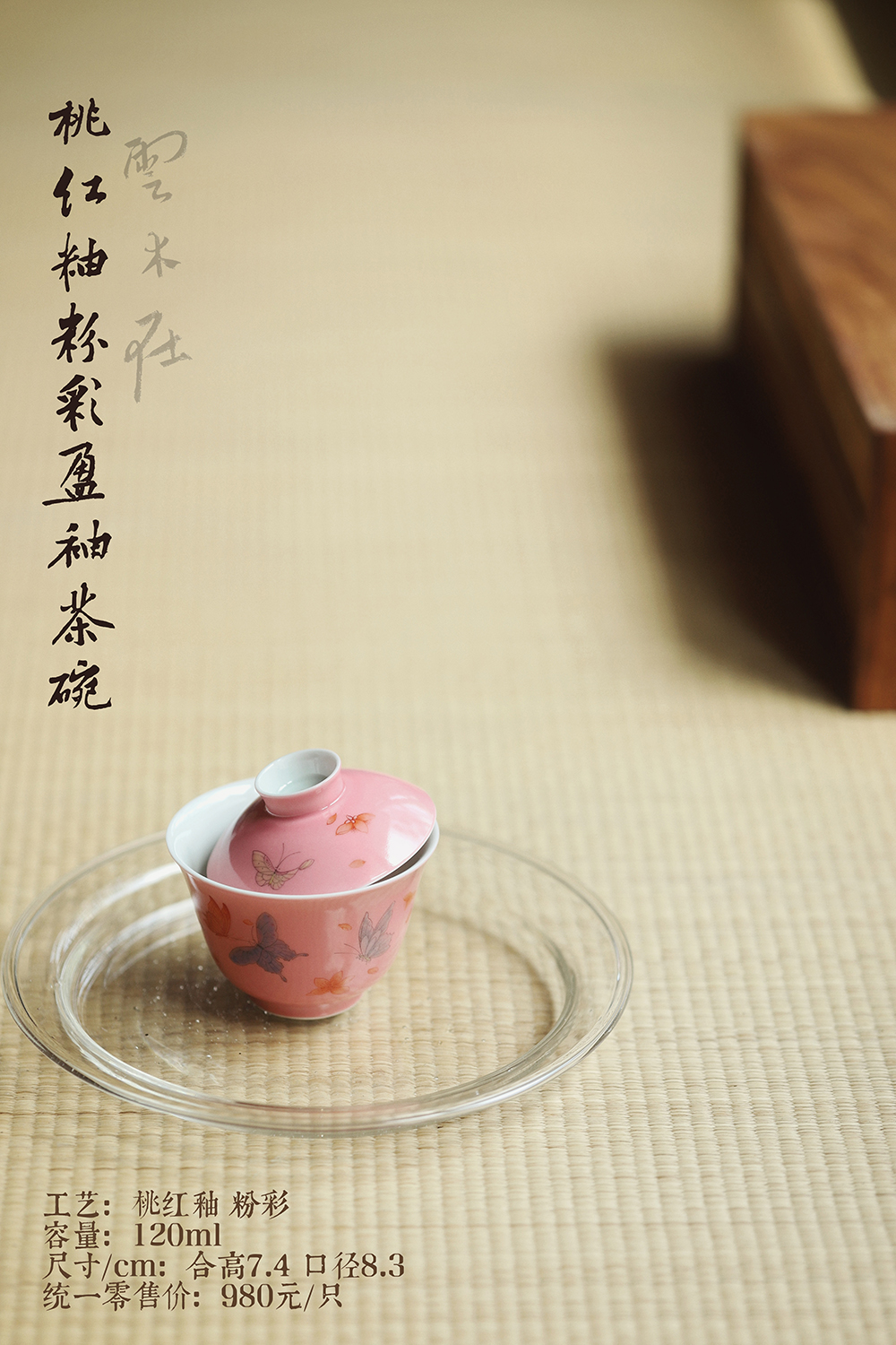 景德镇云木在 桃红釉粉彩盈袖茶碗 二才盖碗单个功夫陶瓷泡茶器茶碗茶具