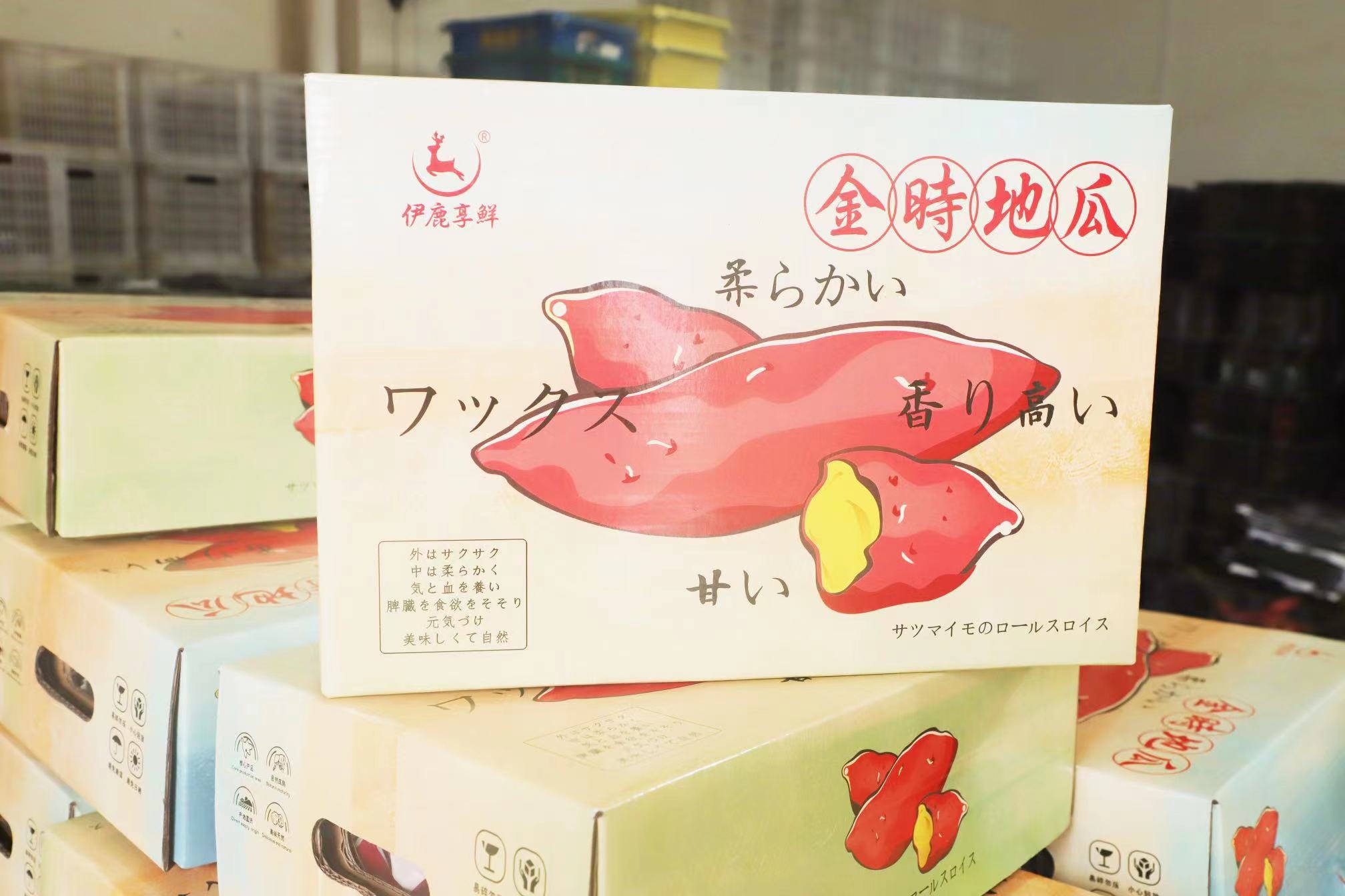 金时地瓜(金時サツマイモ),日本高系14经改良培育的新品种。原产地在日本德岛市,金时地瓜比较适合温暖气候和沙质土壤,后引入国内在海南经过数年多的培育和训化,在条形和口感上赢得广大消费者认可。