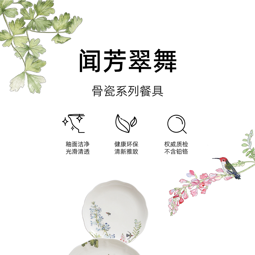 骨瓷餐具套装 | 闻芳翠舞系列骨瓷套装礼盒款 四季三餐 愿你常伴