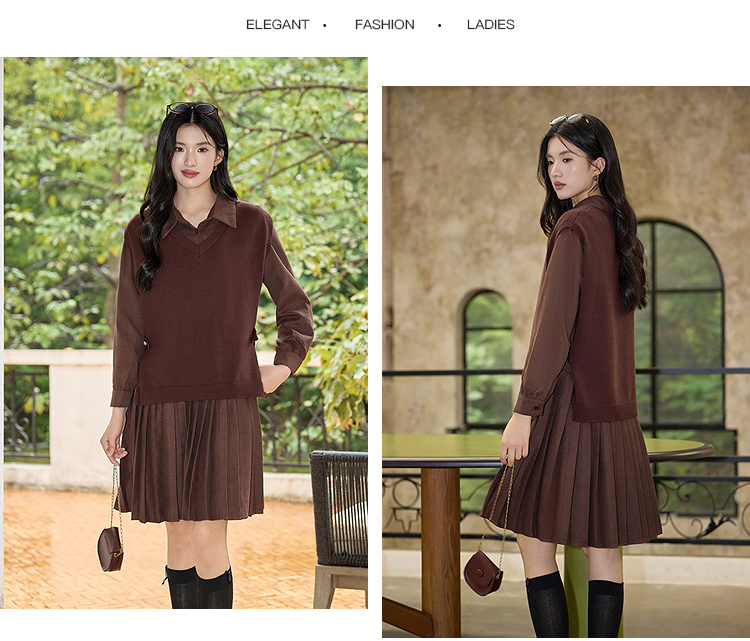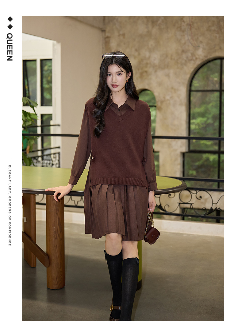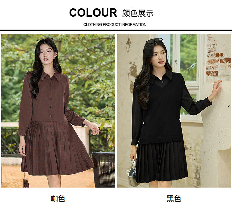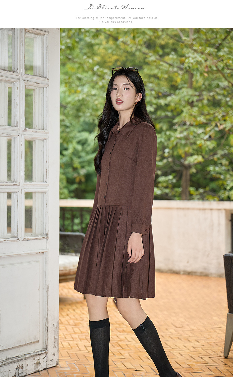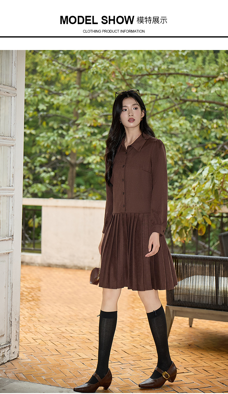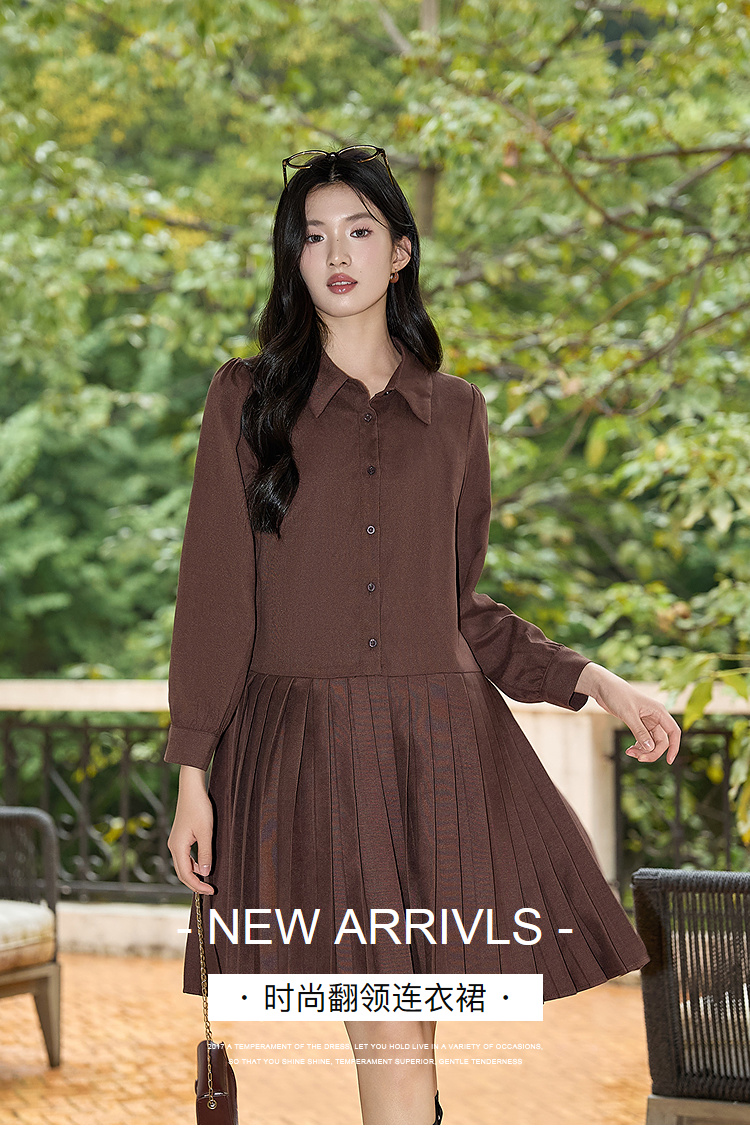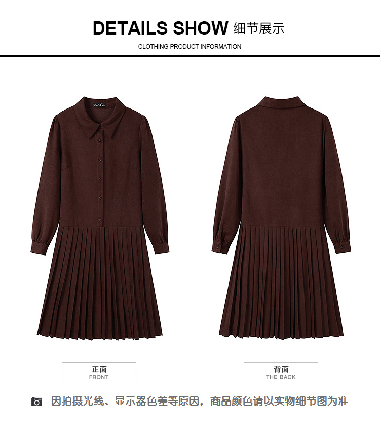 奢姿大码女装2025冬季翻领设计气质连衣裙胖妹妹时尚百褶复古裙子9954894342A