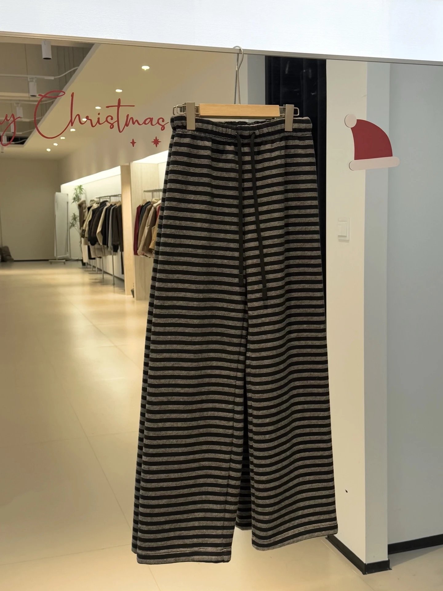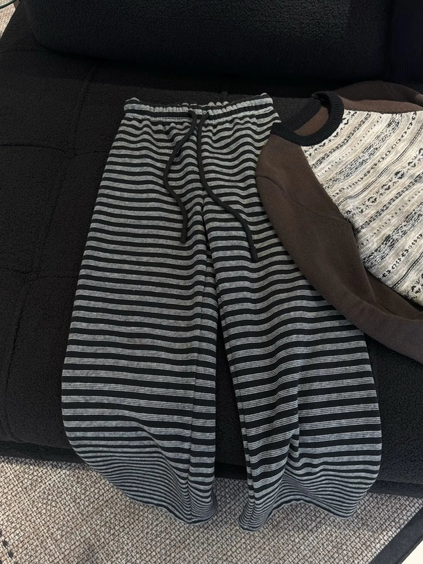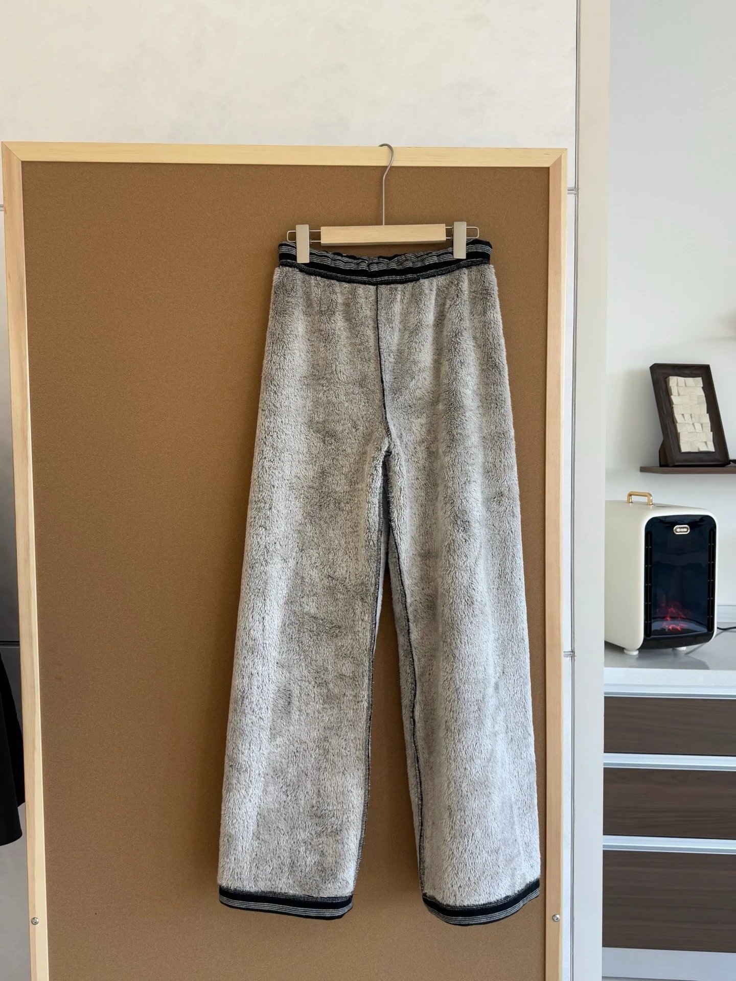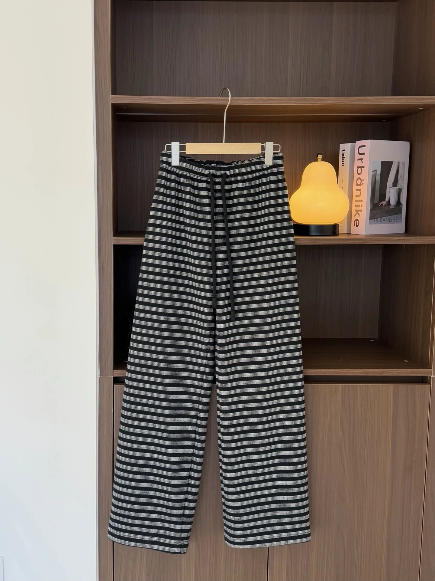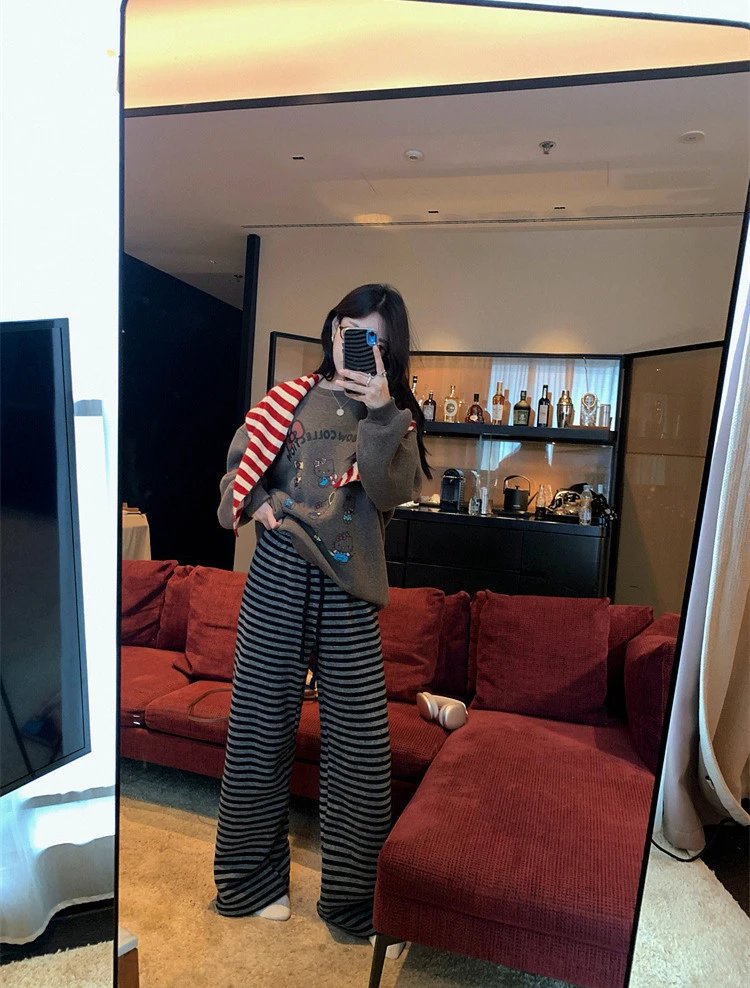 微拖地的休闲裤长把腿型衬的又瘦又长,