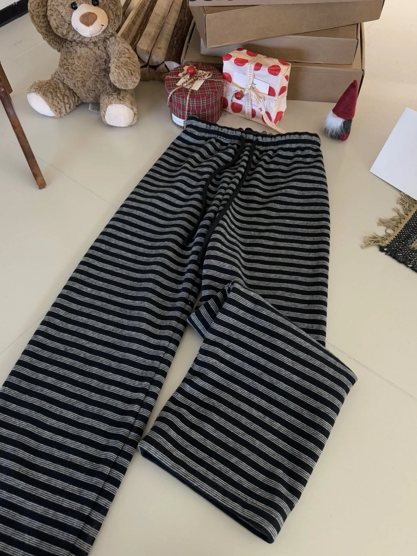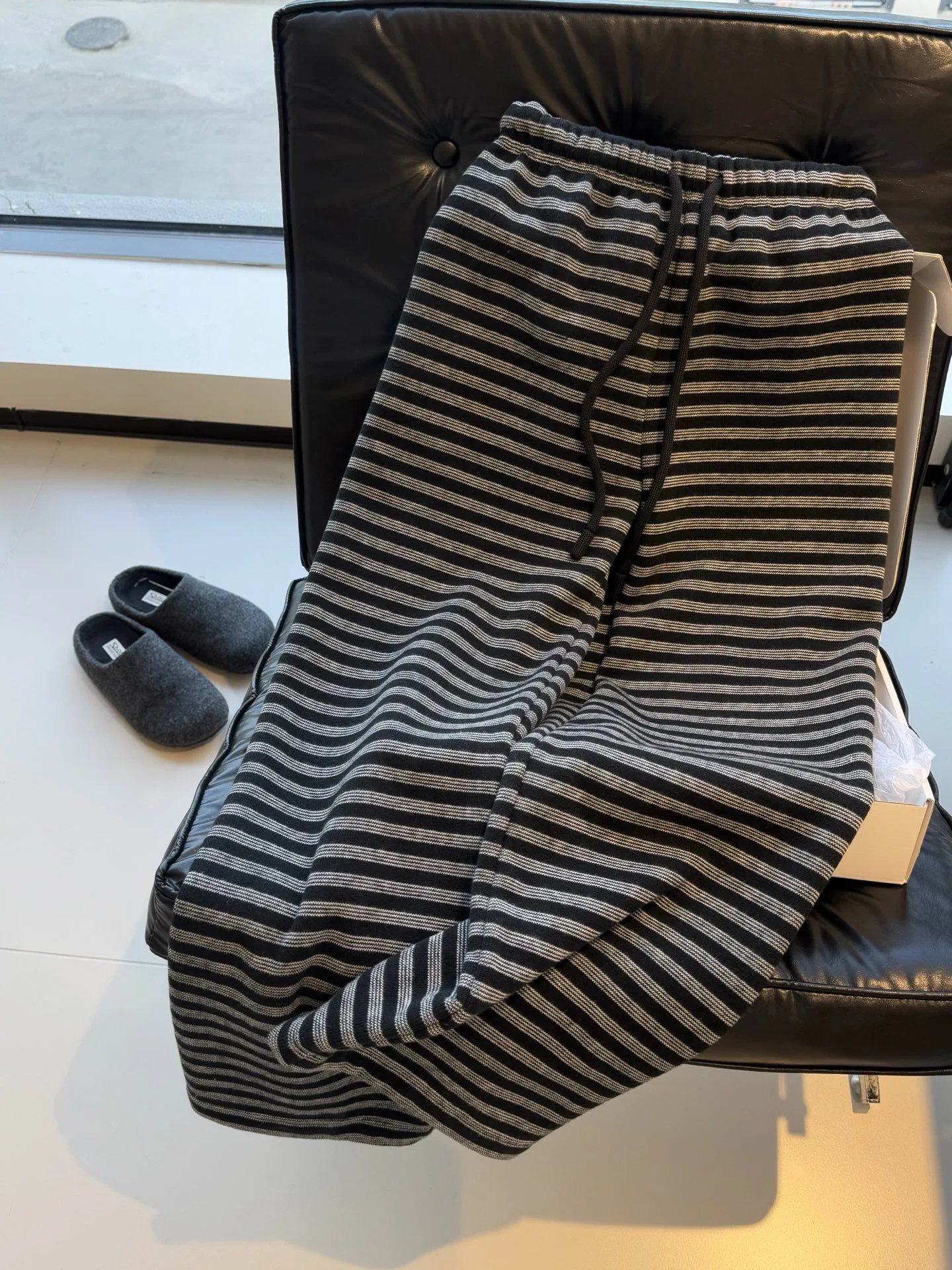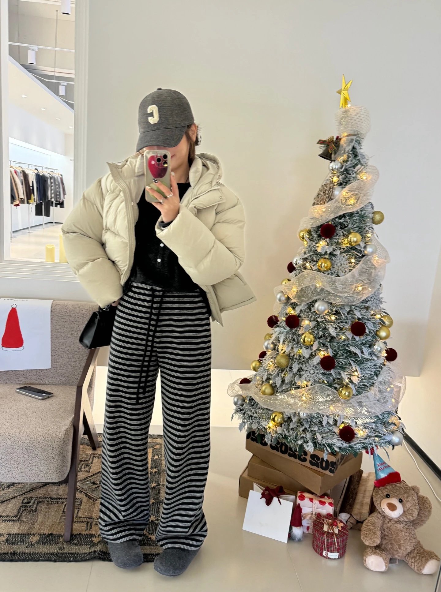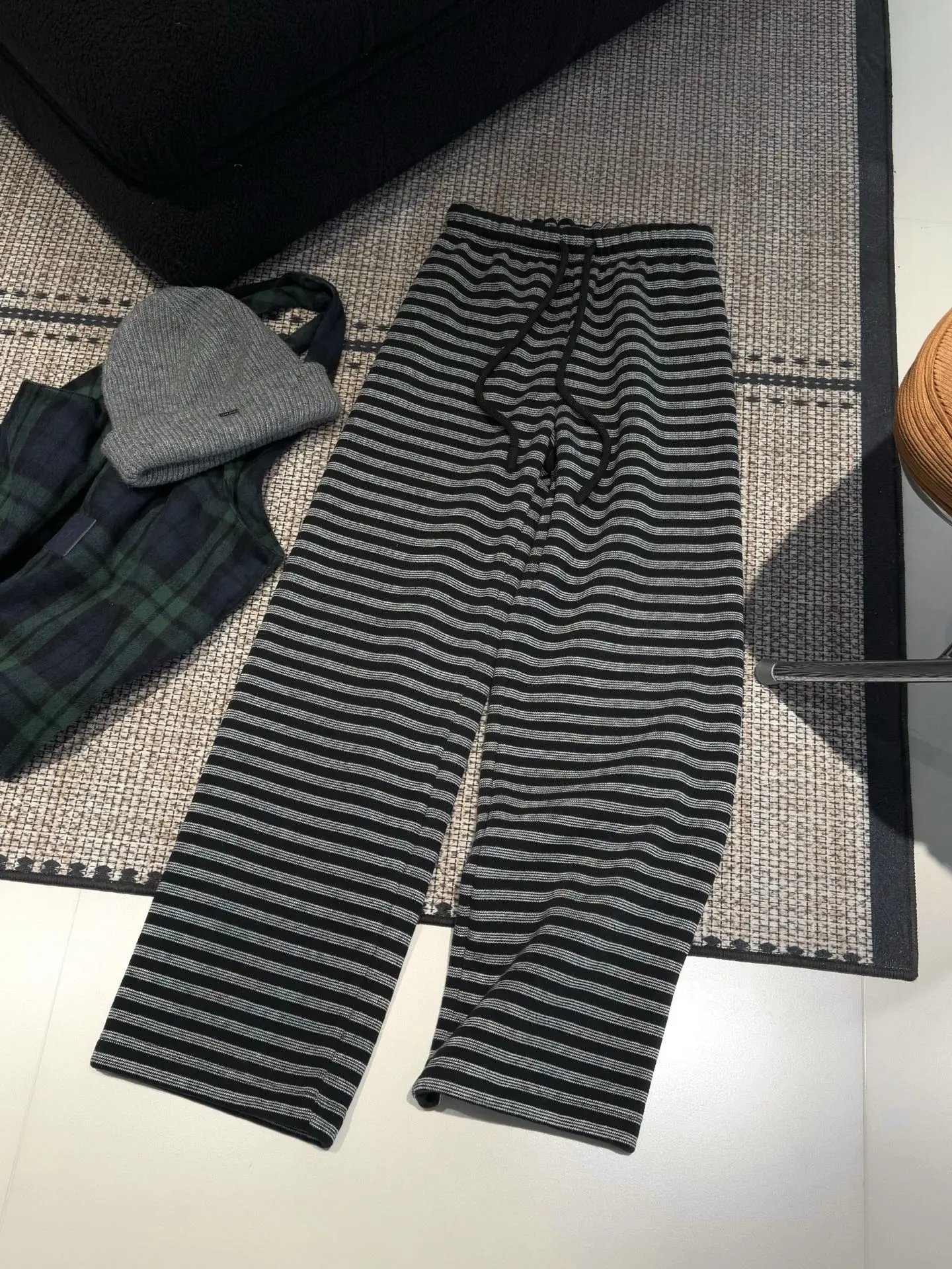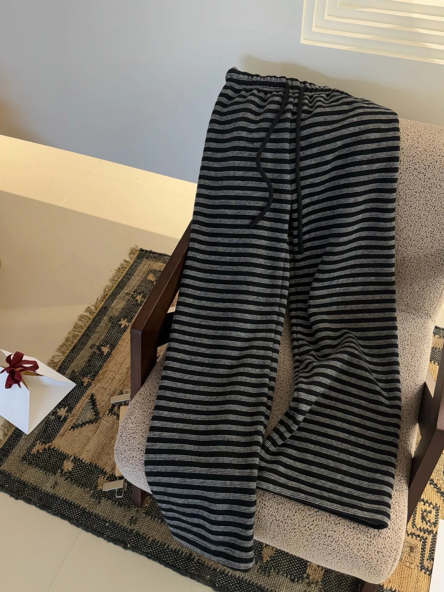 微拖地的休闲裤长把腿型衬的又瘦又长,