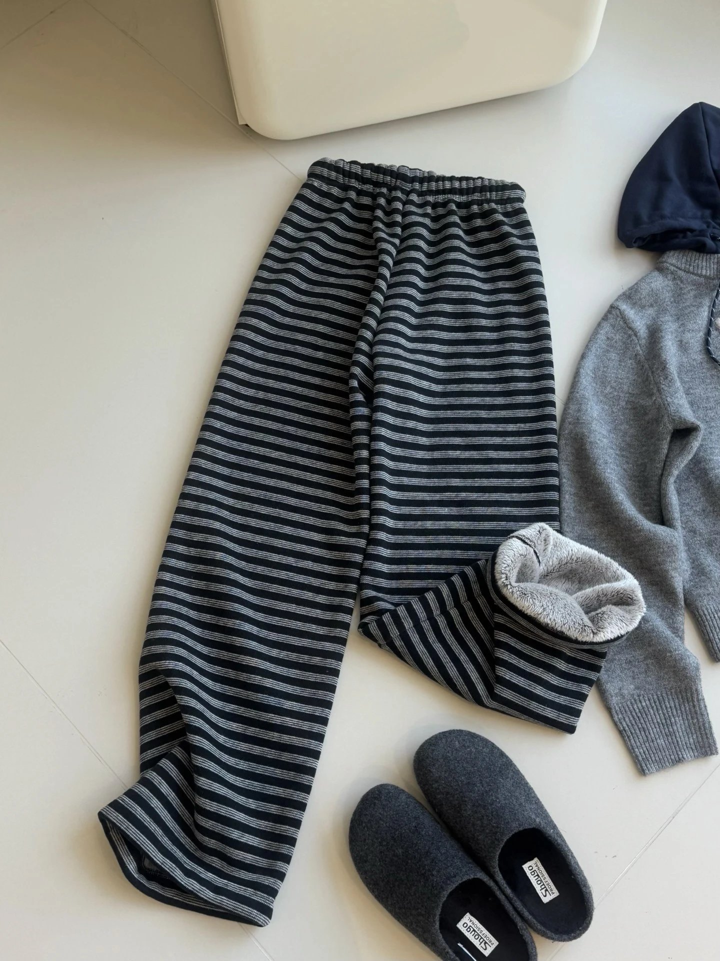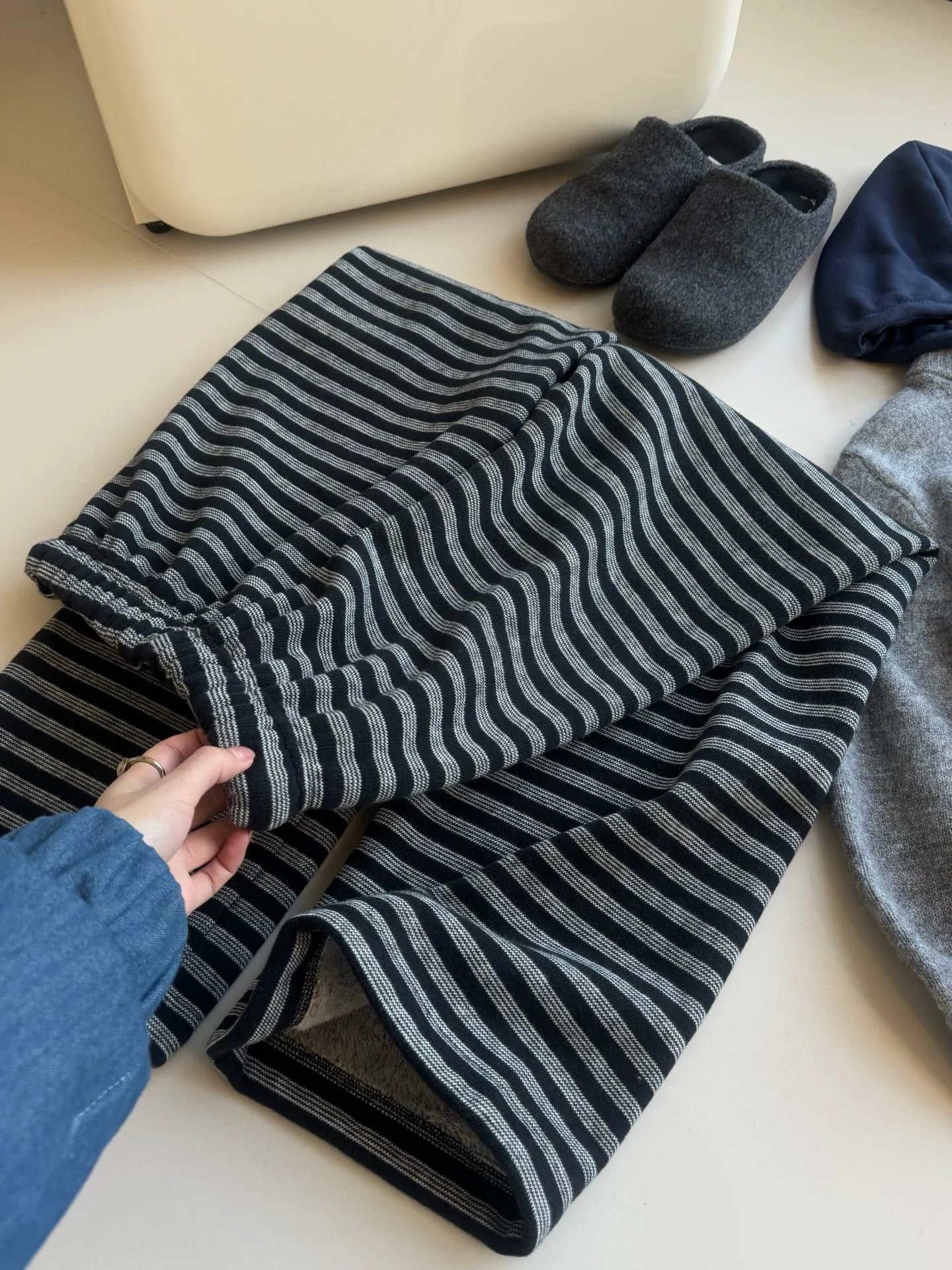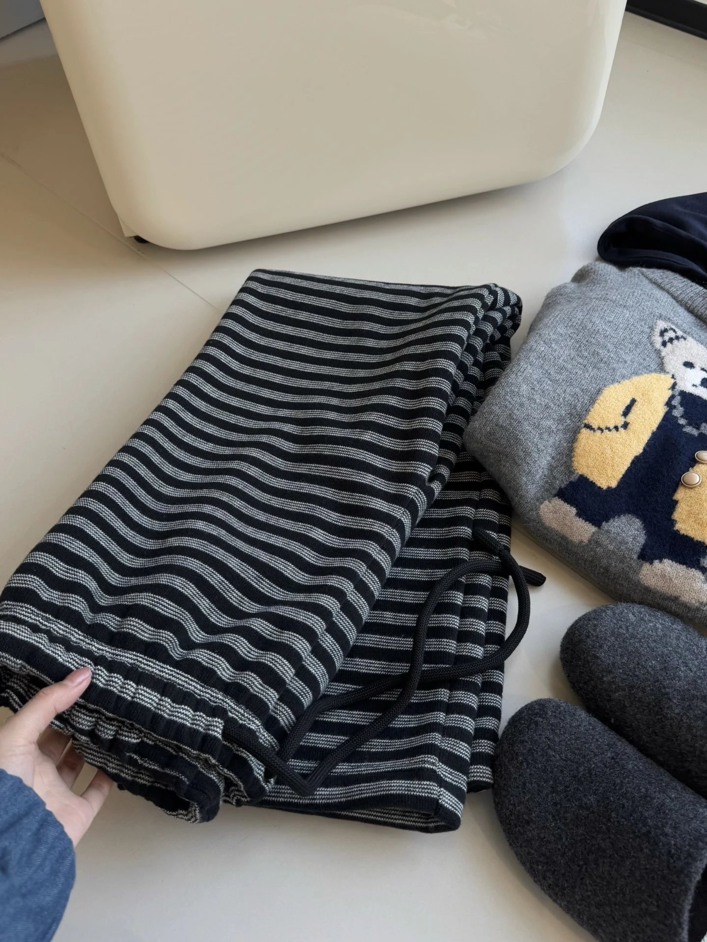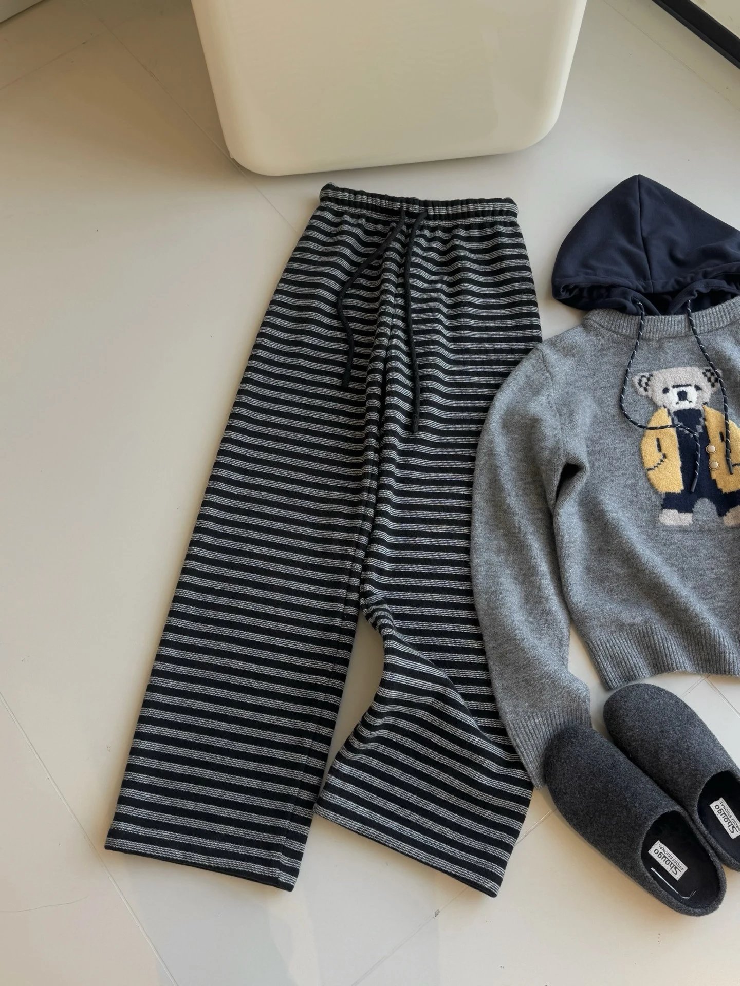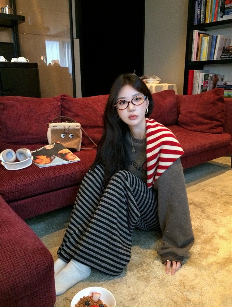 微拖地的休闲裤长把腿型衬的又瘦又长,